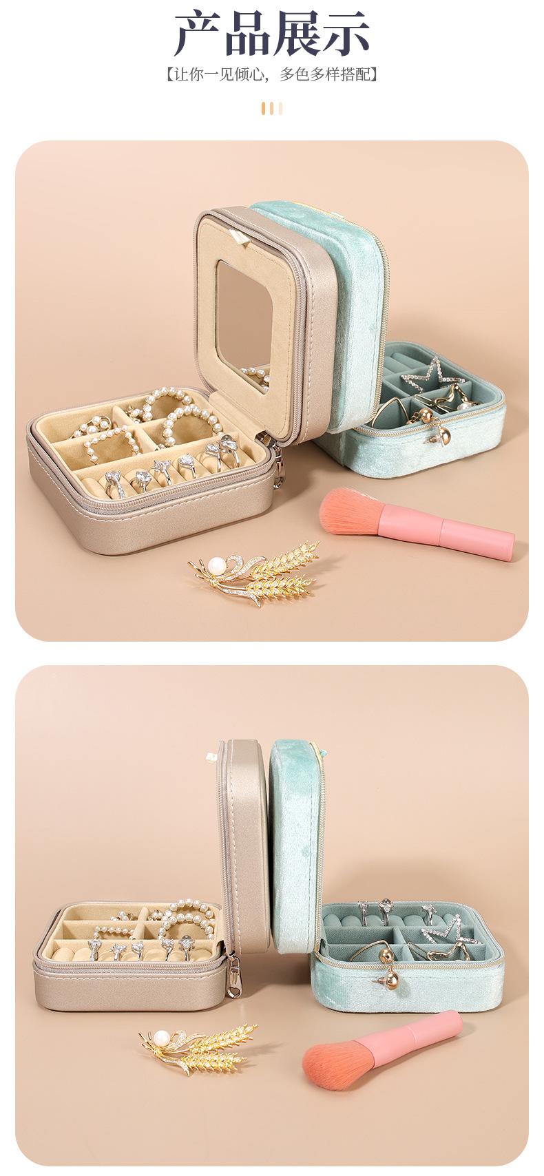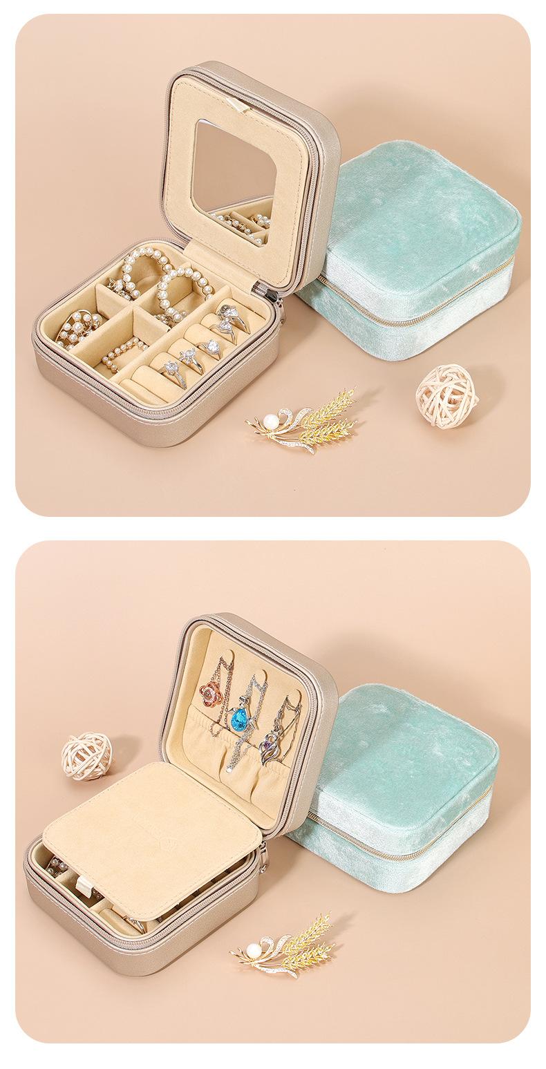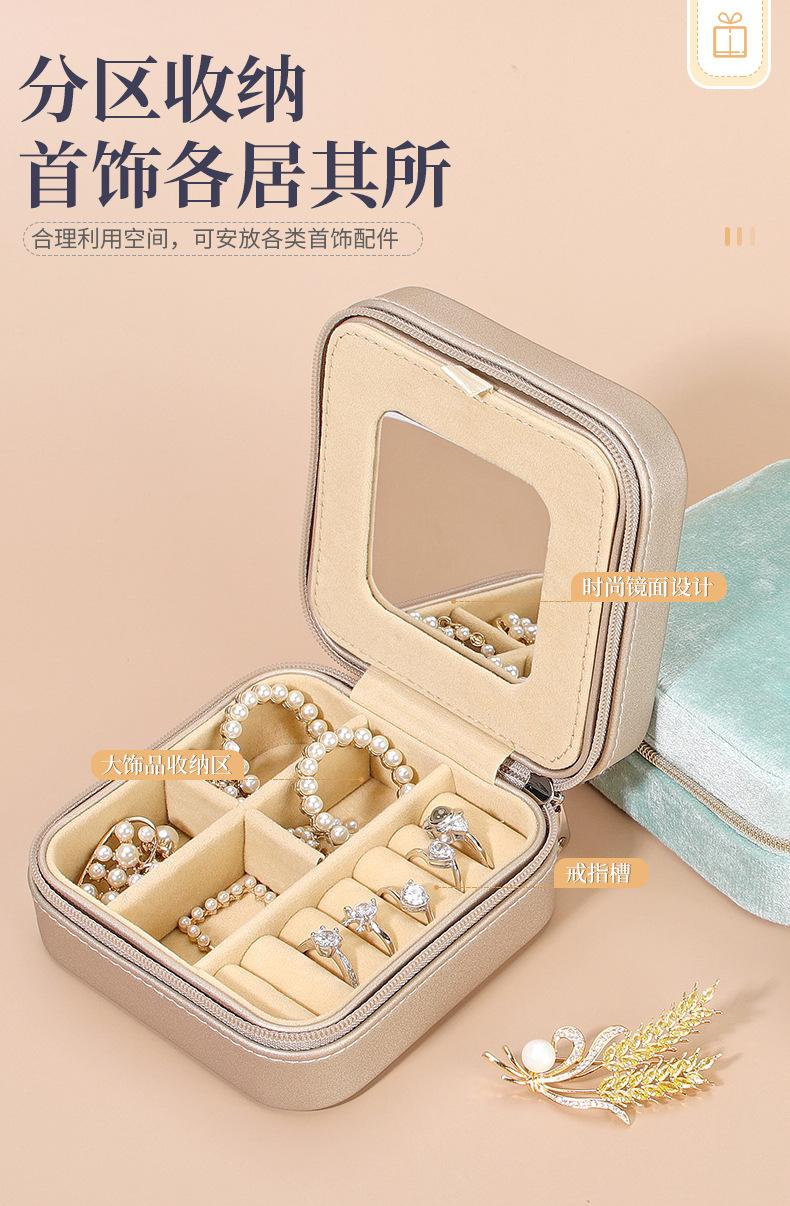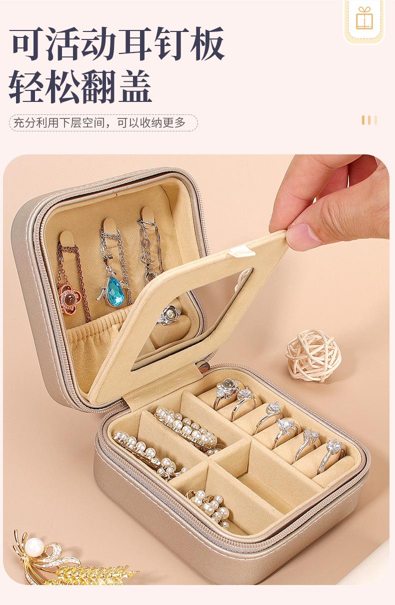 Caja de Joyería de Doble Capa Transfronteriza 2025 Caja de Almacenamiento de Joyería Portátil de Viaje Aretes Aretes con Espejo Caja de Joyería