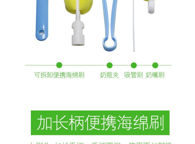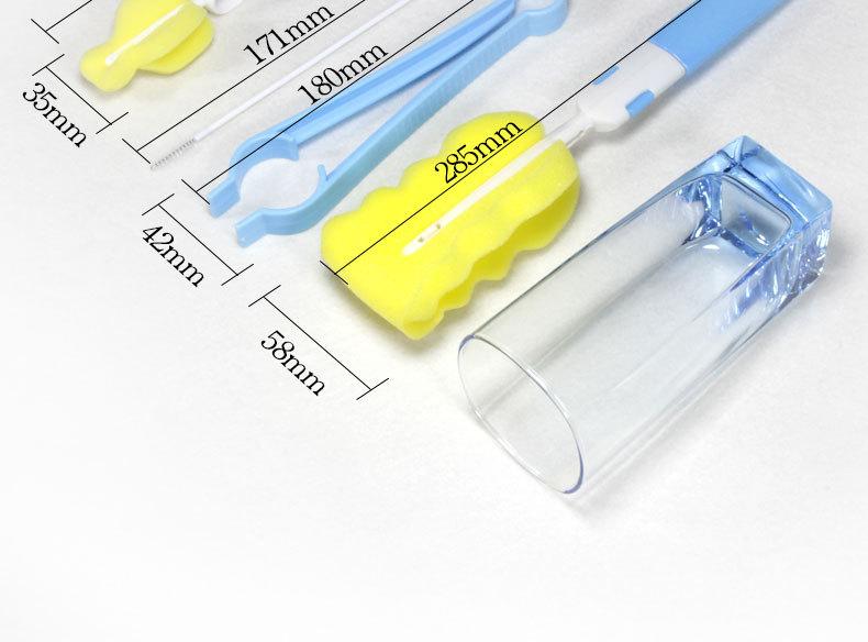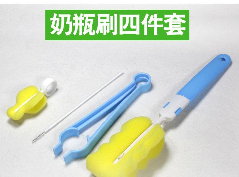 Venta al por mayor de fábrica Juego de 4 piezas de cepillo para biberón de esponja de mango largo Suministros materno-infantiles Cepillo para taza de chupón Limpieza de manchas Cepillo para taza de uso doméstico