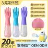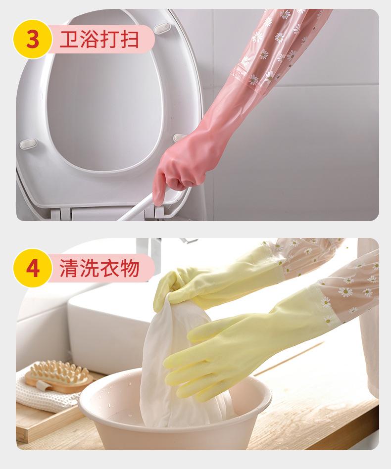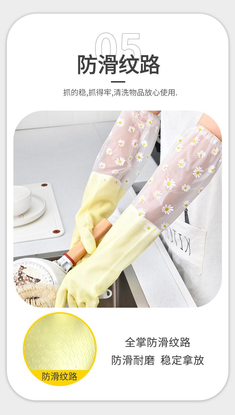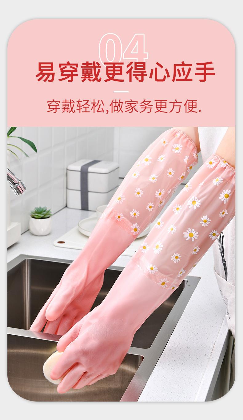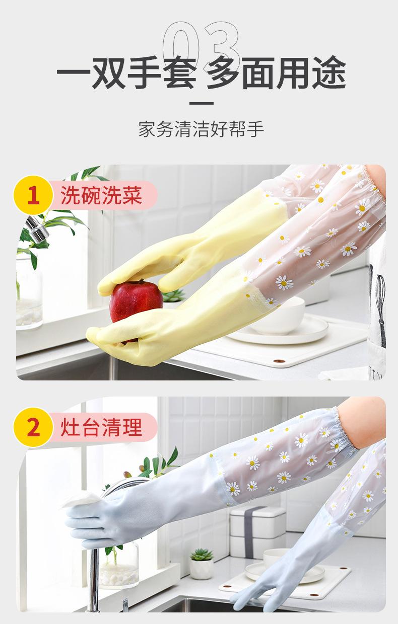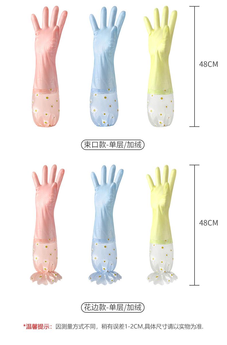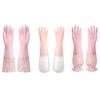 Guantes de PVC cómodos para el hogar para lavar platos con mangas forradas de vellón, antideslizantes, duraderos, engrosados, látex impermeable para mujeres