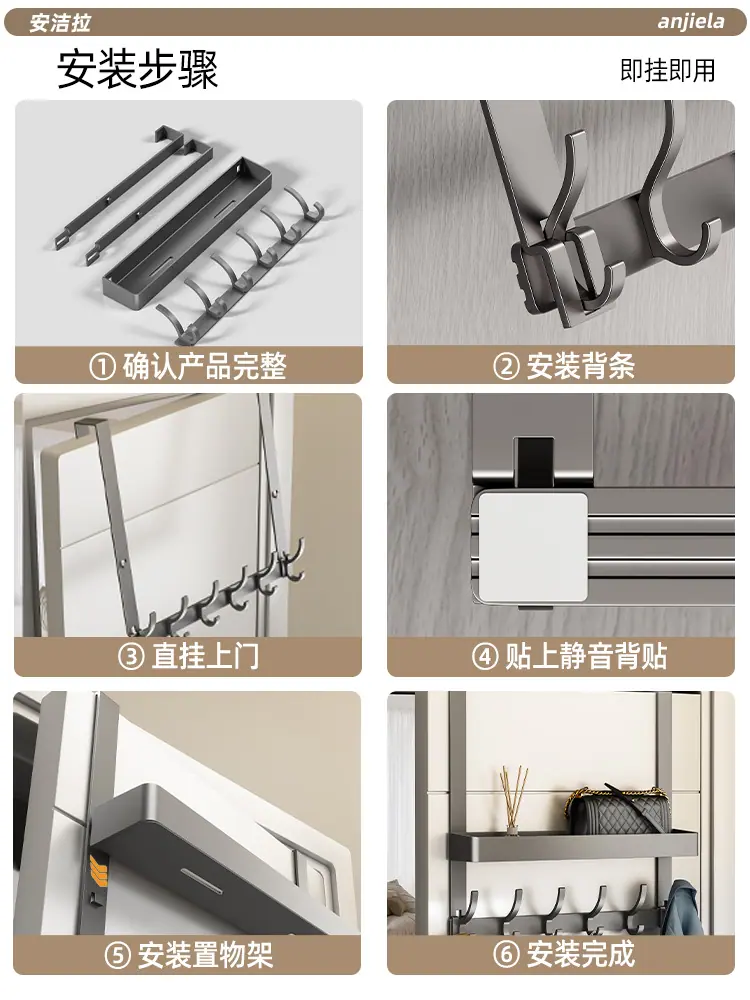 Gancho de Puerta sin Perforaciones para Colgar Ropa y Estante de Almacenamiento, Listo para Usar Colgador de Puerta de Entrada Gancho de Pared Estilo Trasero de Puerta