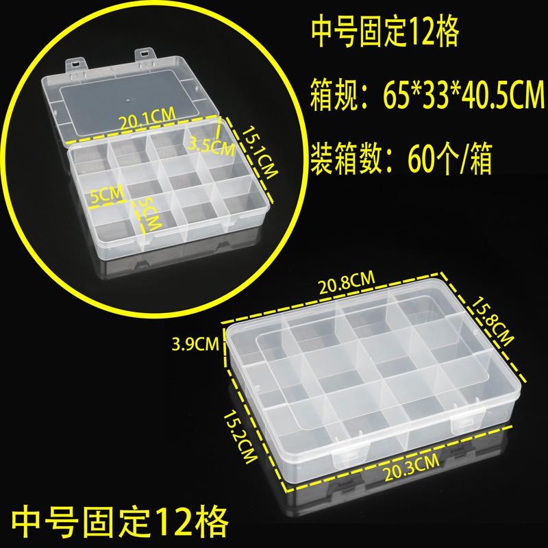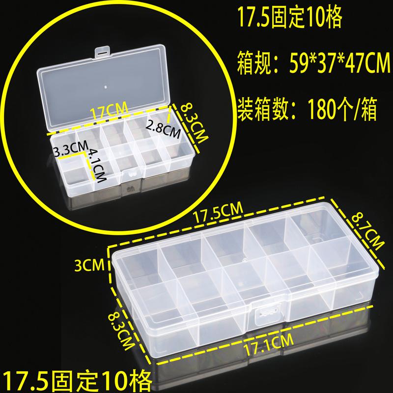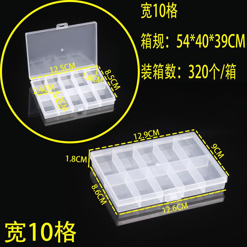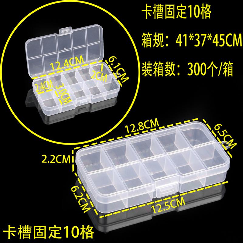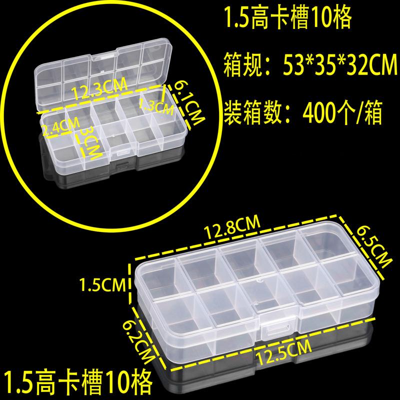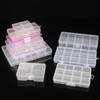 Caja de plástico PP transparente fija de 10 rejillas, 15 rejillas, 24 rejillas, caja de embalaje para cuentas de joyería, partículas de cera, caja de almacenamiento de botones para arte de uñas