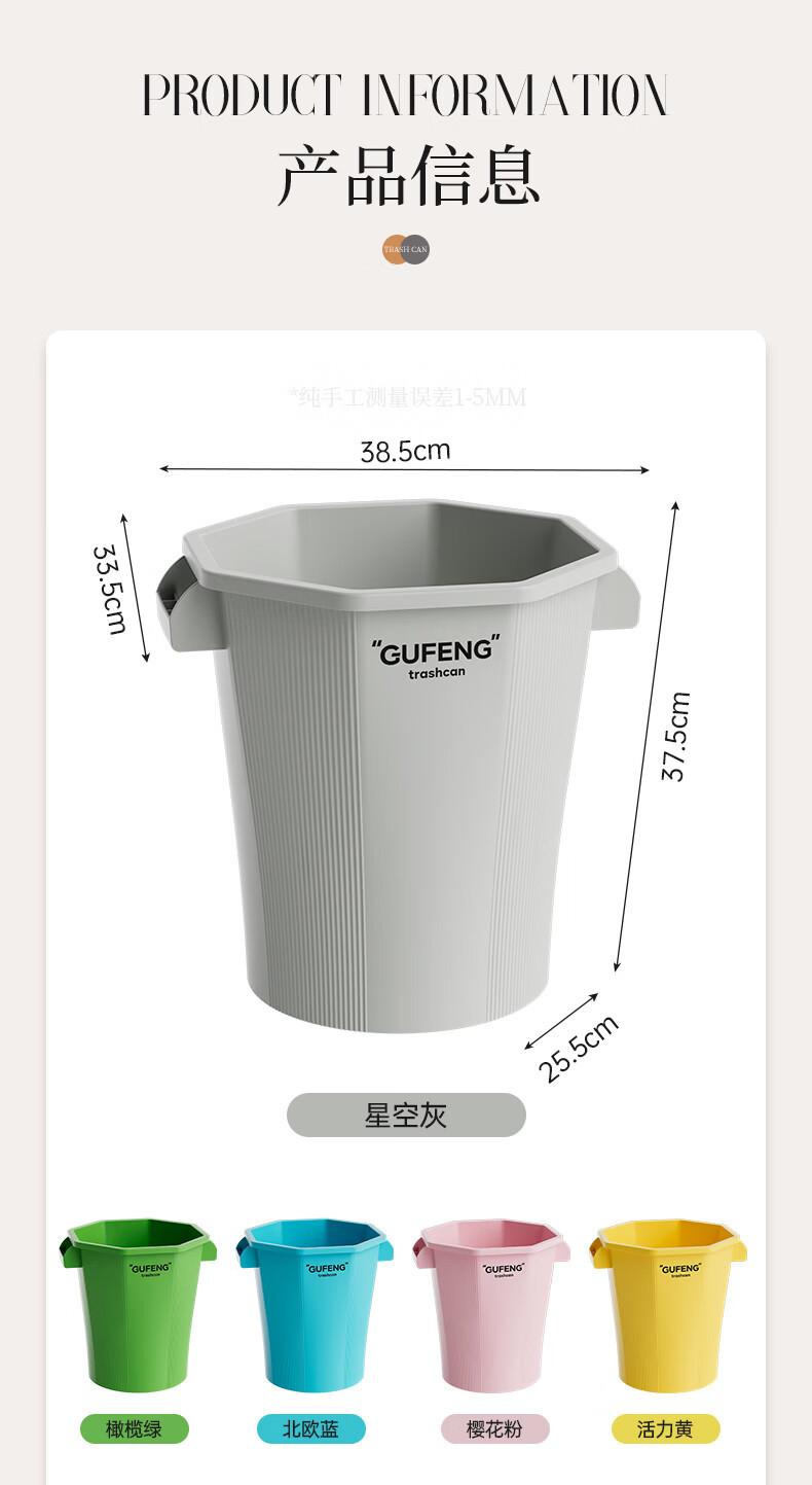 Bote de Basura de Cocina Doméstico de Gran Capacidad para Exteriores Inodoro Baño Cubo de Basura sin Tapa Bote de Basura Doméstico Grande