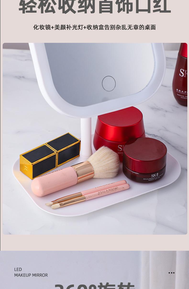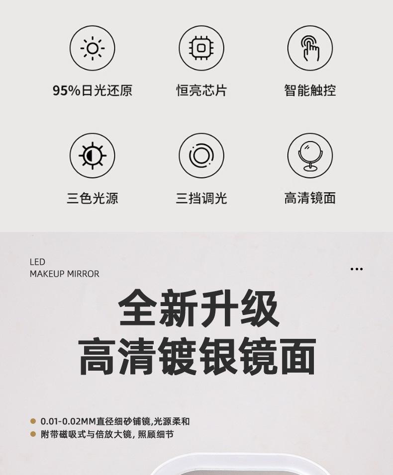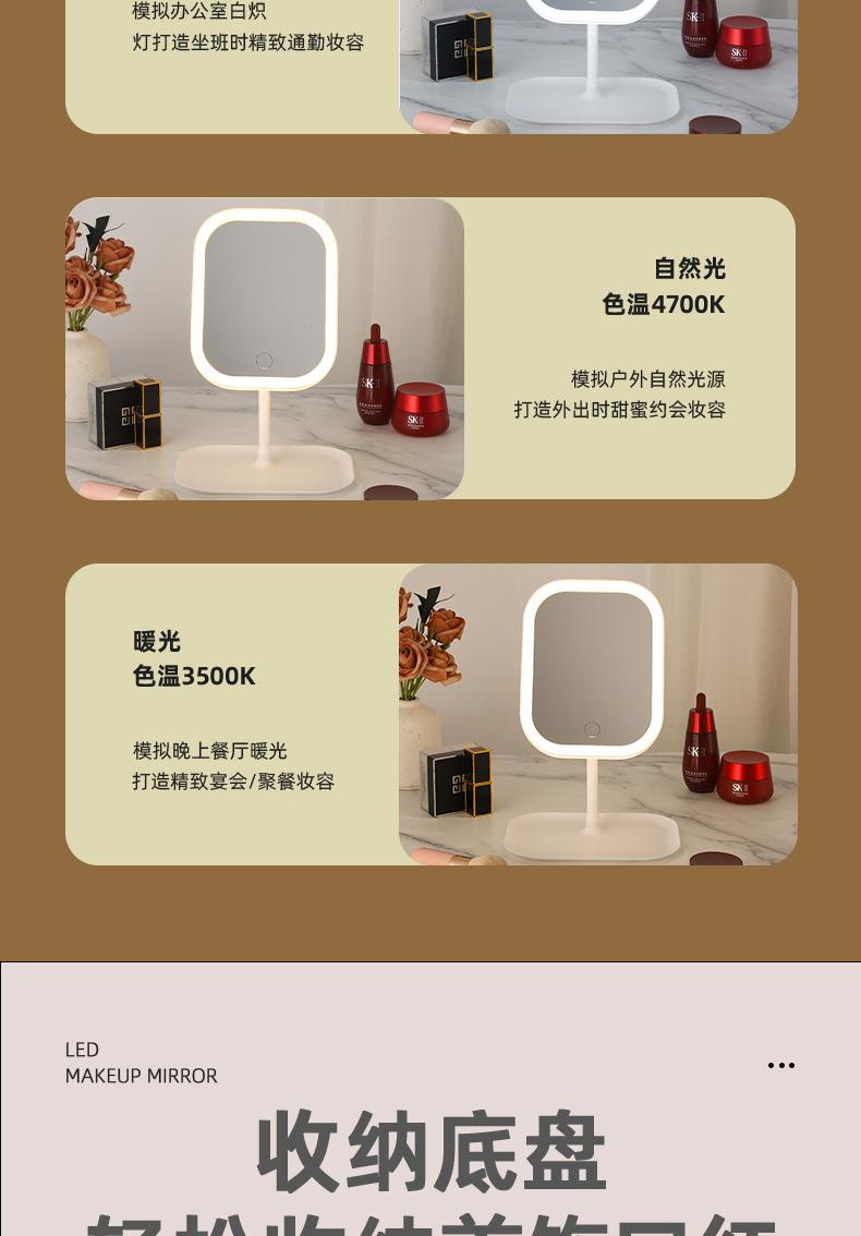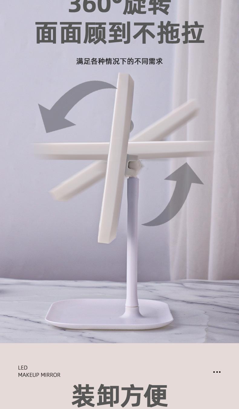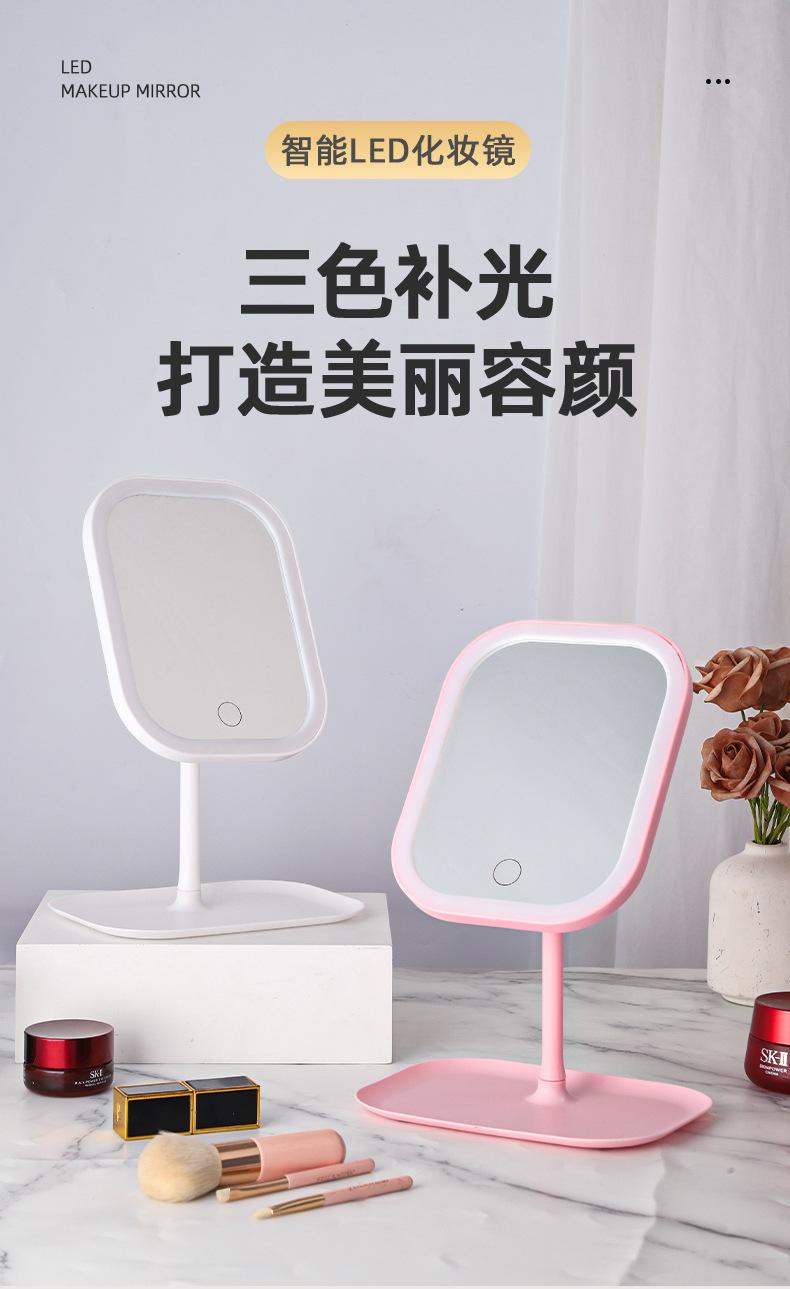 Espejo de Maquillaje LED Personalizado con Iluminación Inteligente Ajustable de Tres Colores, Espejo de Luz de Relleno de Plástico, Espejo de Belleza al por Mayor