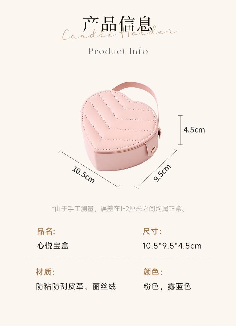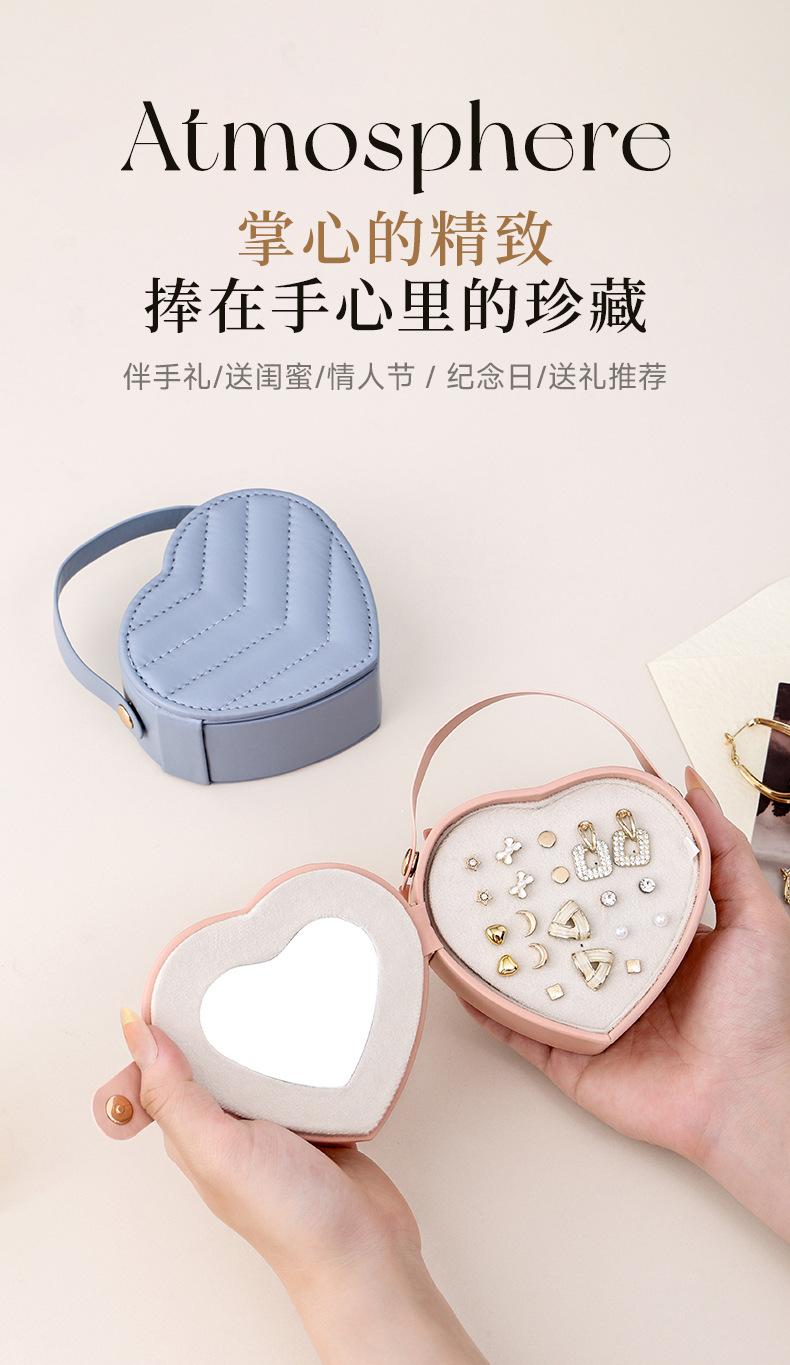 Suministro Directo de Fábrica Caja de Joyería en Forma de Corazón Compacta Portátil para Viaje Almacenamiento de Anillos y Aretes Regalo para Festividades