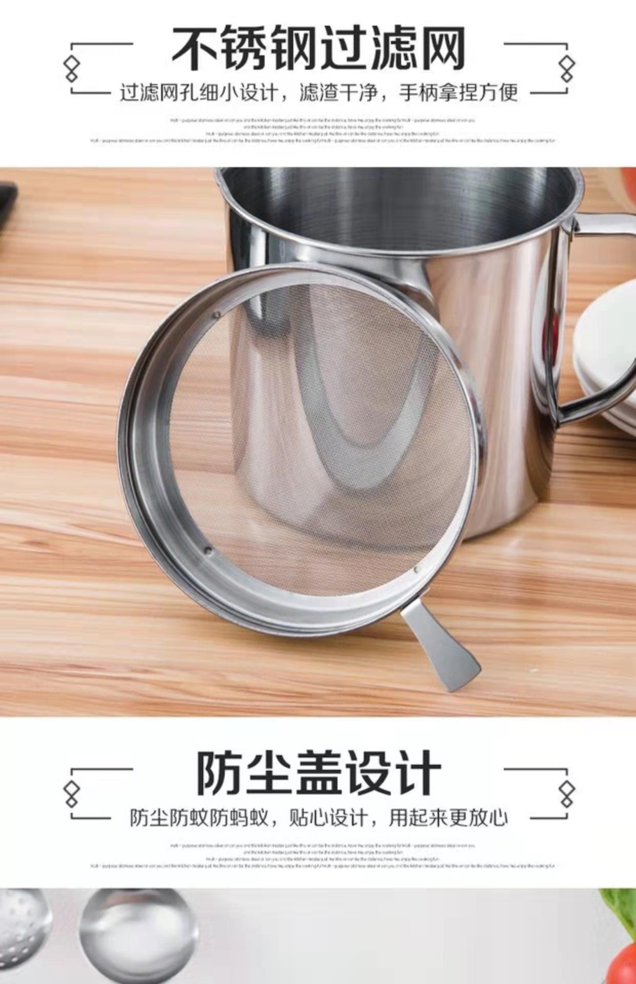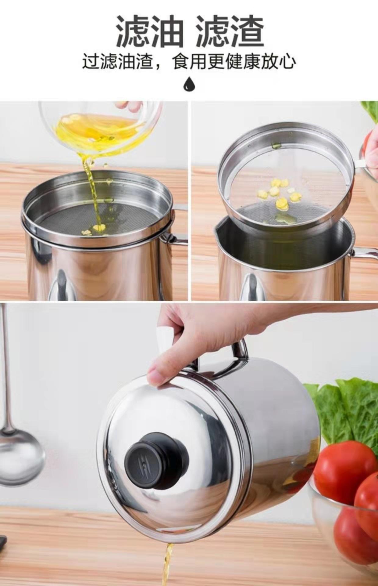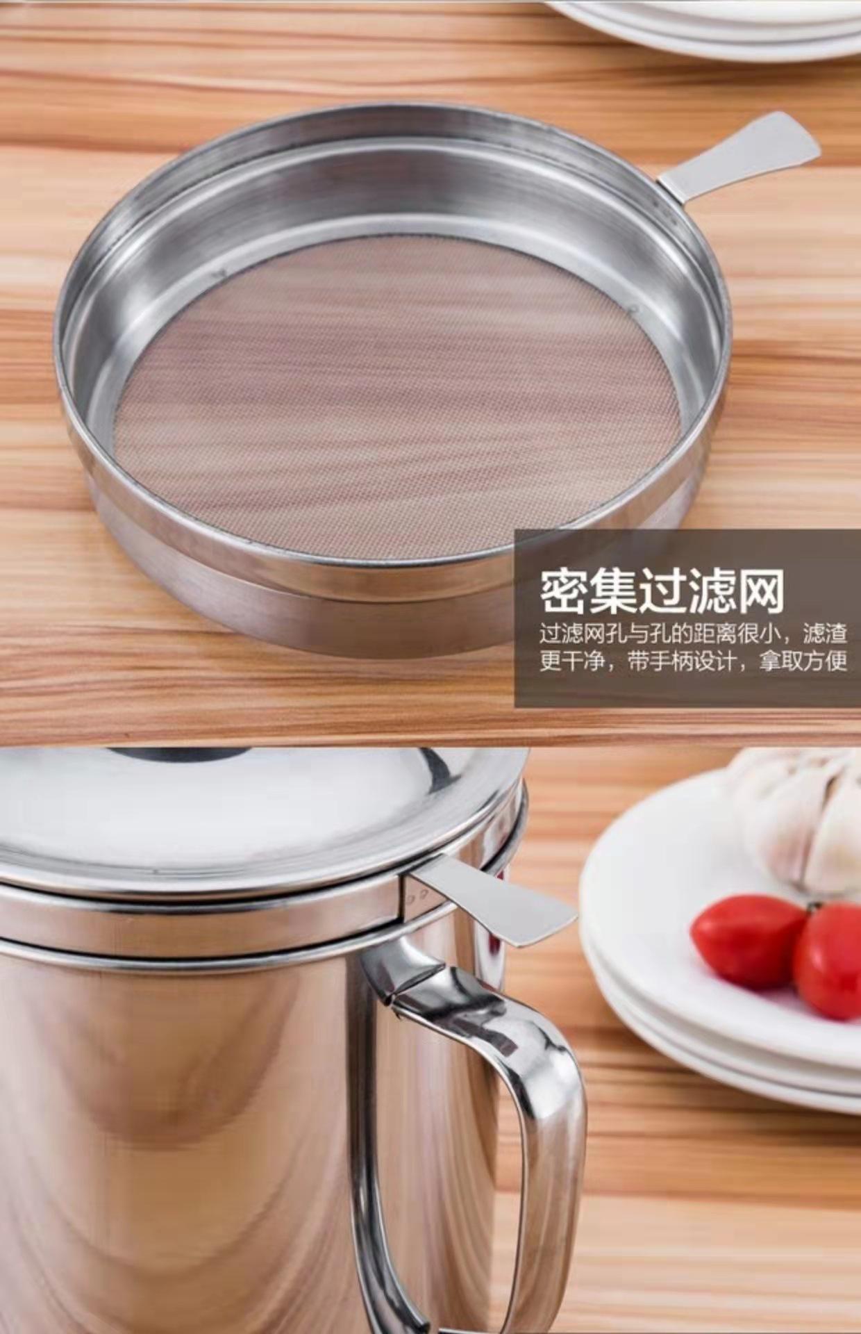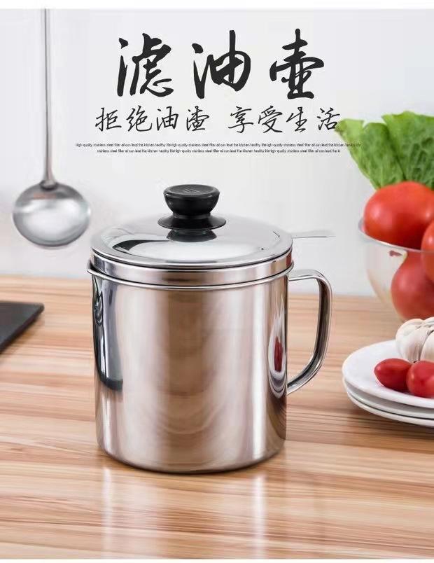 Olla de filtro de aceite de acero inoxidable personalizada con colador, taza para filtrar aceite de uso doméstico, olla para freír, tanque de almacenamiento de aceite, taza separadora de aceite y residuos de cocina