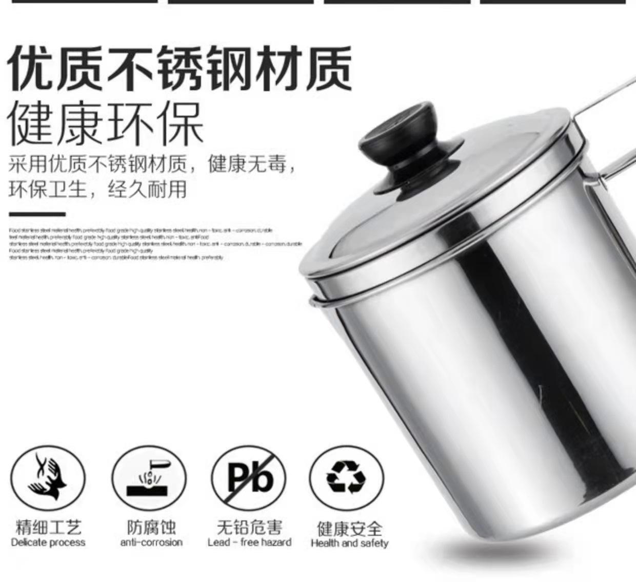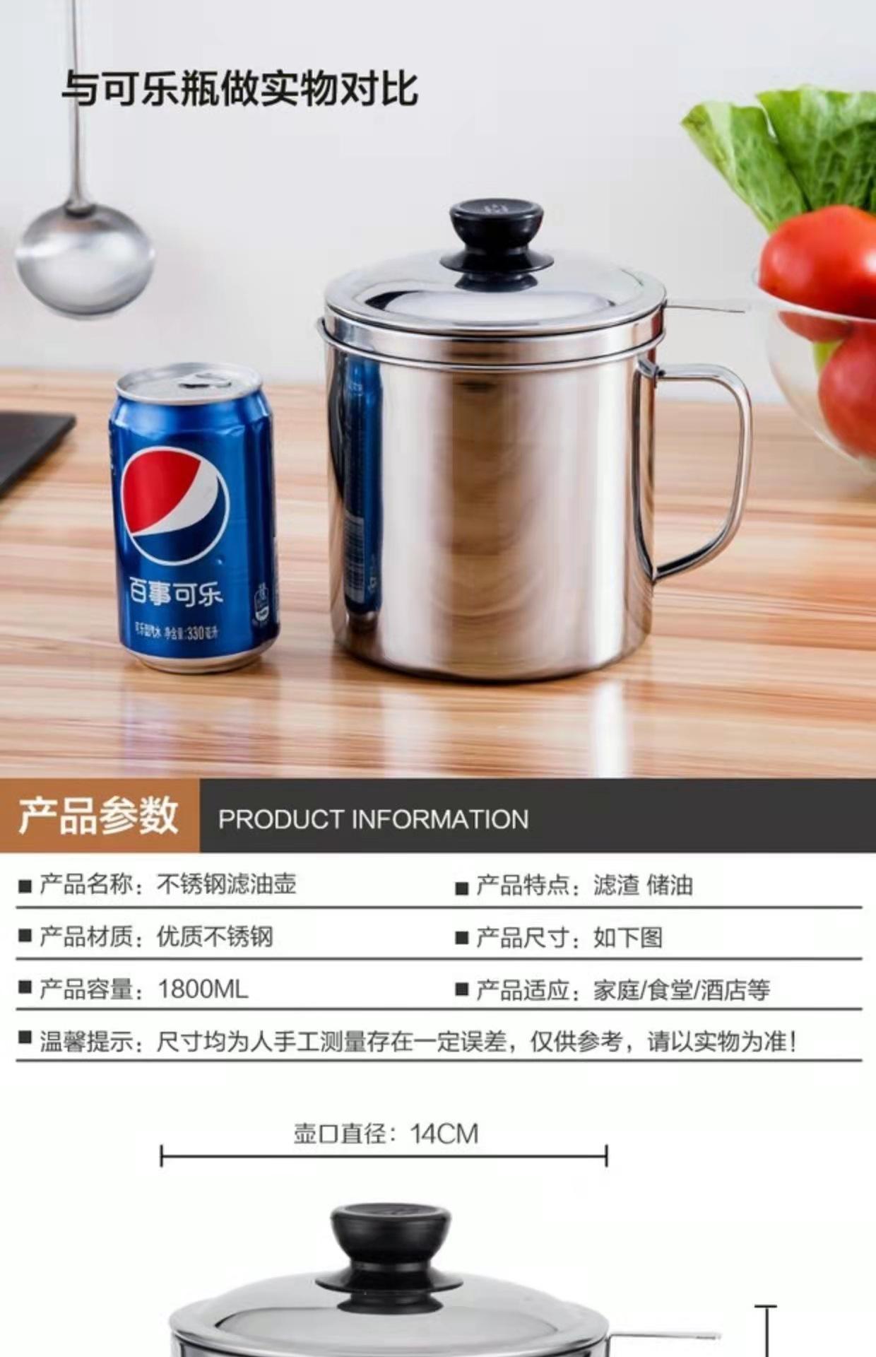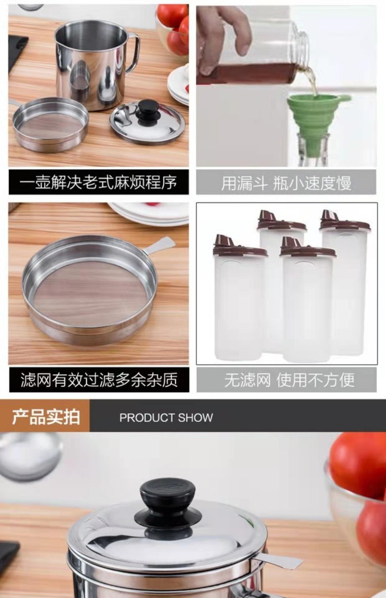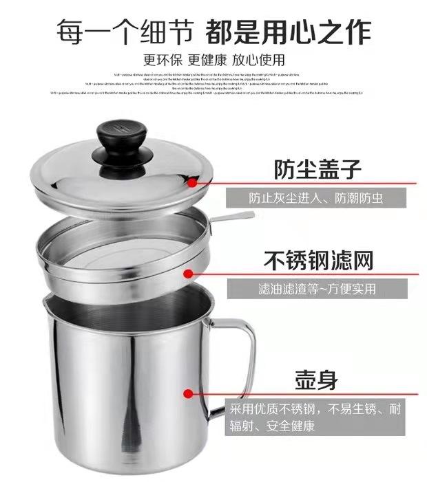 Olla de filtro de aceite de acero inoxidable personalizada con colador, taza para filtrar aceite de uso doméstico, olla para freír, tanque de almacenamiento de aceite, taza separadora de aceite y residuos de cocina