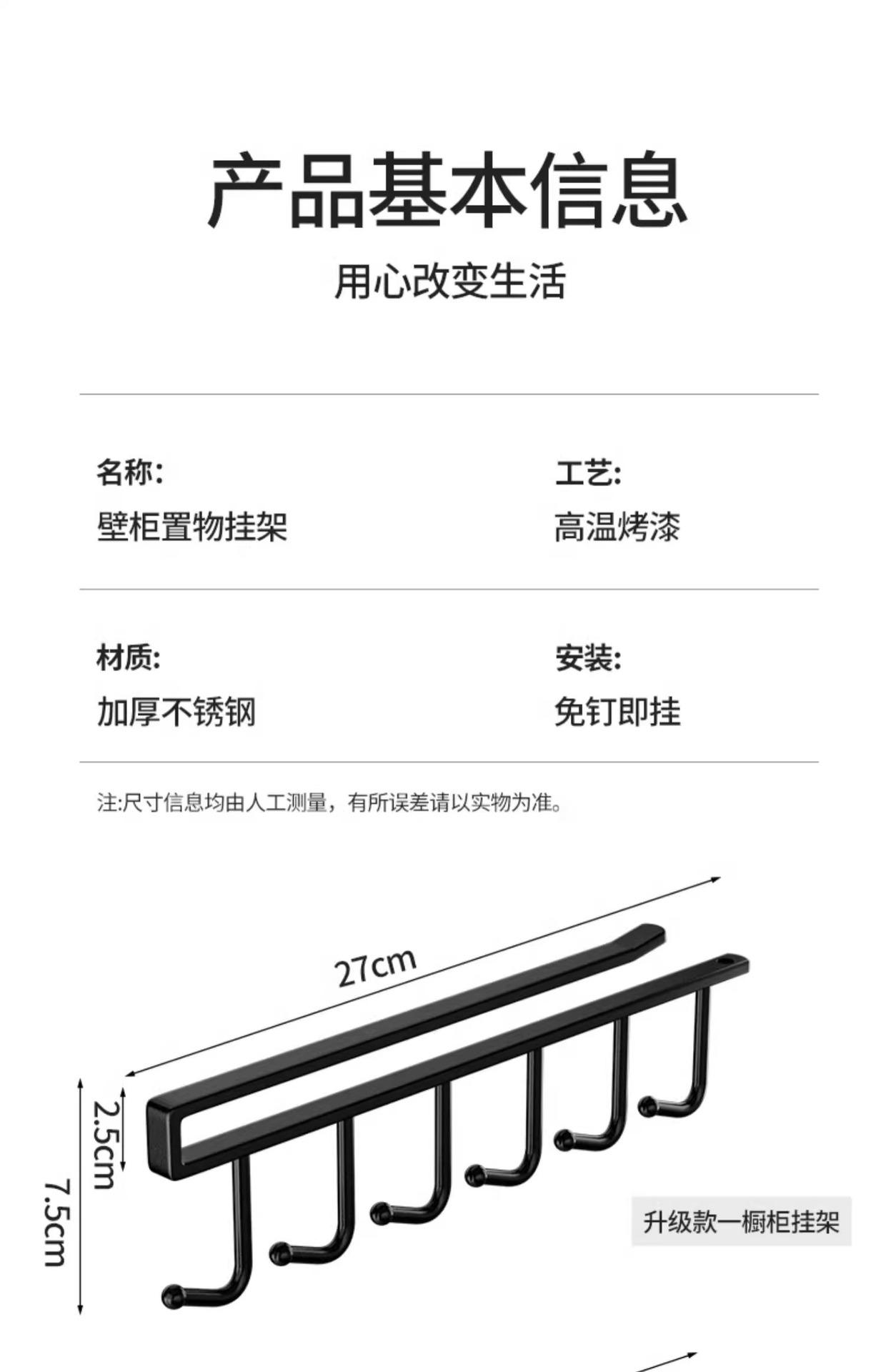 Hook rack [black] 1 pack comes with free traceless screw sticker*1, Hook rack [white] 1 pack comes with free t...