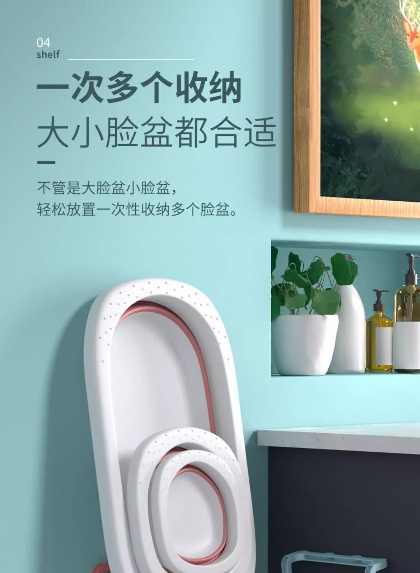 Estante de almacenamiento de pared para baño sin perforaciones, con ventosa, para lavabo, plegable