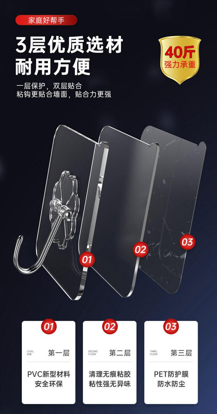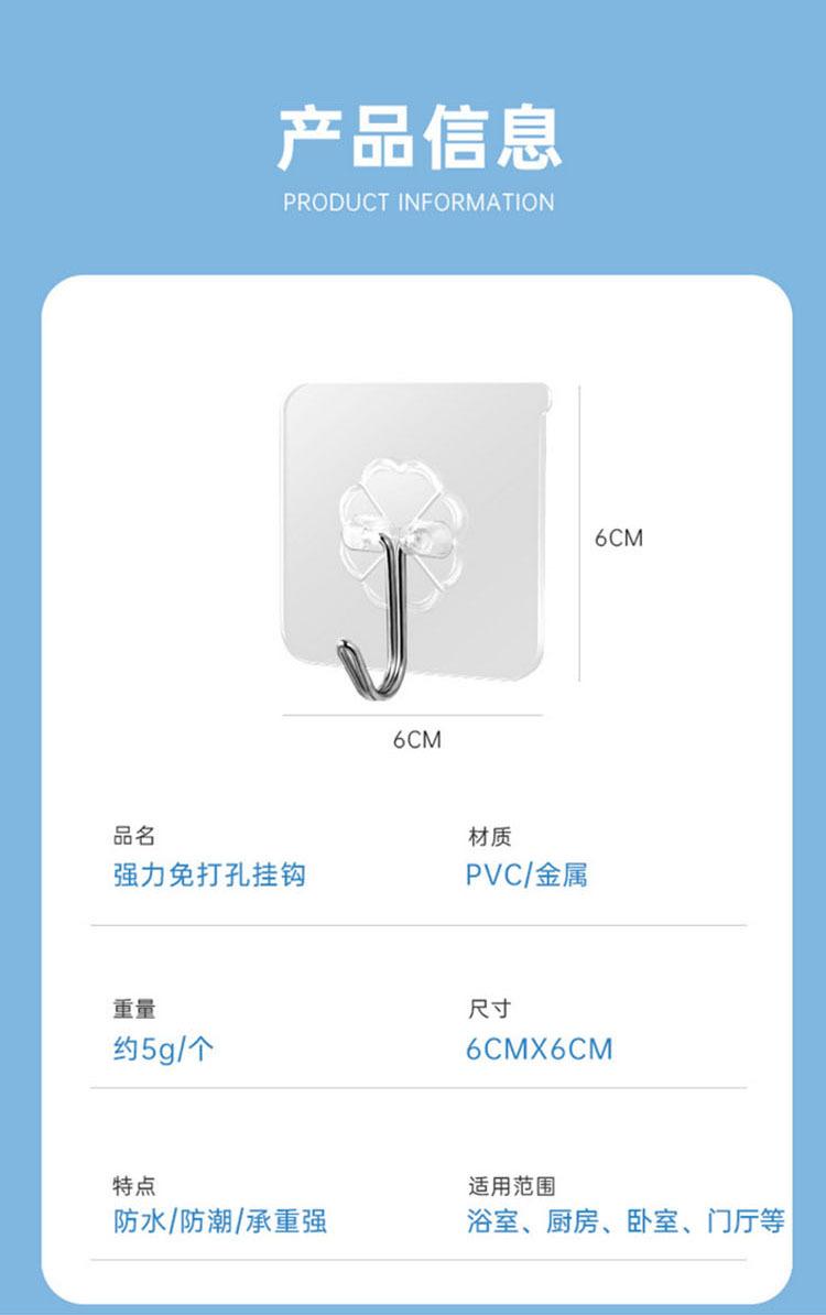 Libizheng Gancho Transparente Adhesivo Fuerte Pared Sin Marcas Sin Perforaciones Cocina Baño Pared Gancho Adhesivo 6Cm*6Cm