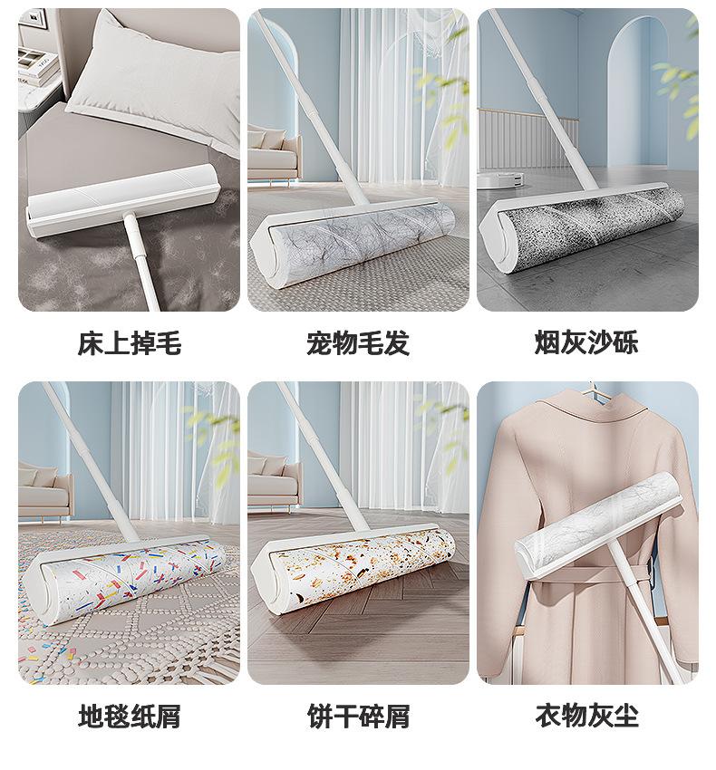 100 Hojas Rodillo Adhesivo para Pelusa Mango Largo Cepillo Rodillo Gato Repuesto Grande Removedor Adhesivo de Pelusa Polvo de Cama Pelo Artefacto de Succión Papel Desprendible