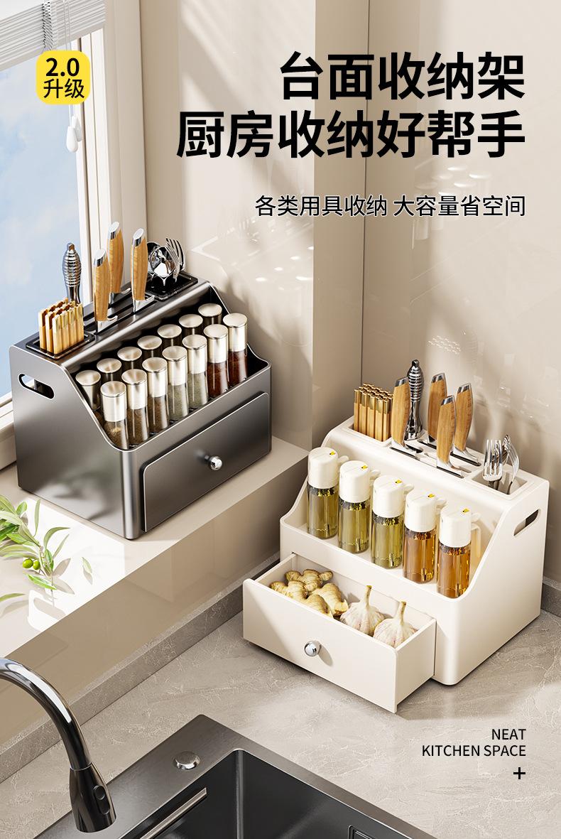 [gun ash] countertop multifunctional spice rack, [cream white] countertop multifunctional spice rack