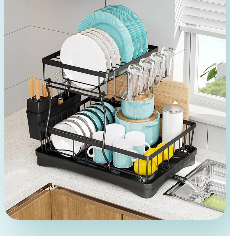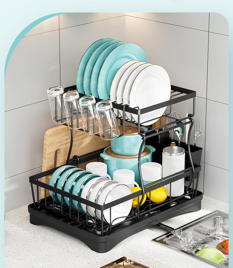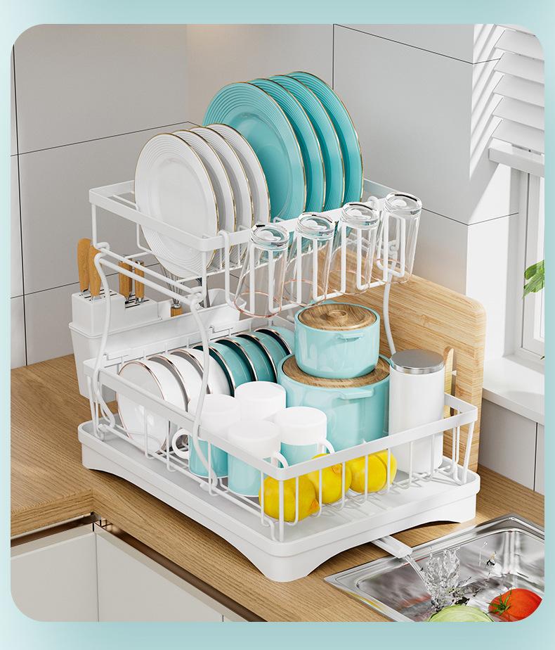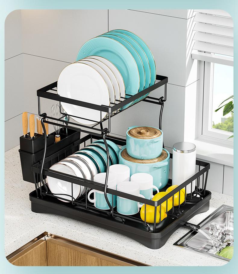 Black double-layer dish rack (full set), White double-layer dish rack (full set)