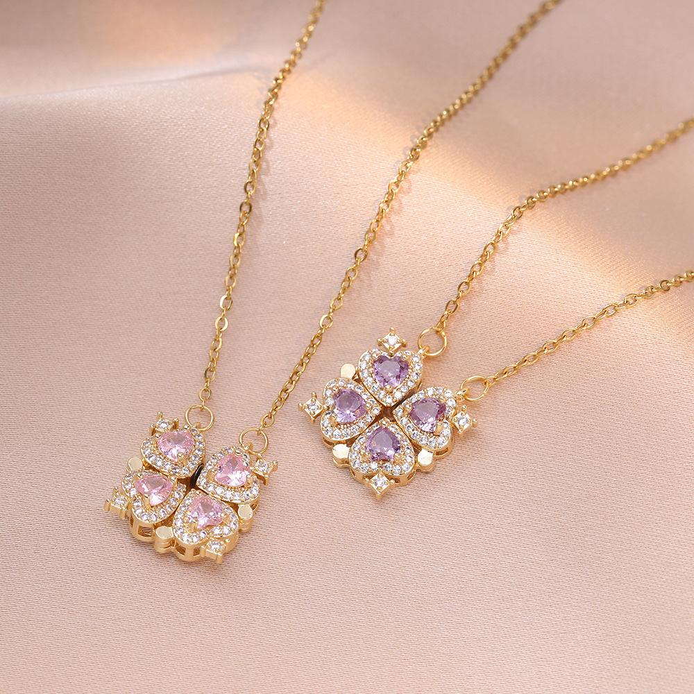 Collar para Mujer Transfronterizo de Una Pieza Multiuso Collar de Corazón Diseño Nicho Accesorio Corazón de Durazno Colgante Magnético Gargantilla Moderna Europea y Americana