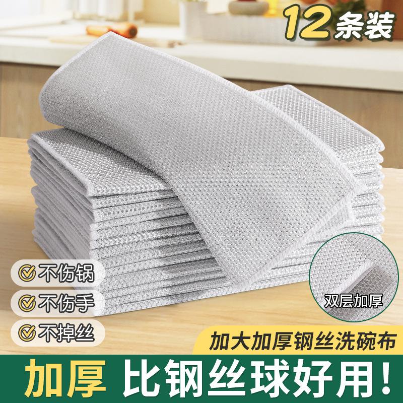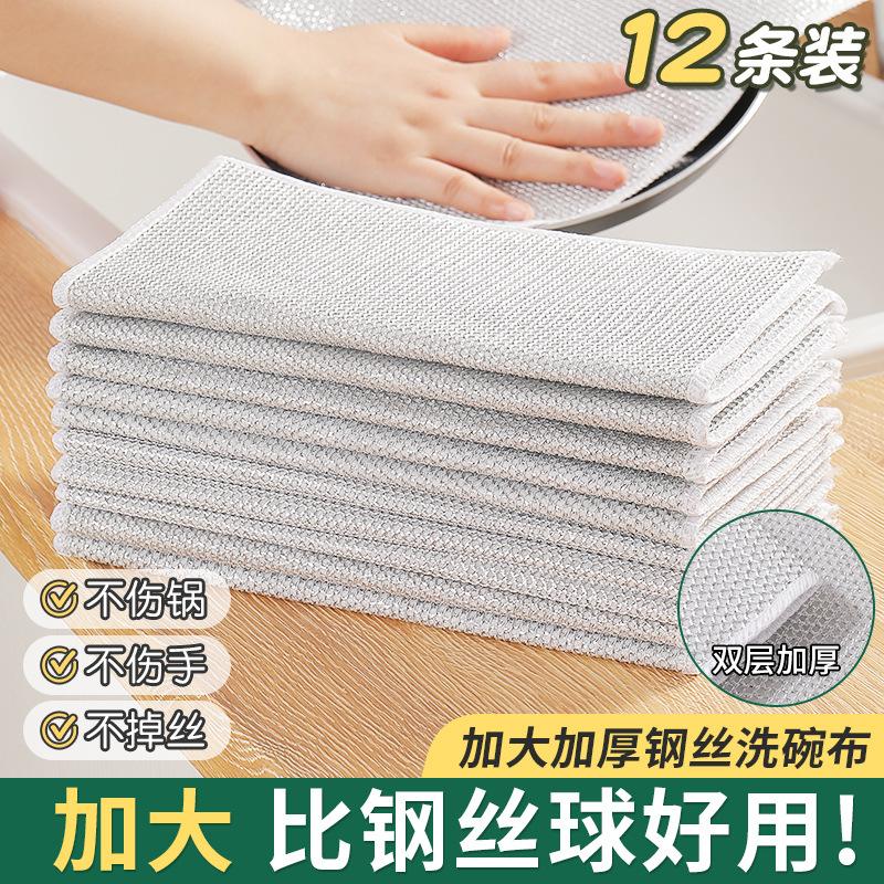 Paño para Lavar Platos Doble Capa Engrosado Antiadherente Aceite Toalla para Platos Estropajo Trapo Absorbente Alambre de Plata Gasa de Algodón Lavar Platos Olla Venta al Por Mayor