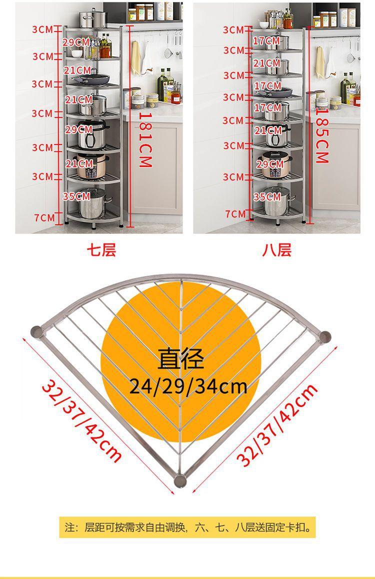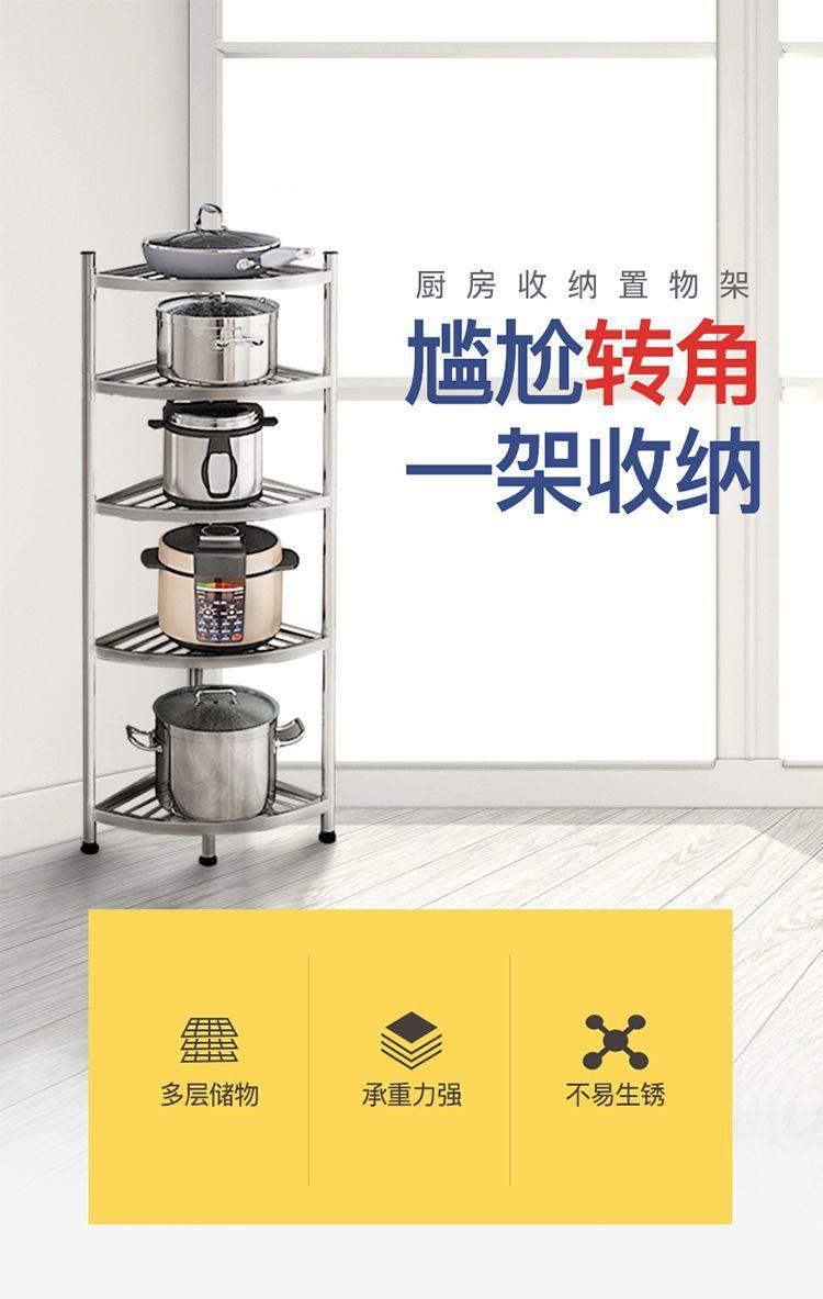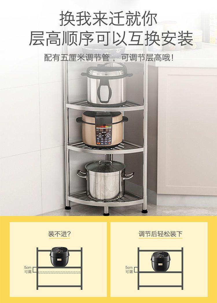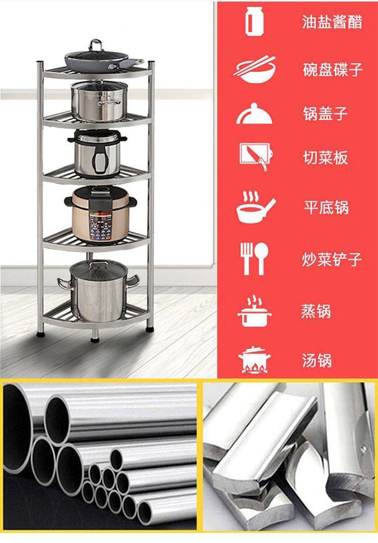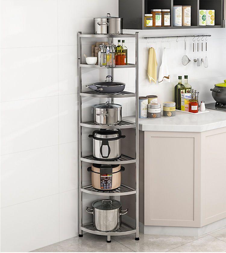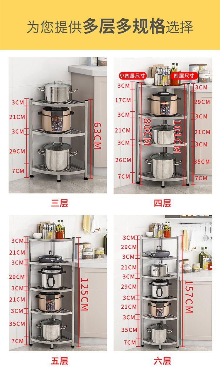 Estante de Almacenamiento de Cocina de Acero Inoxidable de Pie Estante de Almacenamiento y Organización de Encimera Esquina Engrosada Olla Estante de Almacenamiento Multicapa