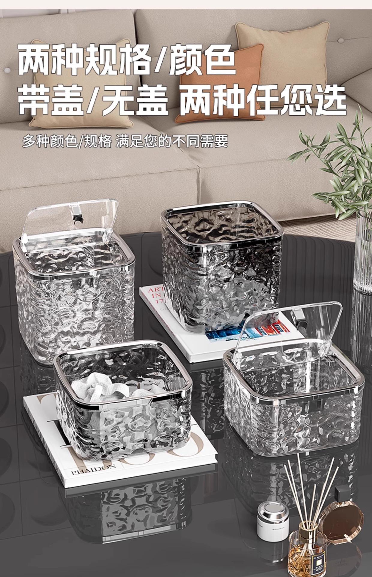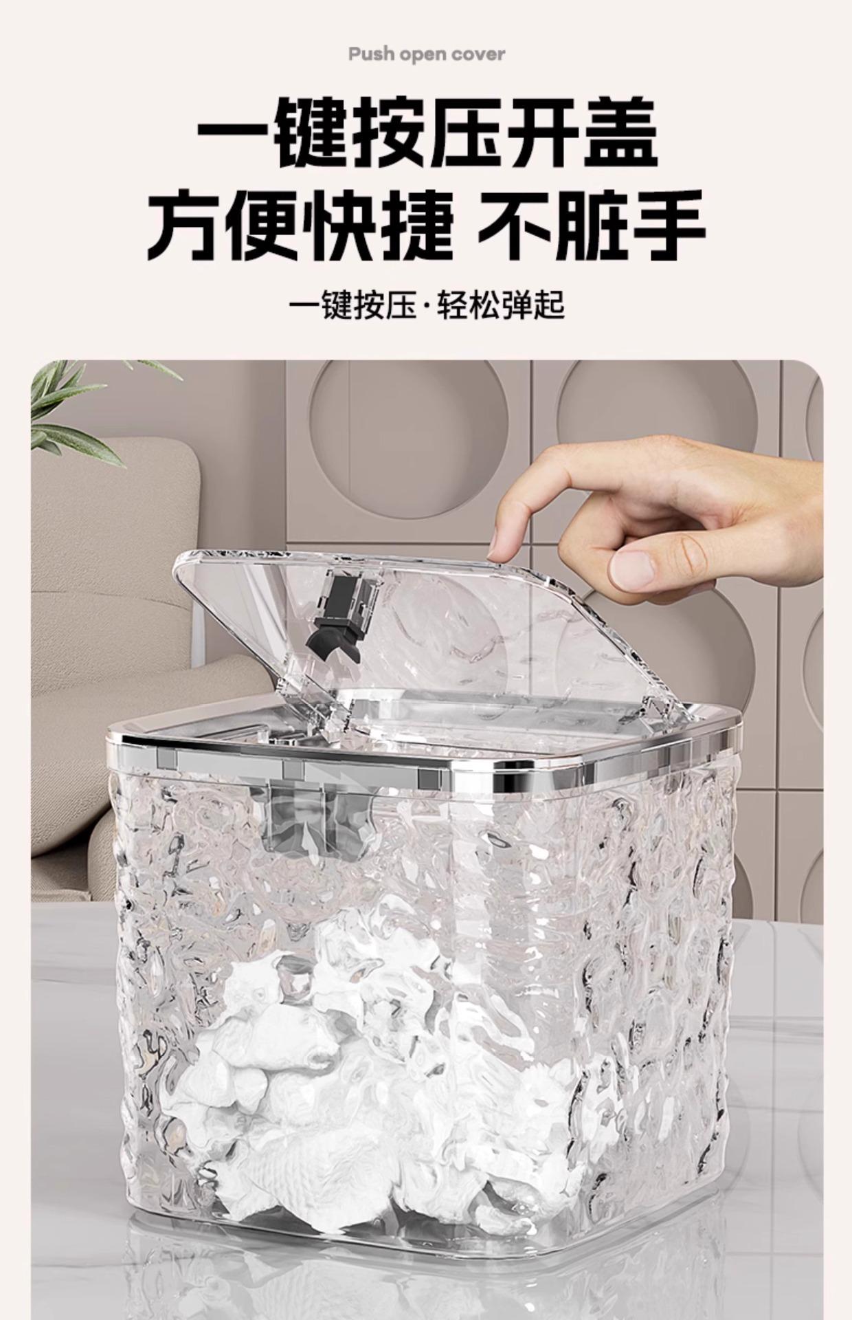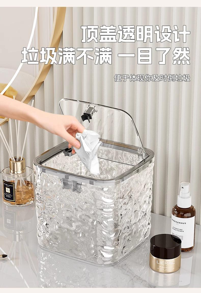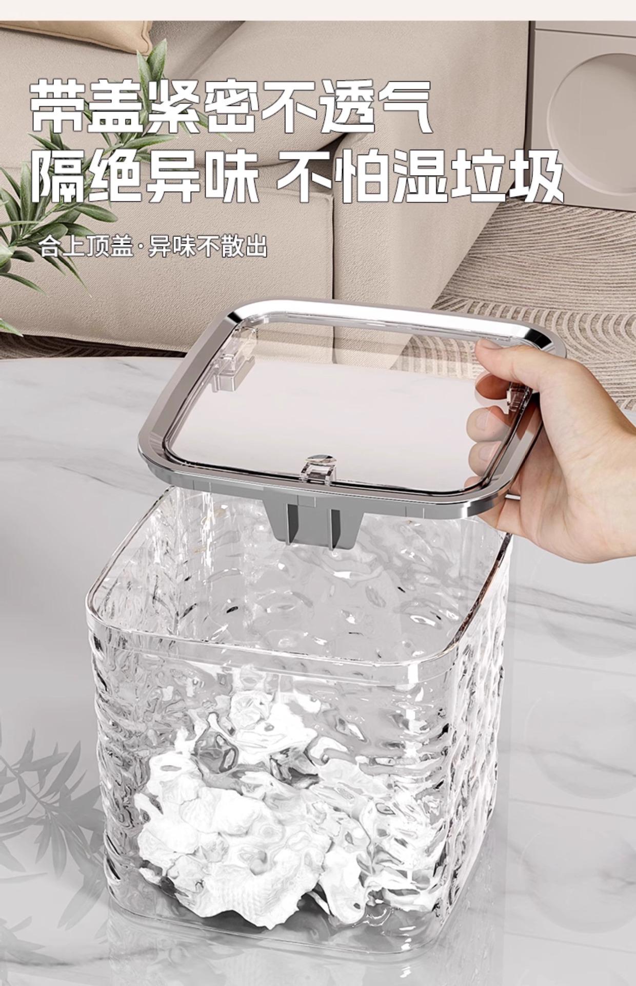 Small transparent color [1 pack] water ripple press trash can, Large transparent color [1 pack] water ripple p...
