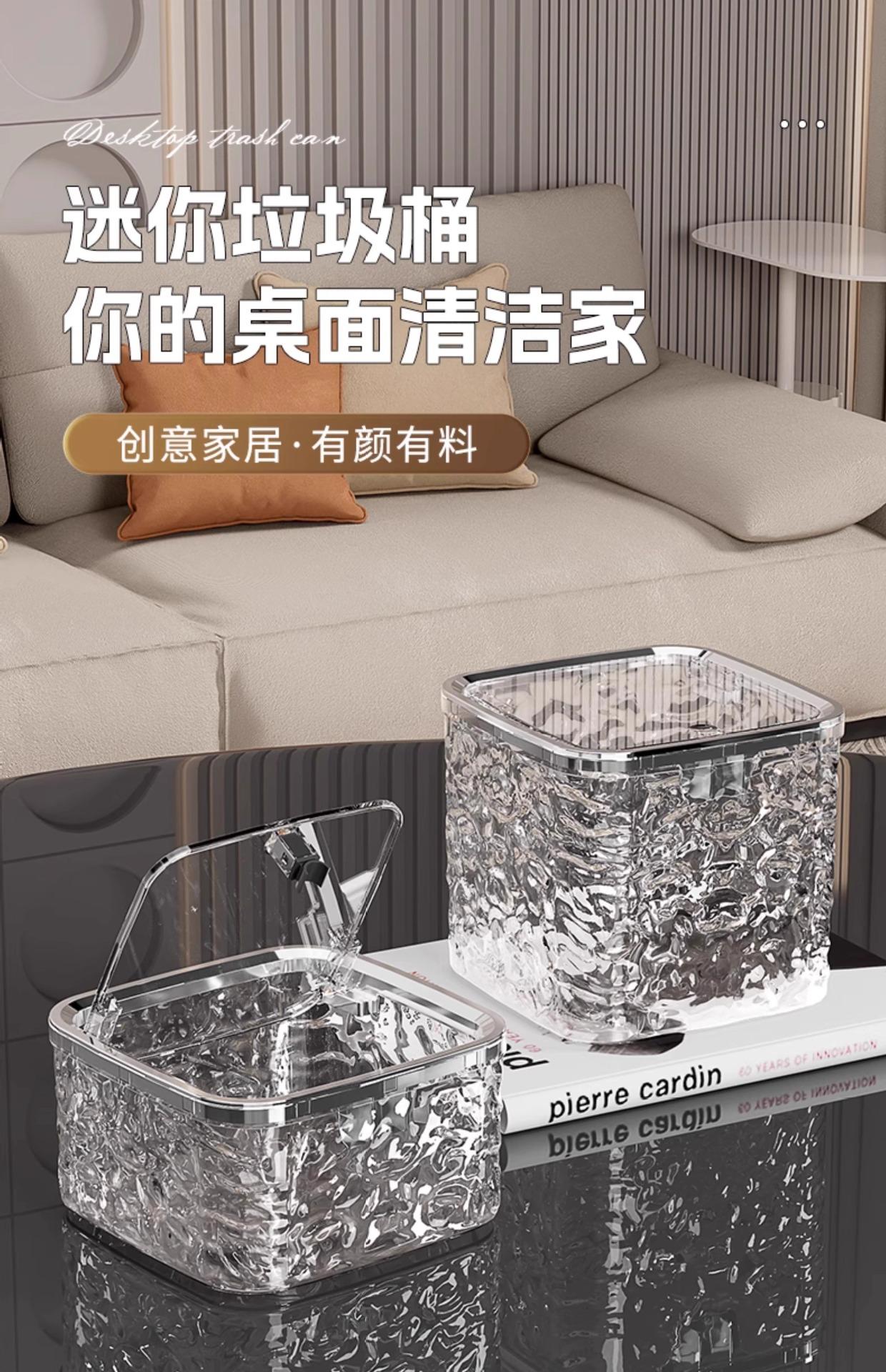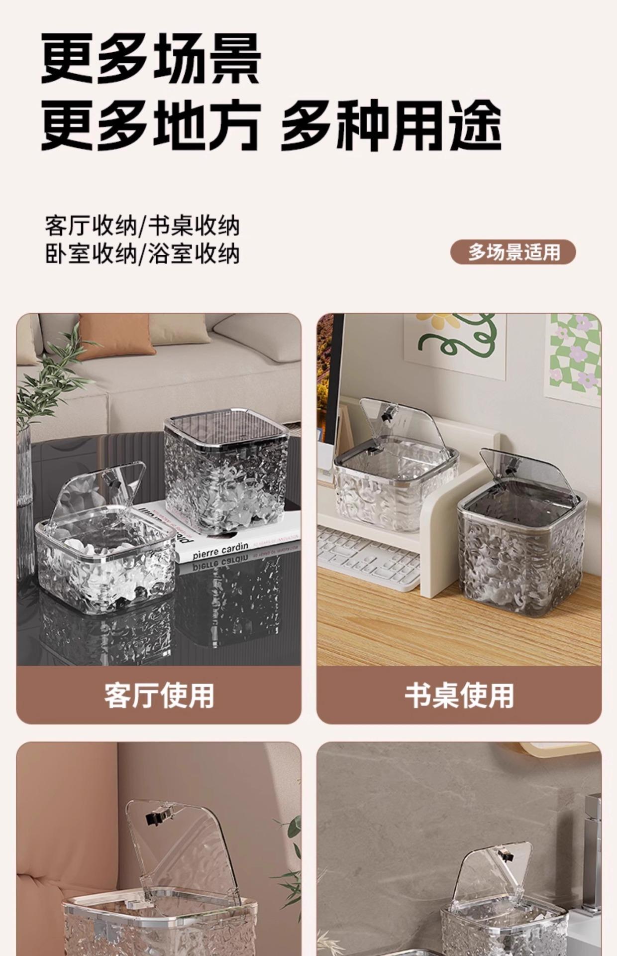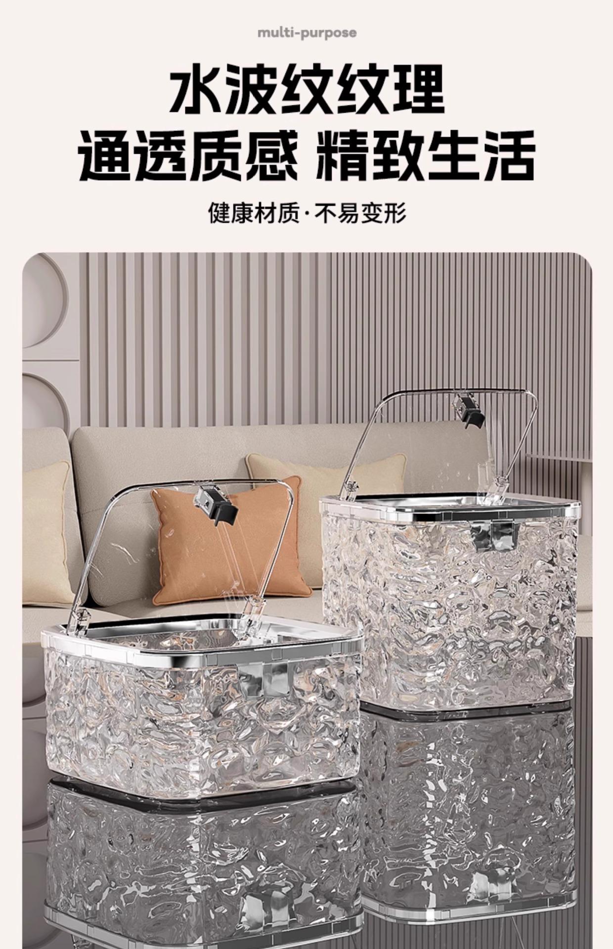 Small transparent color [1 pack] water ripple press trash can, Large transparent color [1 pack] water ripple p...