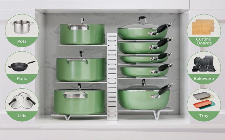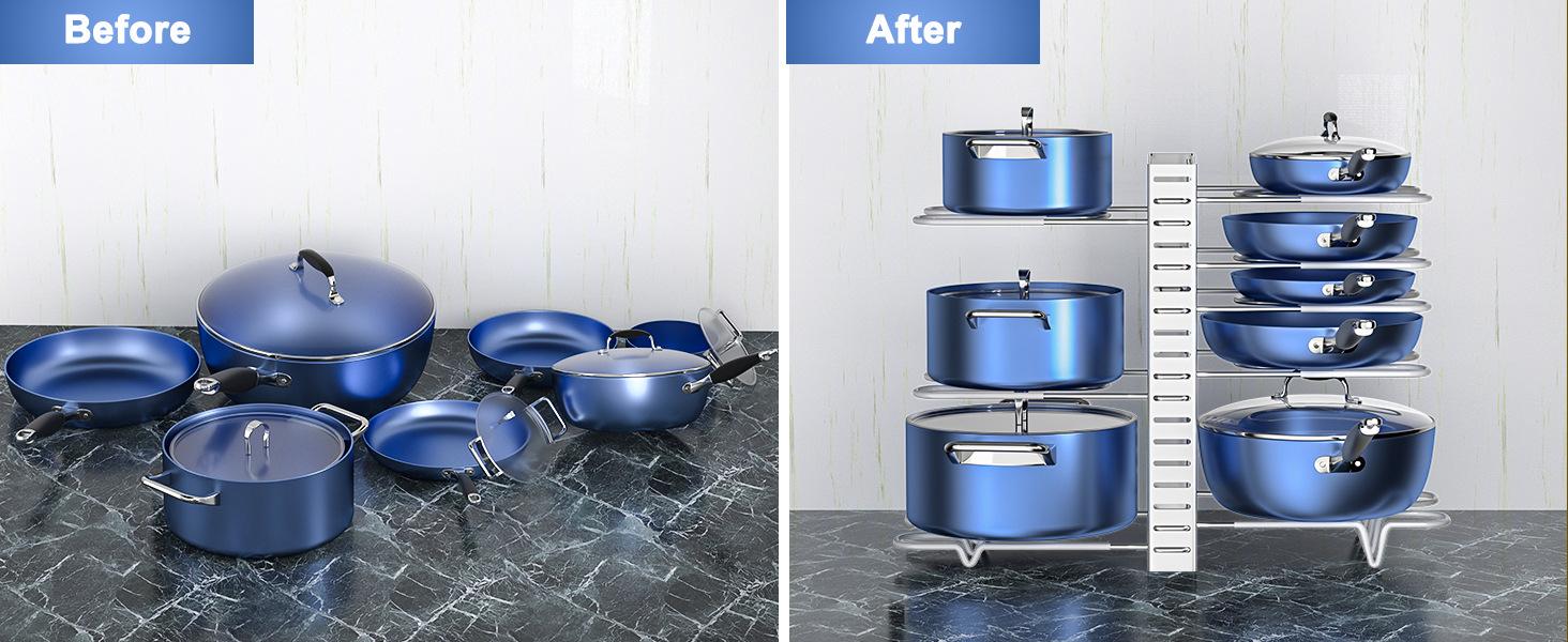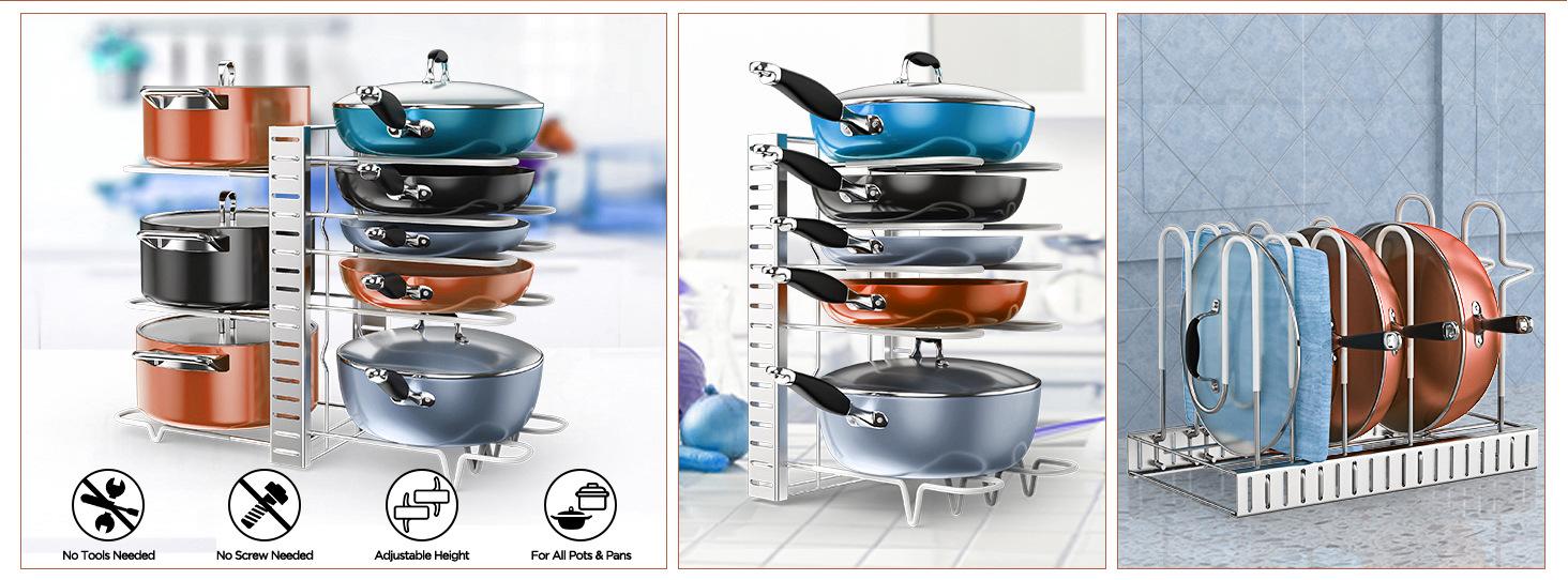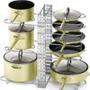 Yongyi Nuevo Soporte para Ollas Doméstico Sin Perforaciones de Doble Cara Acero Inoxidable Soporte para Ollas Cocina Estante de Capas para Tapas de Ollas Estante de Almacenamiento para Utensilios de Cocina