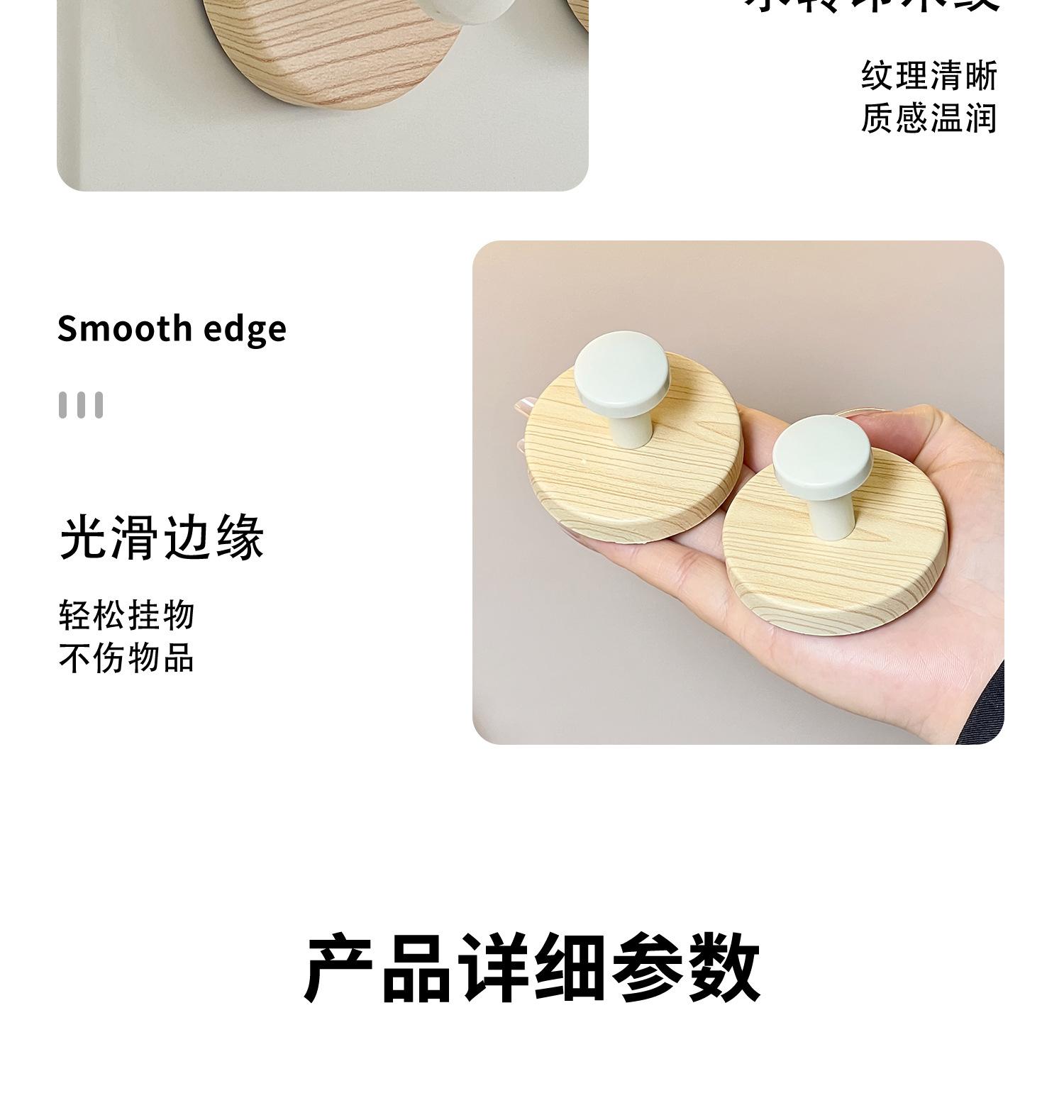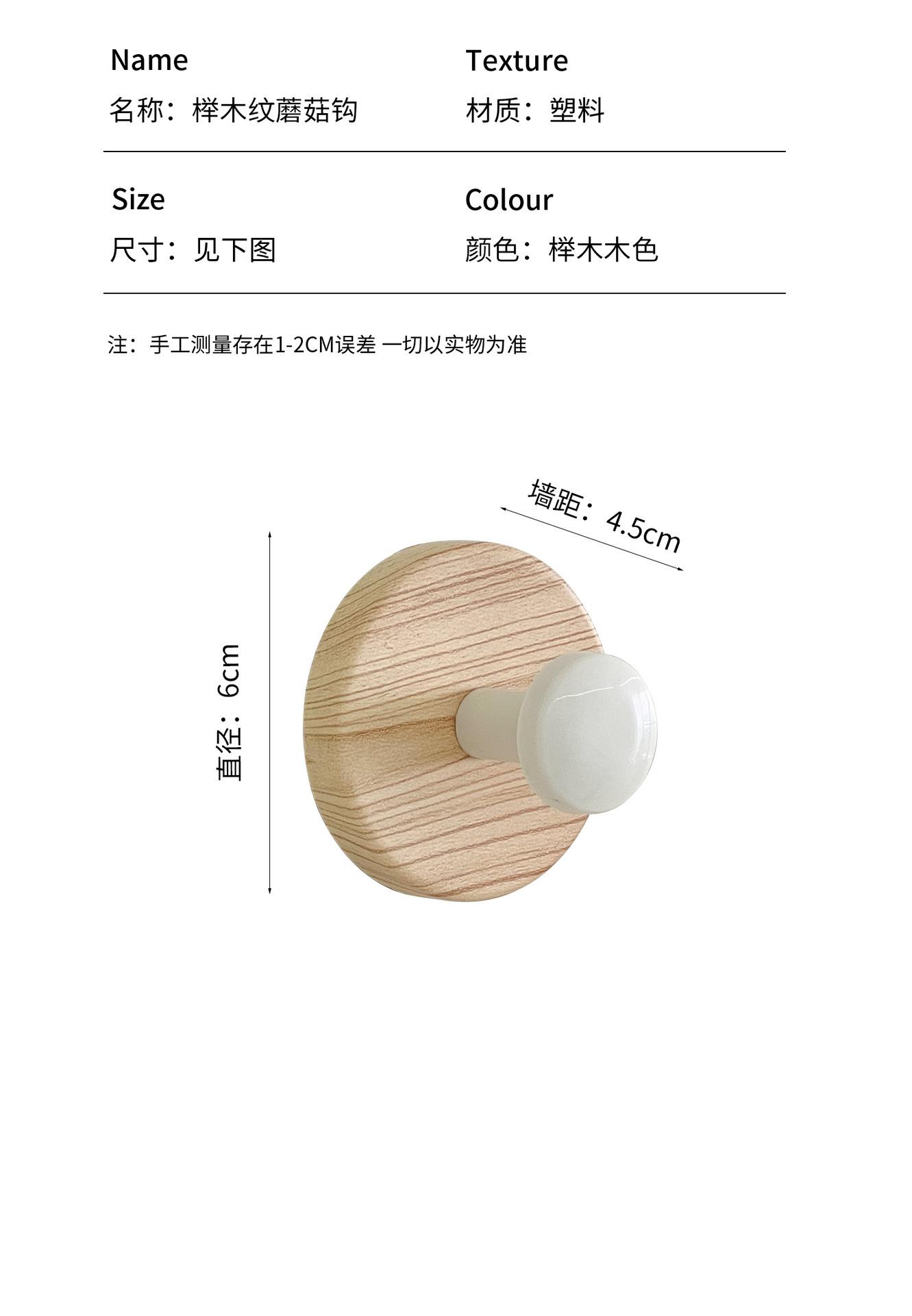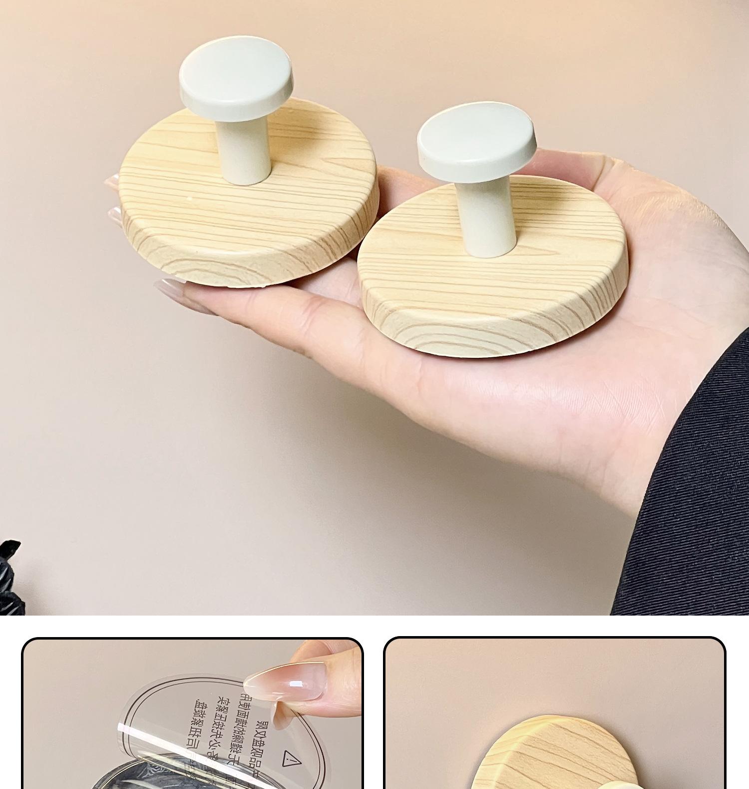 Suction cup beech wood grain mushroom hook [one set], Vintage wood grain mushroom suction cup hook - single pack