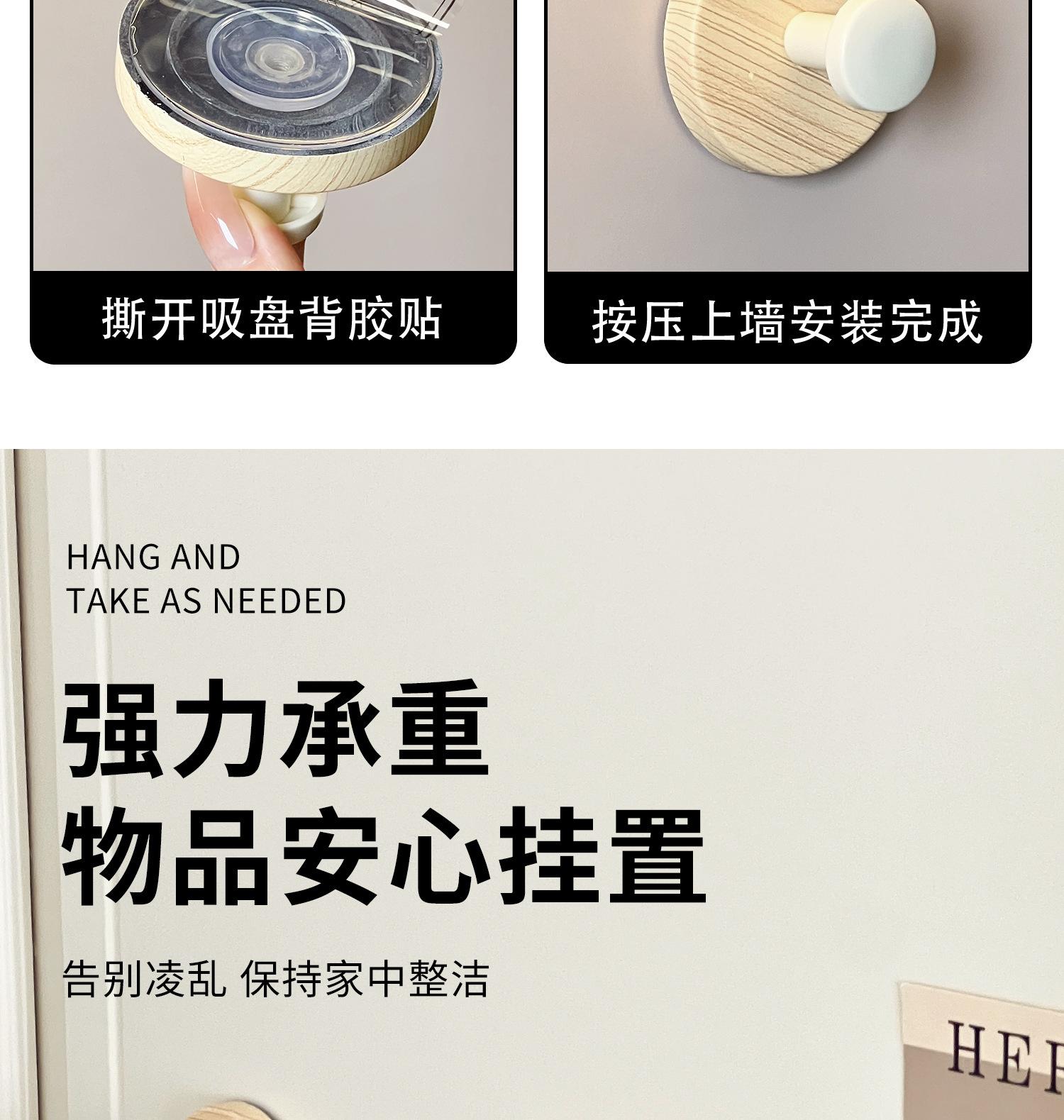 Color Madera de Haya Gancho para Puerta Ventosa Fuerte Soporte de Carga Perchero Montado en la Pared Gancho Individual Adhesivo para Ropa Sin Perforaciones Gancho para Ropa