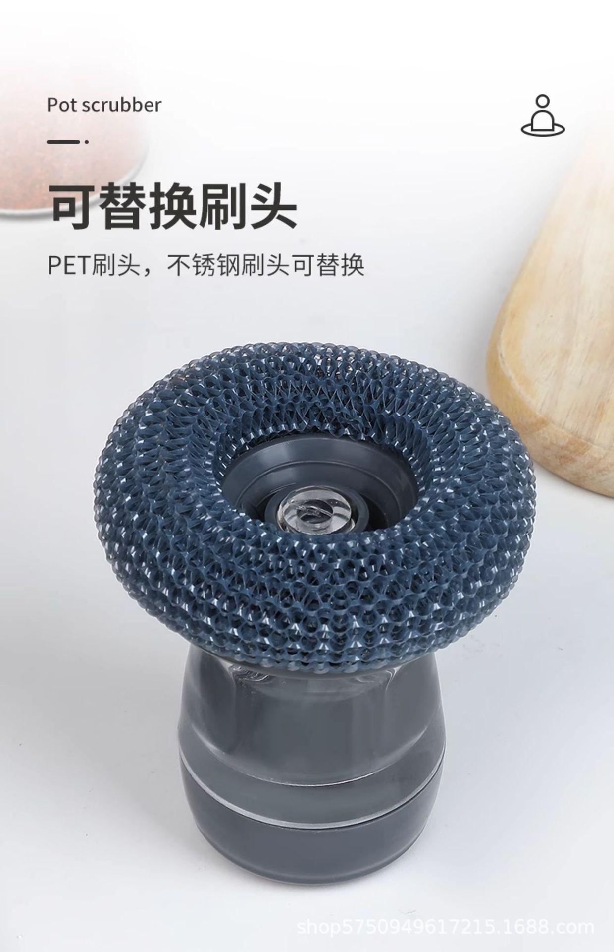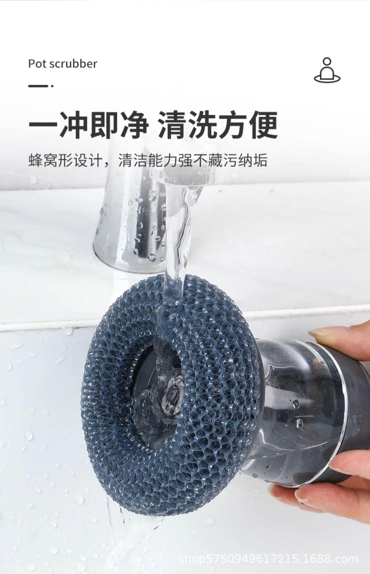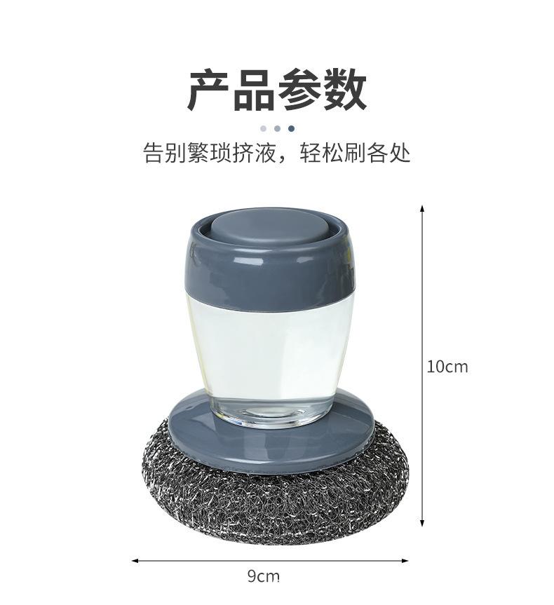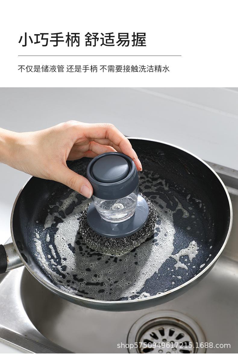 Fabricante de origen puede agregar detergente Bola de alambre de acero Cepillo para ollas tipo push Cocina Limpieza multifuncional Cepillo para ollas Hogar