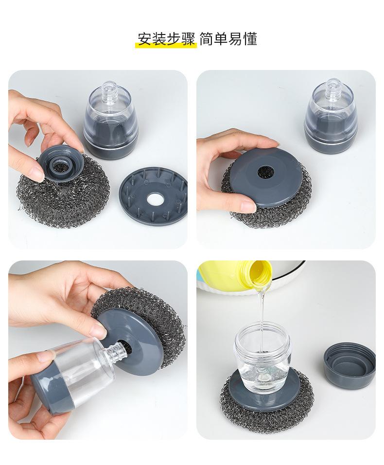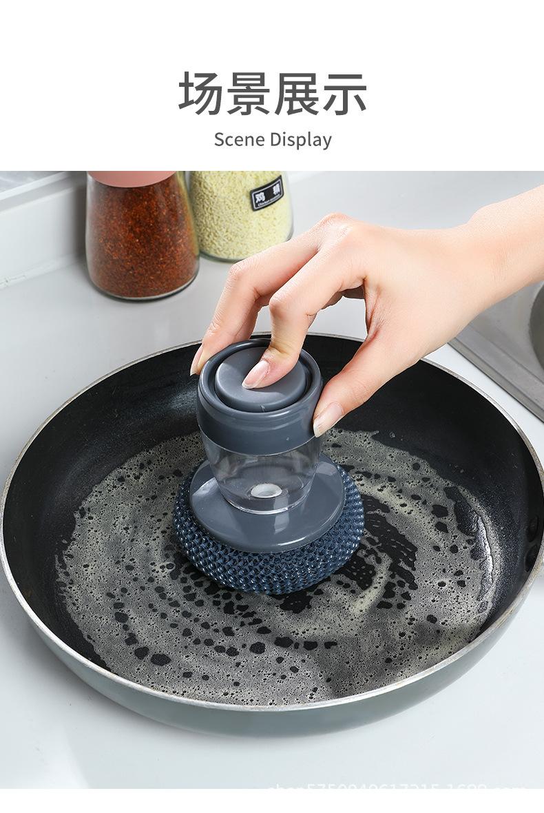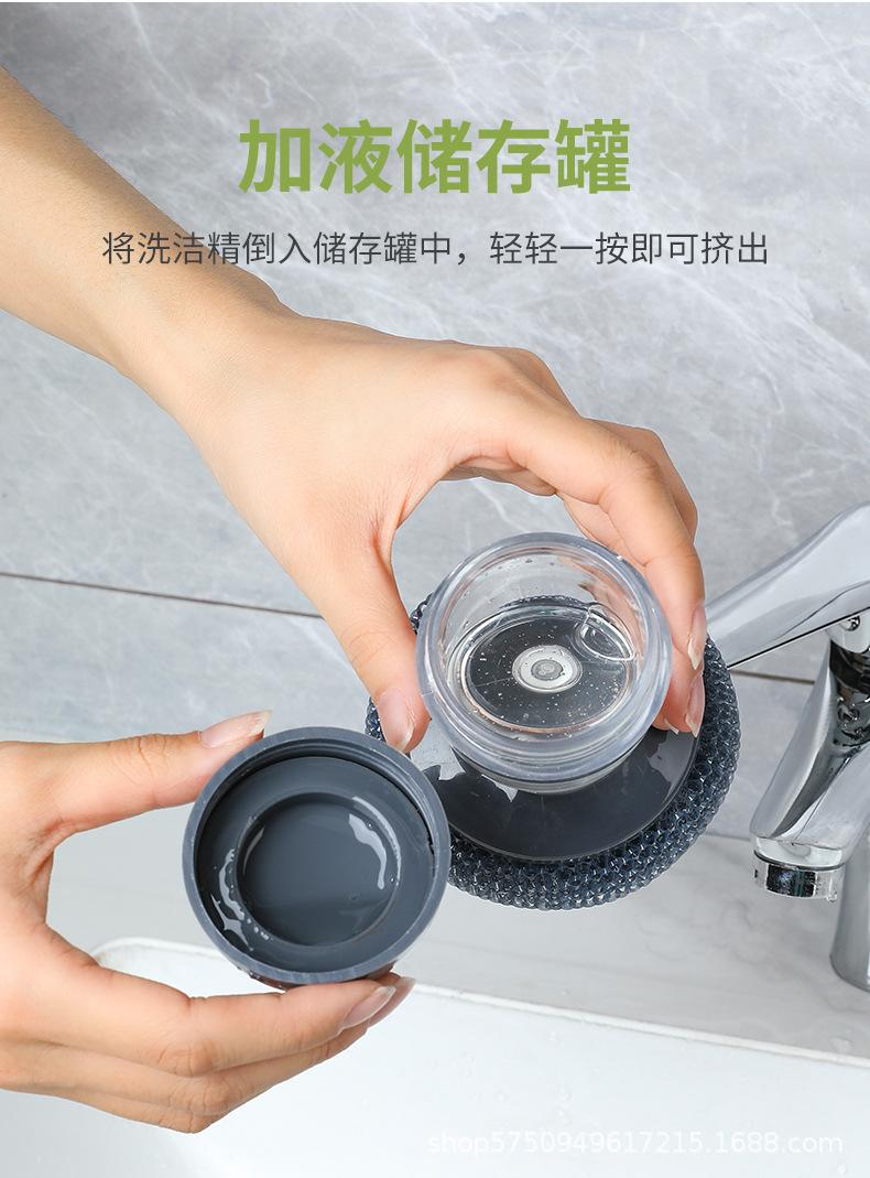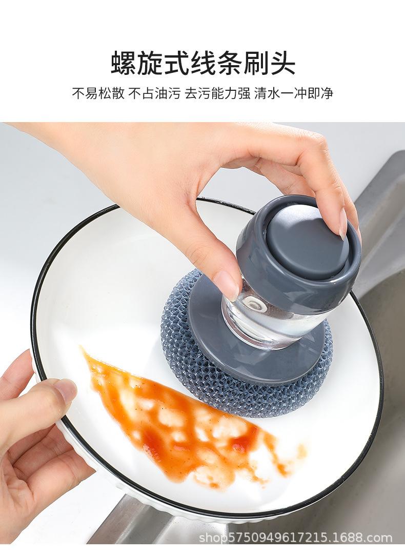Fabricante de origen puede agregar detergente Bola de alambre de acero Cepillo para ollas tipo push Cocina Limpieza multifuncional Cepillo para ollas Hogar