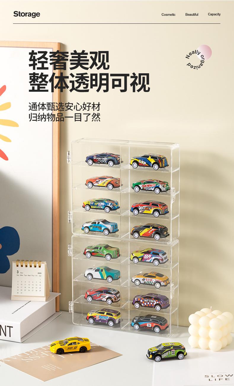 Fábrica En Stock 1:Caja de Almacenamiento para Modelos de Autos a Escala 64 Soporte de Exhibición Hot Wheels Compartimentado Transparente Juguete Espacio de Estacionamiento