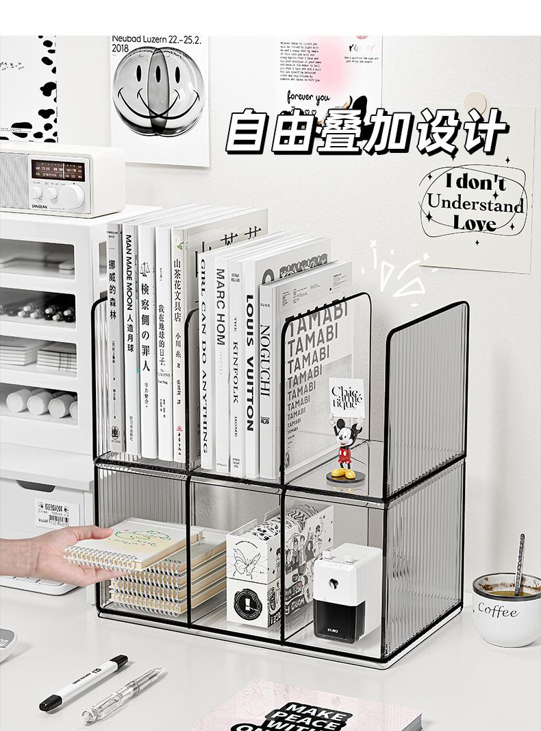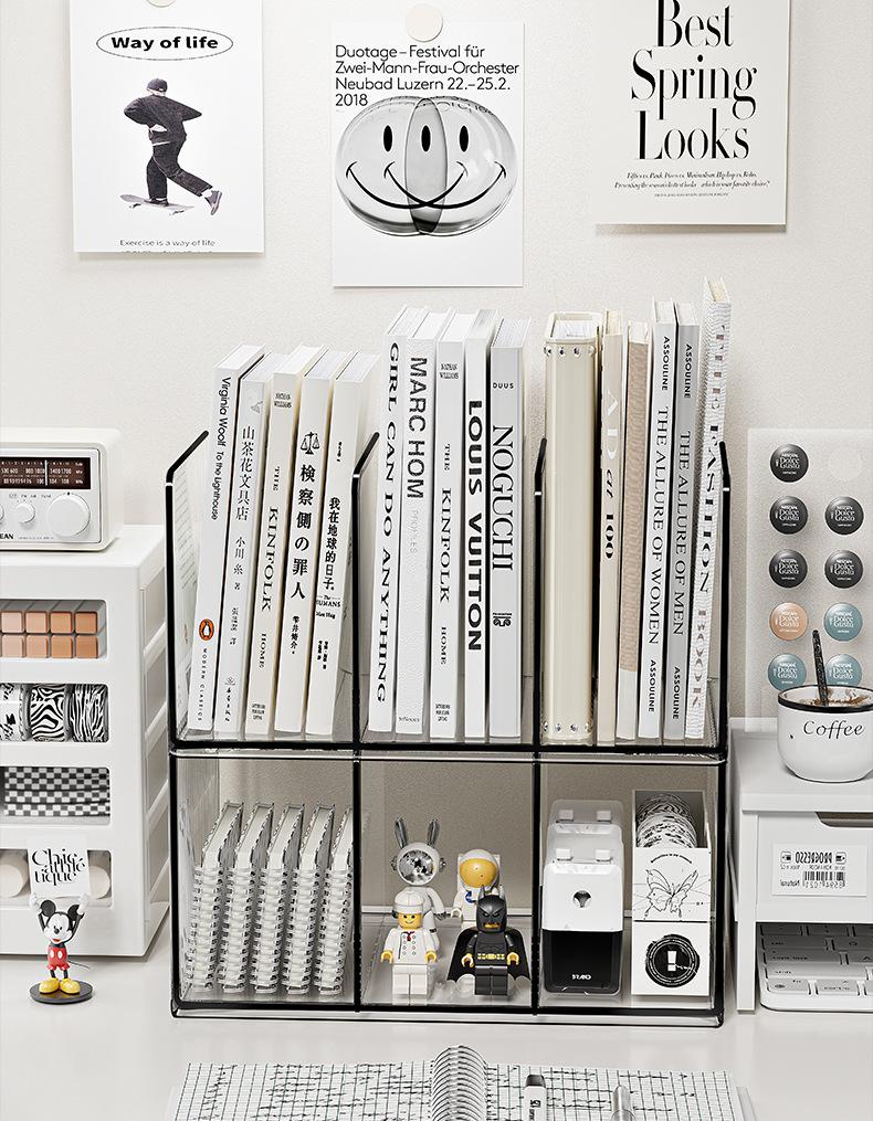 Soporte de Escritorio para Libros Escritorio Acrílico Transparente Porta Archivos Bolígrafos Estantería Oficina Estudiante Estante Almacenamiento Libros