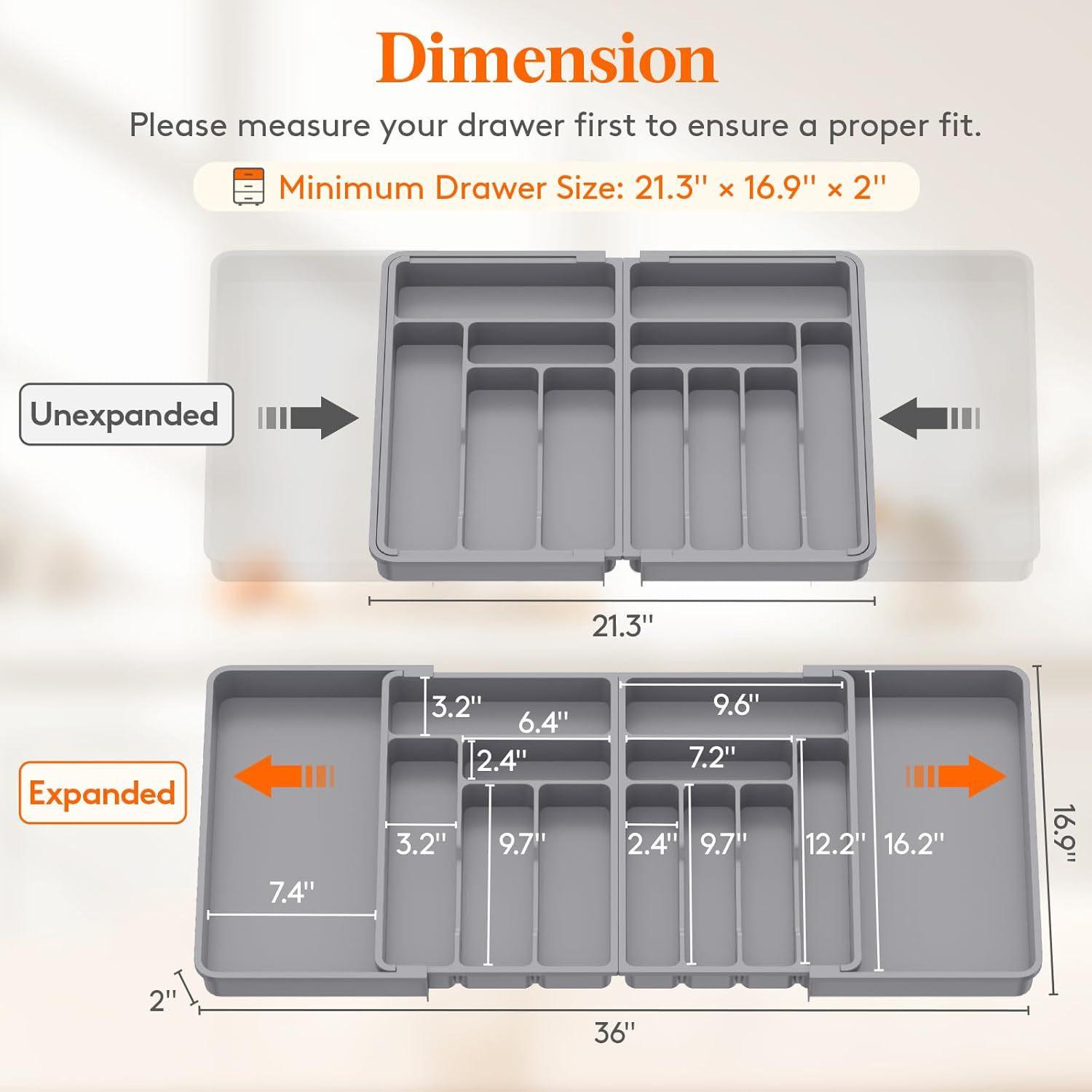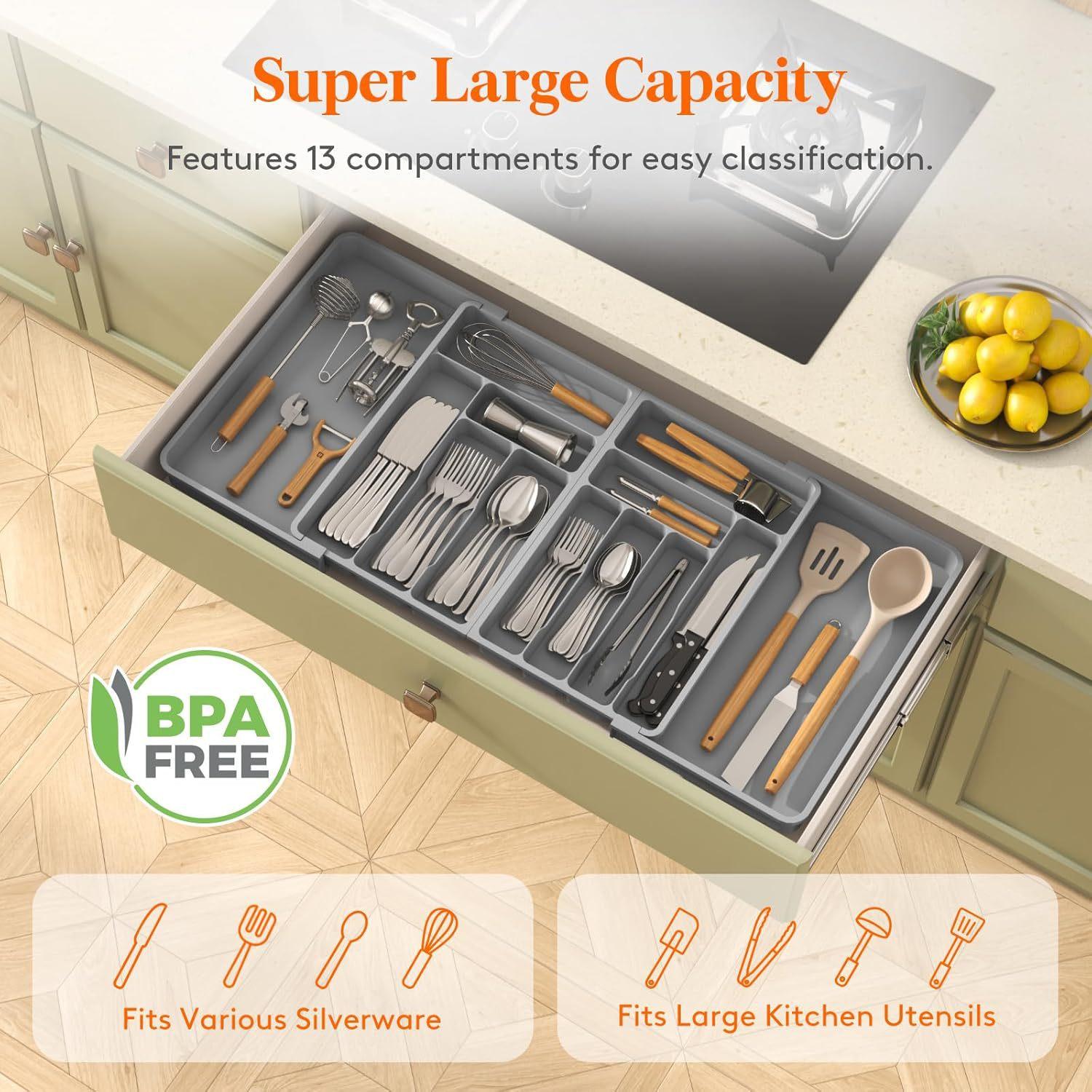 Caja de Almacenamiento de Vajilla para Cajón de Cocina Personalizada Grande Expandible de Plástico de Doble Cara Adecuada para Cuchara Tenedor Cuchillo
