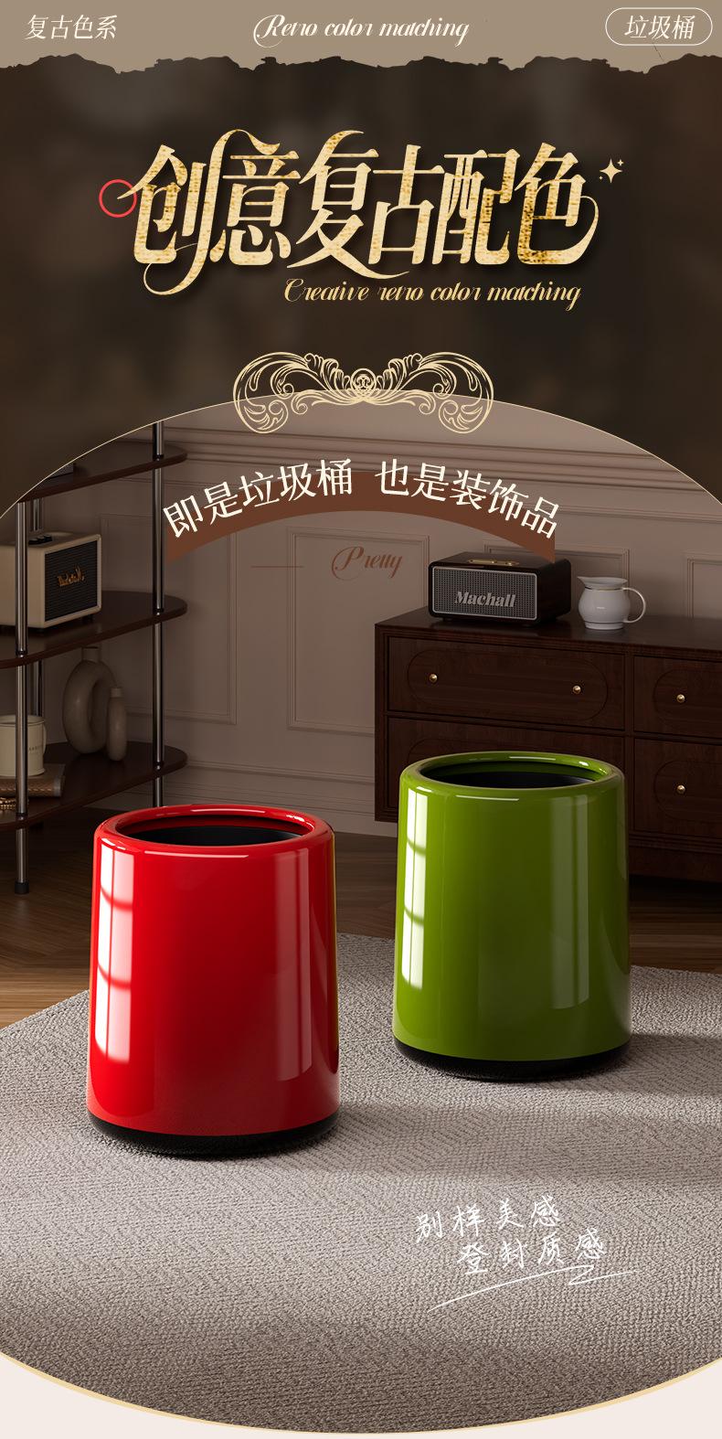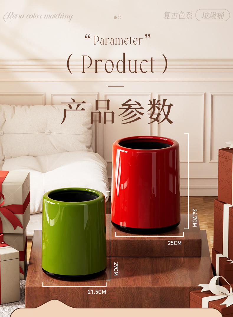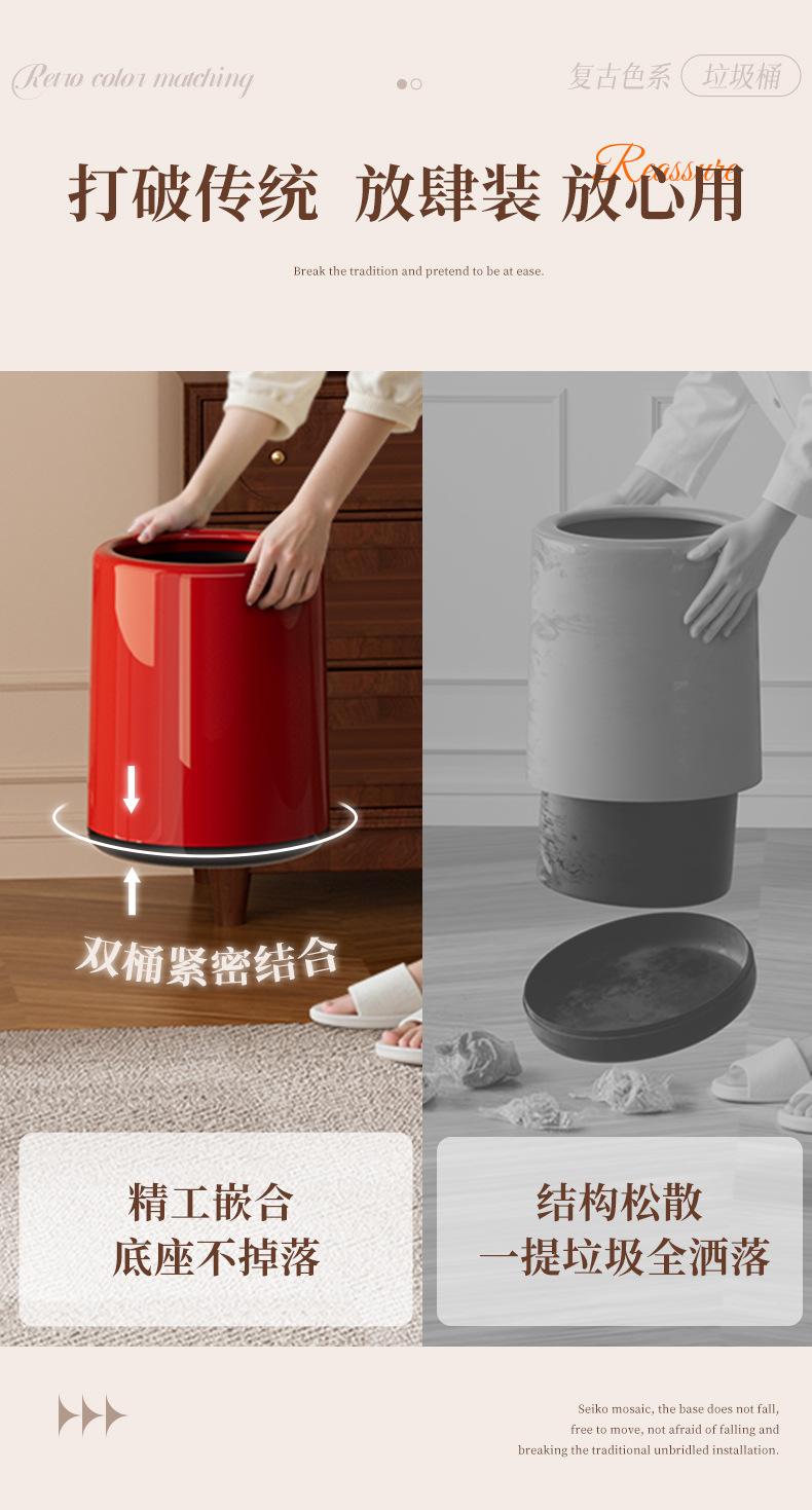 Bote de basura retro para el hogar, de alta gama, gran capacidad, sala de estar, dormitorio, baño, bote de basura de doble capa, estilo de lujo ligero
