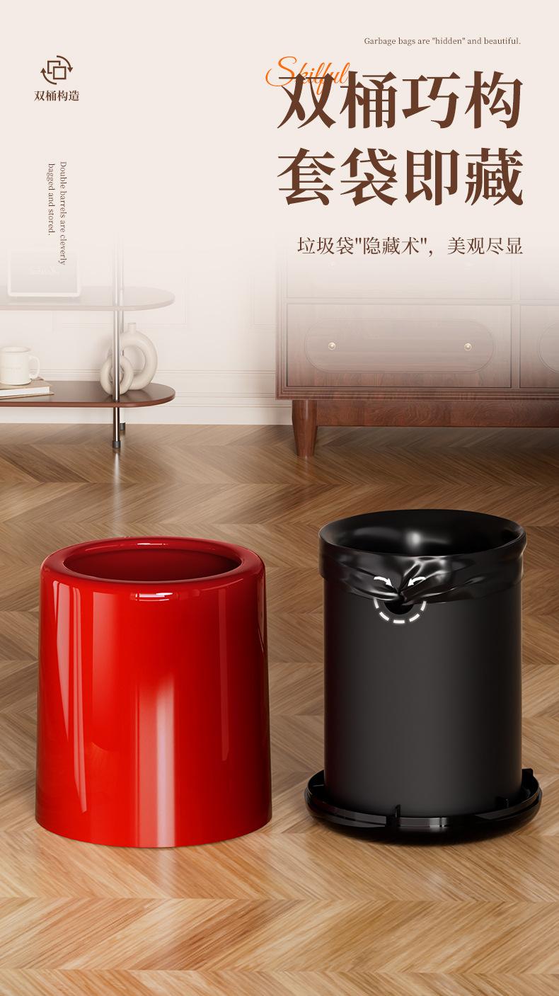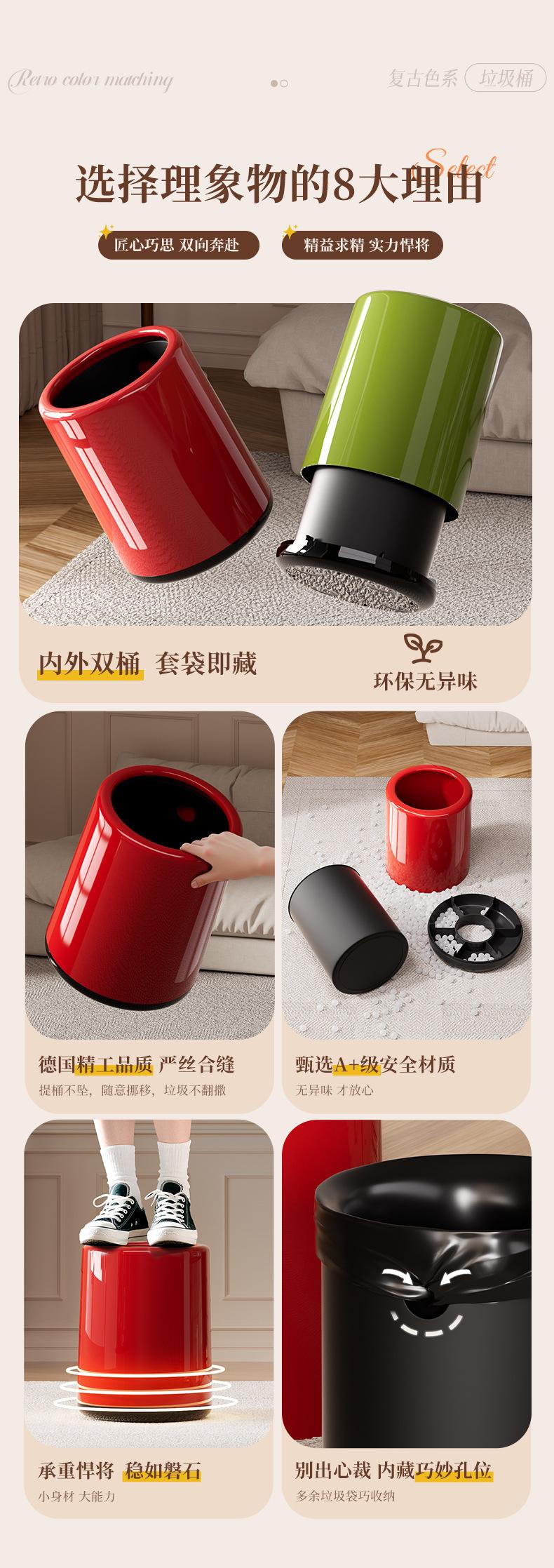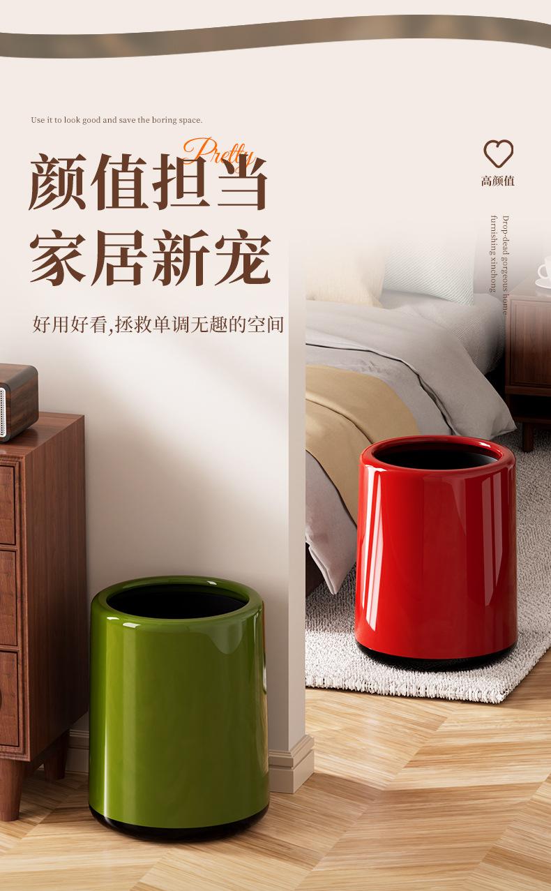 Bote de basura retro para el hogar, de alta gama, gran capacidad, sala de estar, dormitorio, baño, bote de basura de doble capa, estilo de lujo ligero