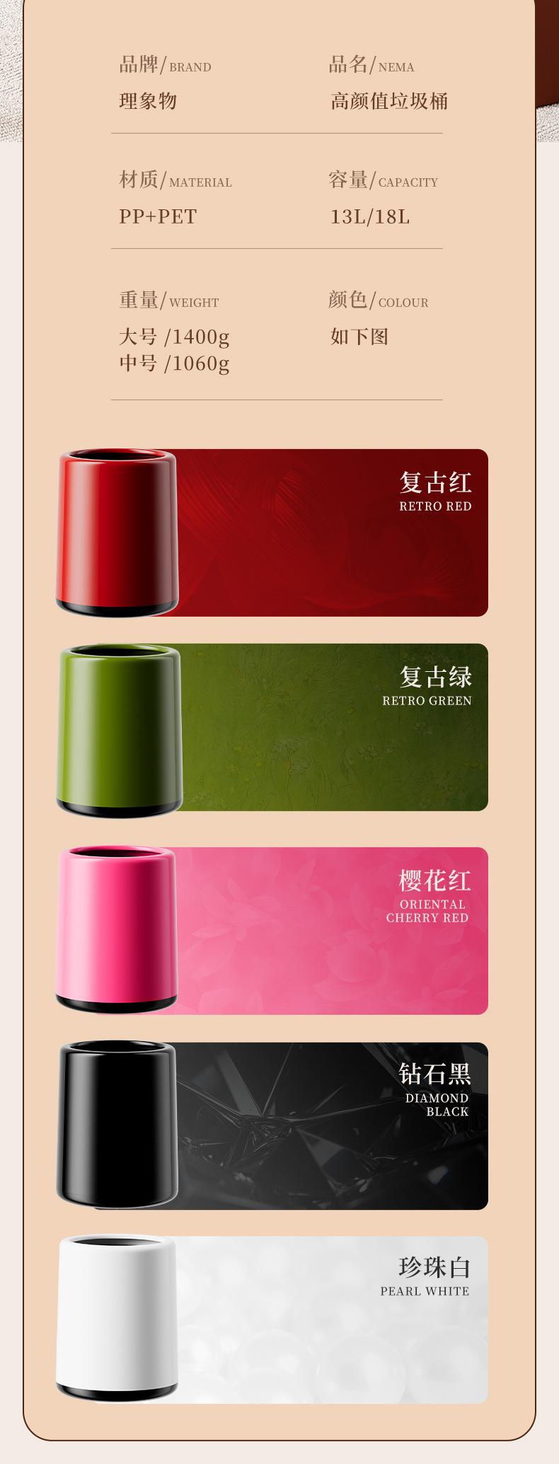13L Diamond Black-Double Layer Trash Can, 13L Pearl White-Double Layer Trash Can, 13L Retro Green-Double Layer...