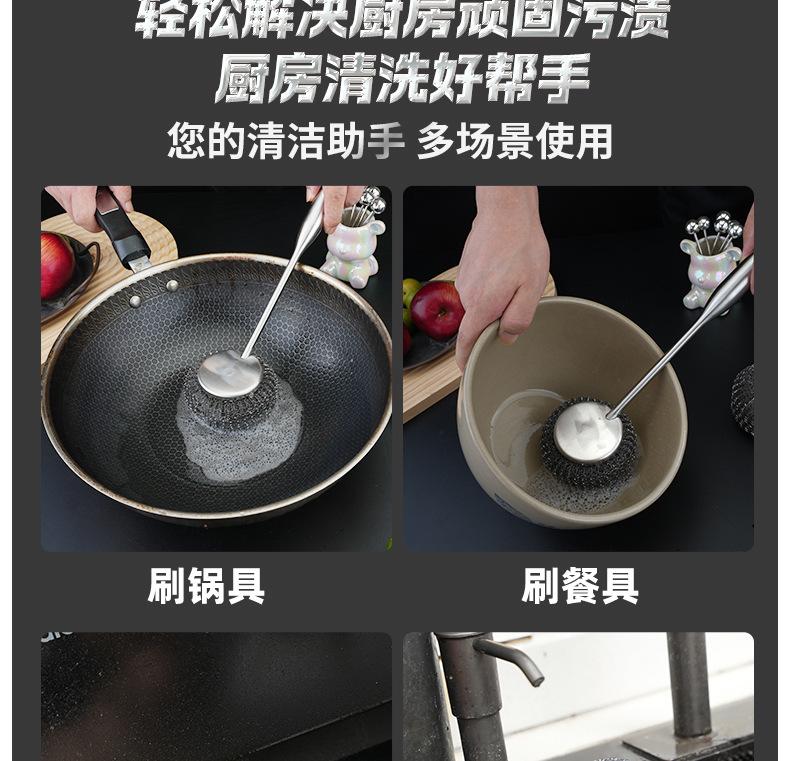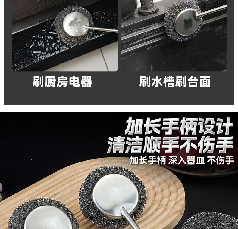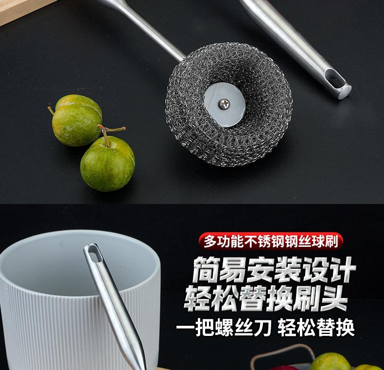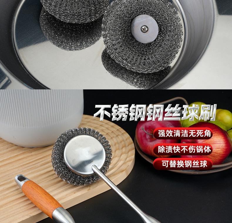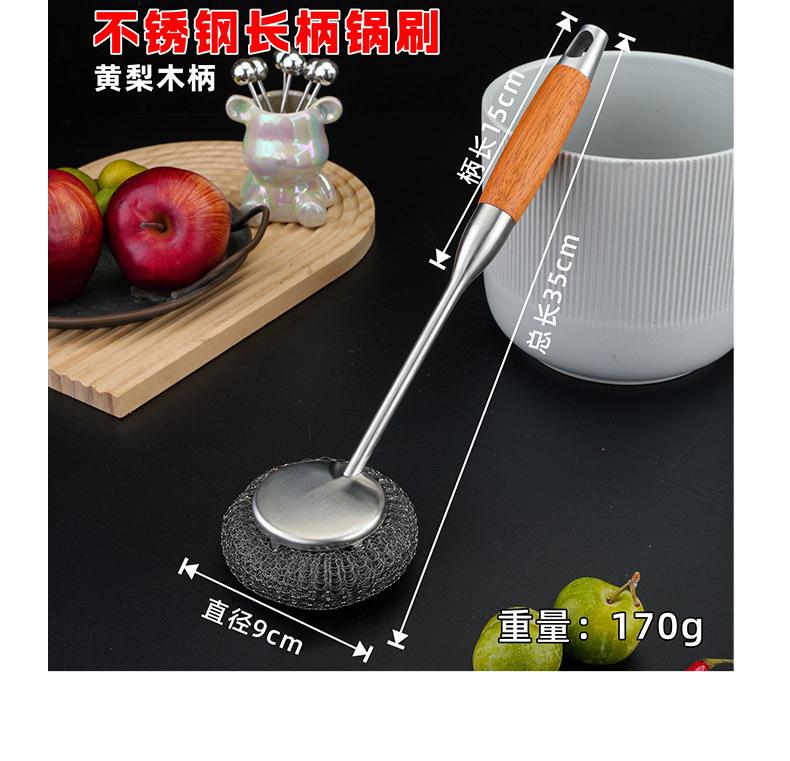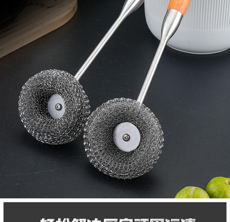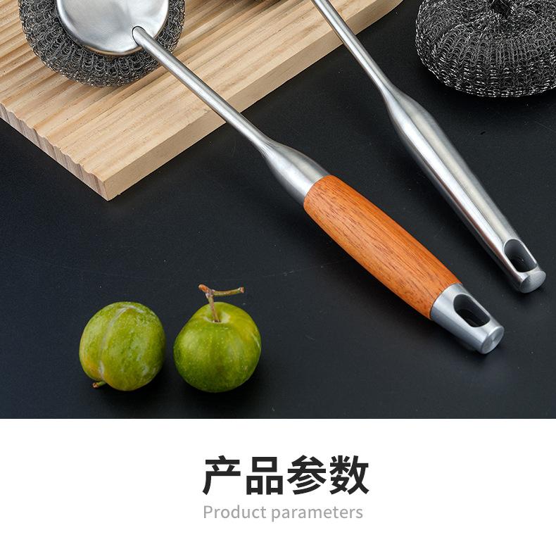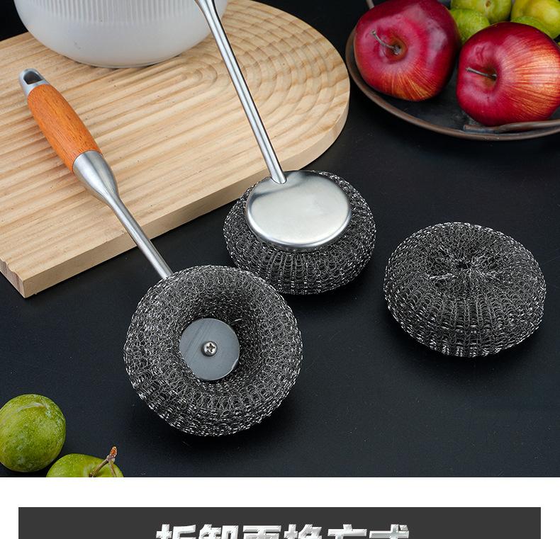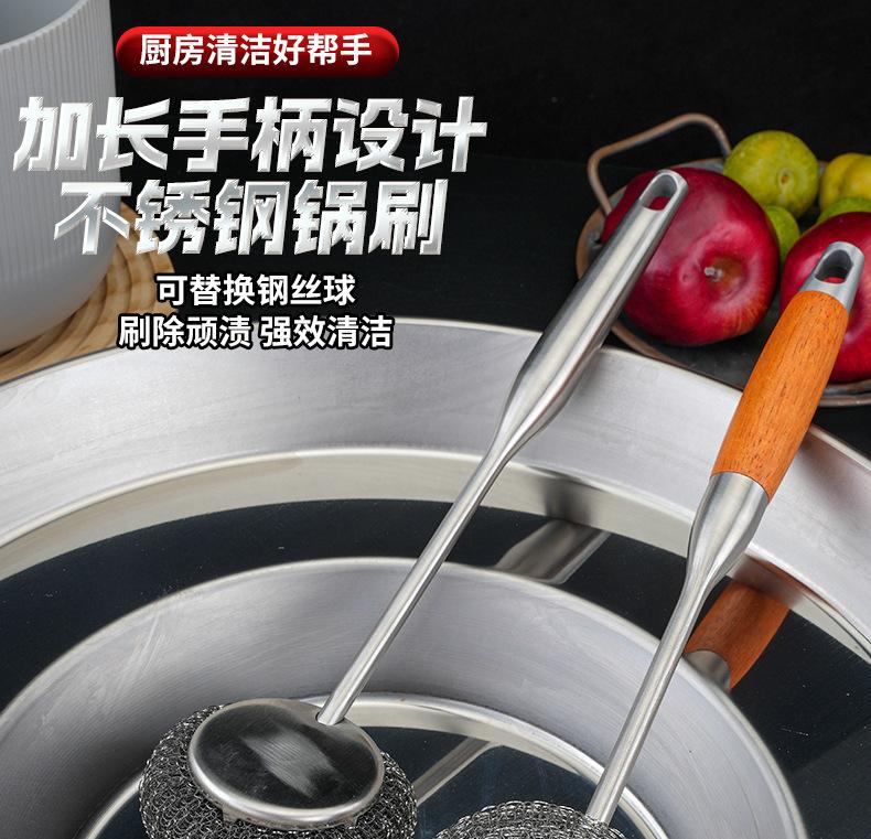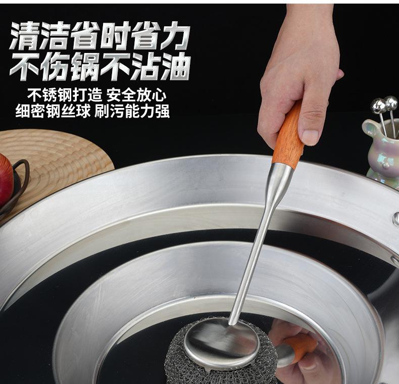 Compra Cepillo para Olla de Acero Inoxidable para el Hogar Mango Largo Engrosado Mango de Madera Cepillo para Fregar Cepillo de Limpieza de Cocina Cepillo de Lana de Acero para Lavar Platos Nuevo al por mayor en Joom.pro