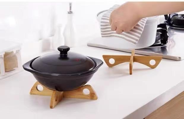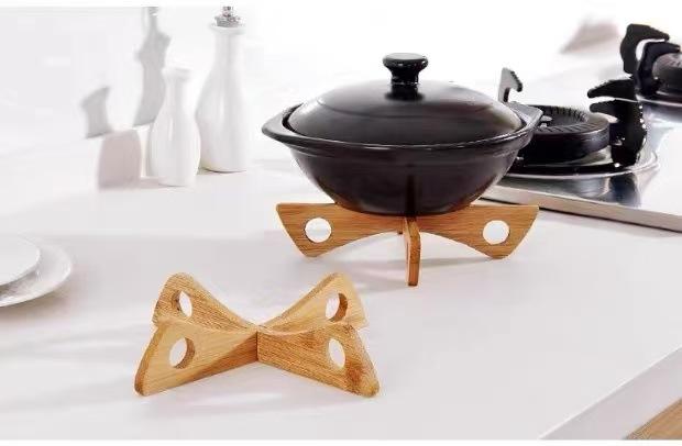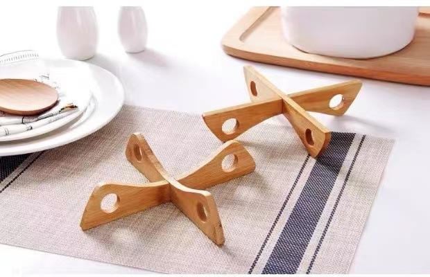 Soporte para Ollas de Bambú para el Hogar Soporte Cruzado para Ollas Almohadilla Aislante de Calor Almohadilla para Tazón Escurridor de Tazones Fondo Largo de Bambú para Ollas