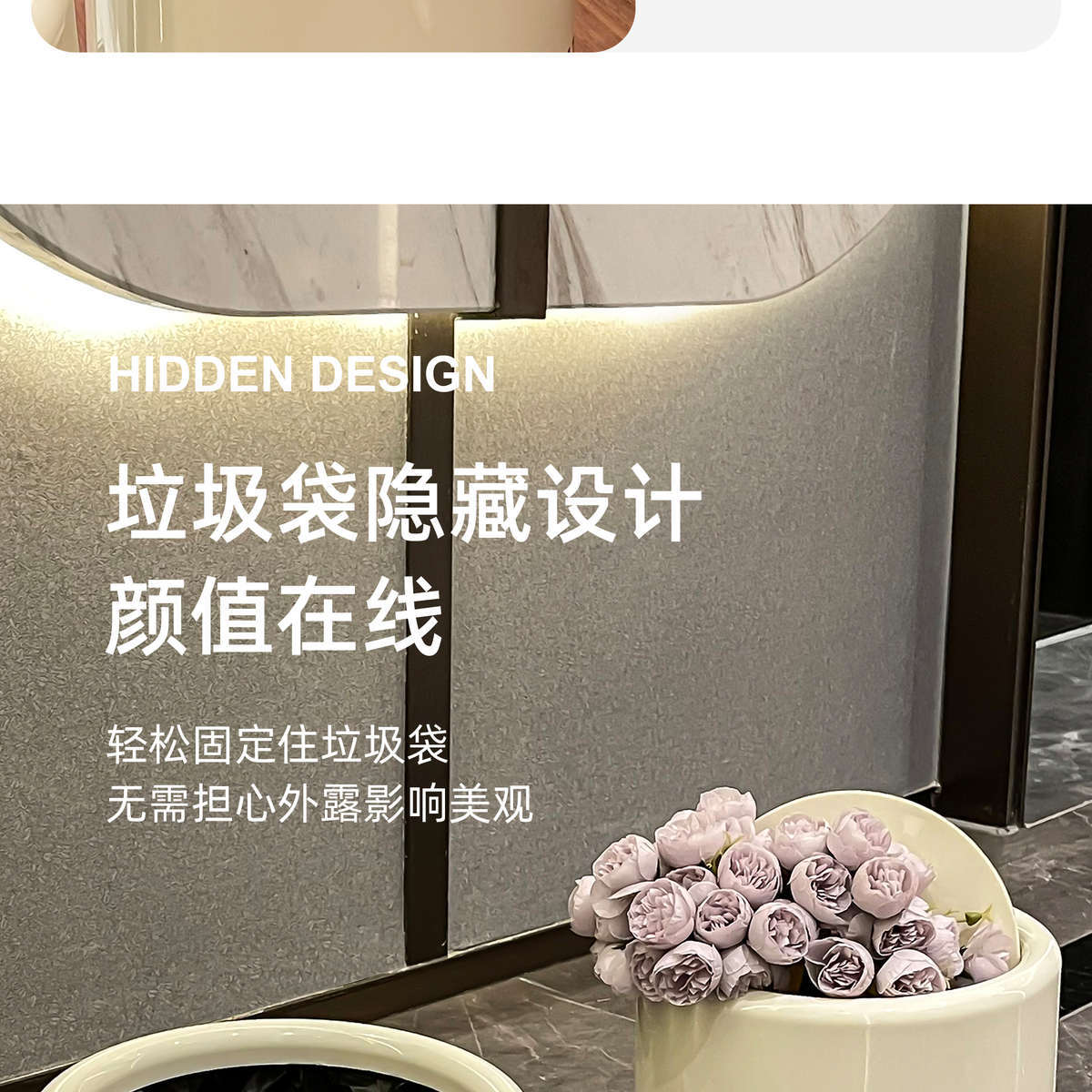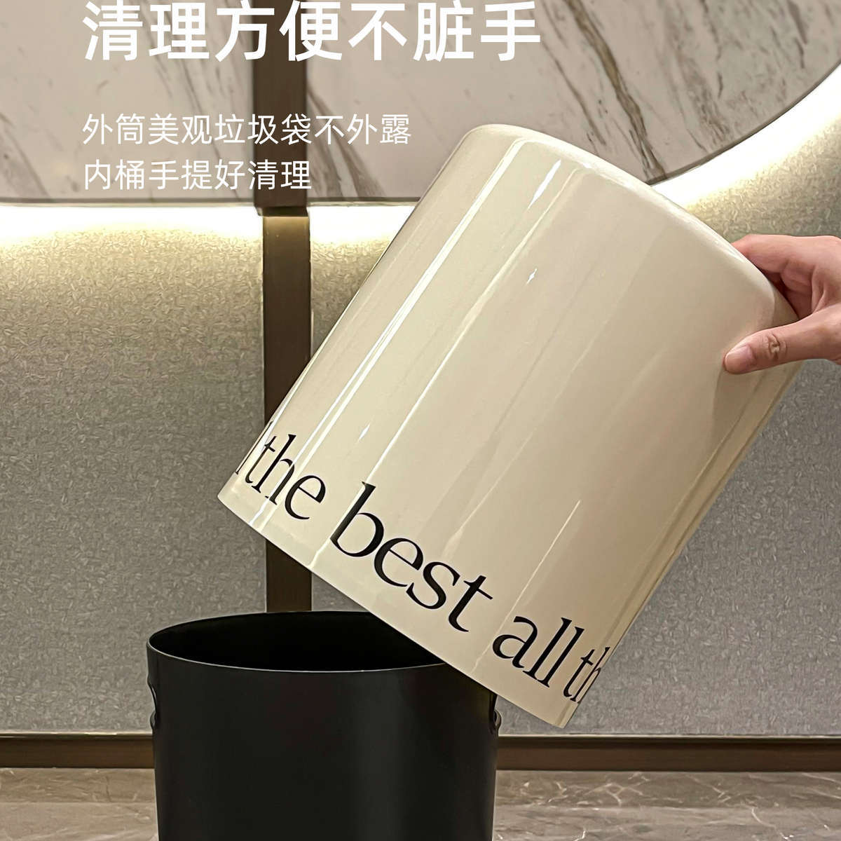 Bote de Basura de Aspecto Elevado para Cocina Doméstica, Lujo Accesible Creativo, Gran Capacidad, Baño, Inodoro, Dormitorio, Sala de Estar, Cesto de Papel con Tapa