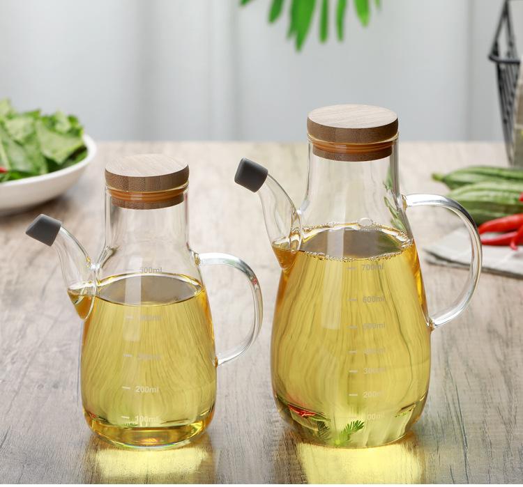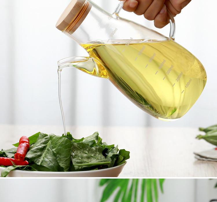 Tarro de Condimentos de Vidrio para Cocina Doméstica Transfronterizo Botella de Aceite Olecranon a Prueba de Fugas con Escala Tarro de Aceite de Vidrio de Alto Borosilicato