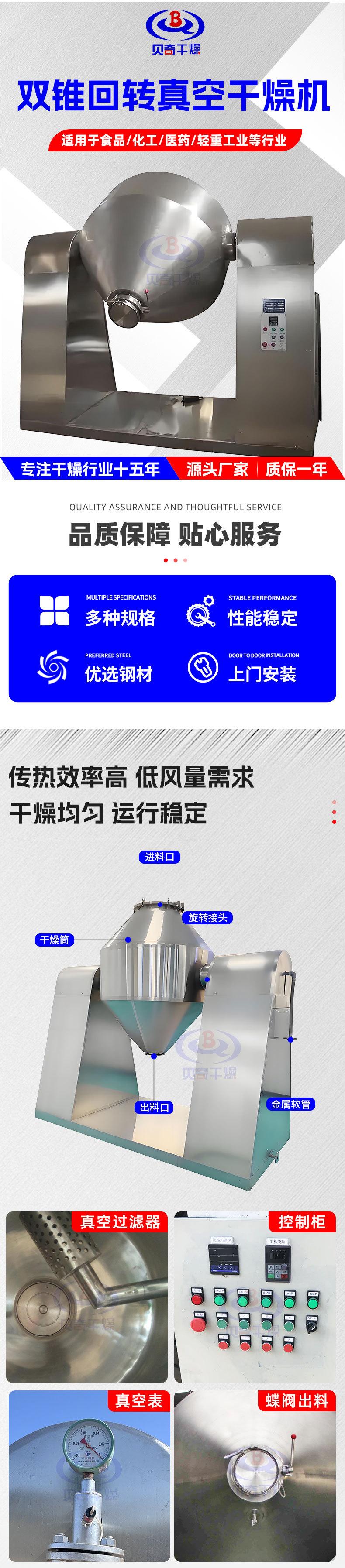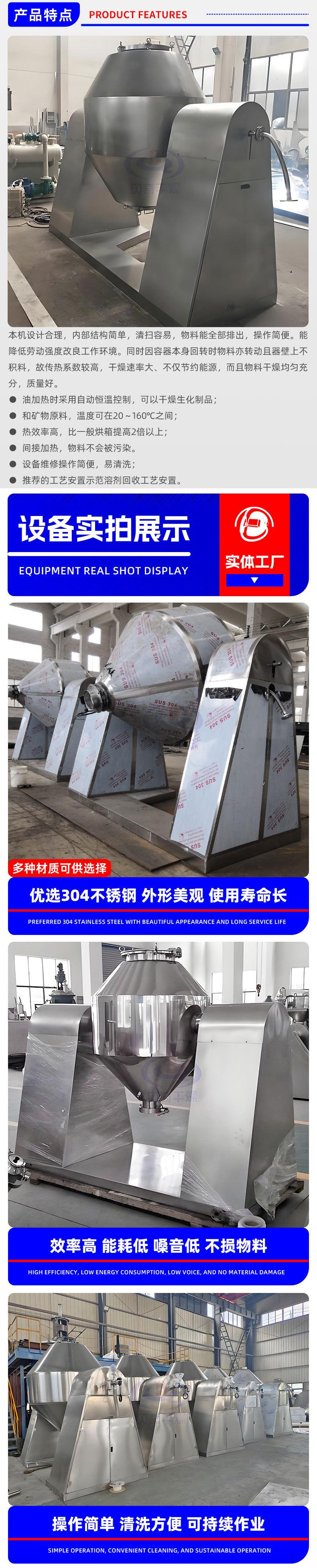 Secador de dióxido de titanio Secador rotatorio de vacío de doble cono grande Material en polvo secador de vacío de doble cono