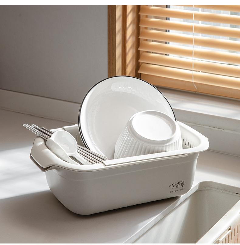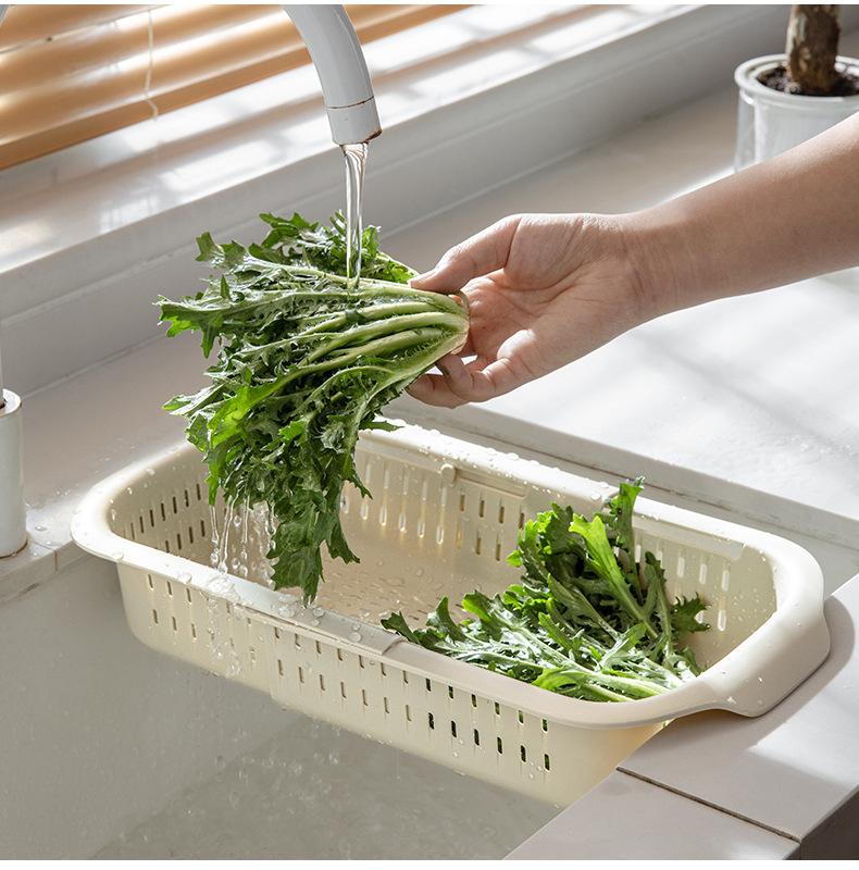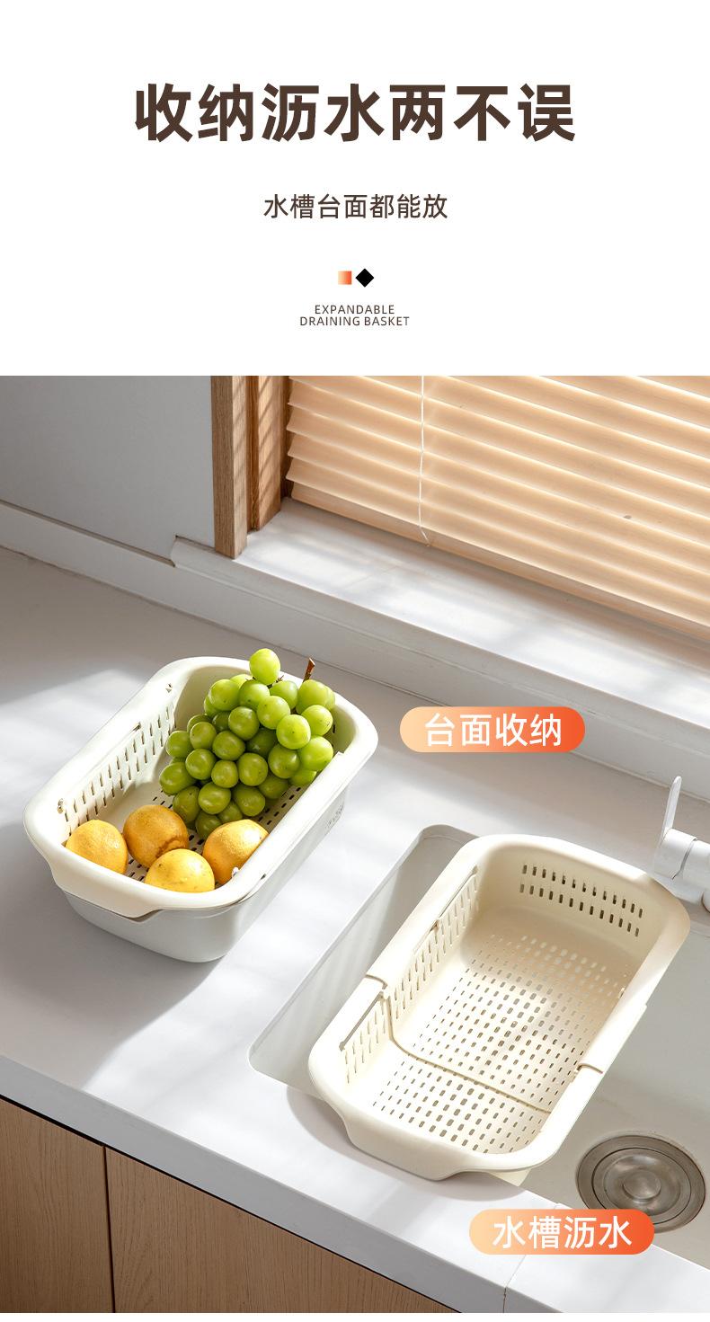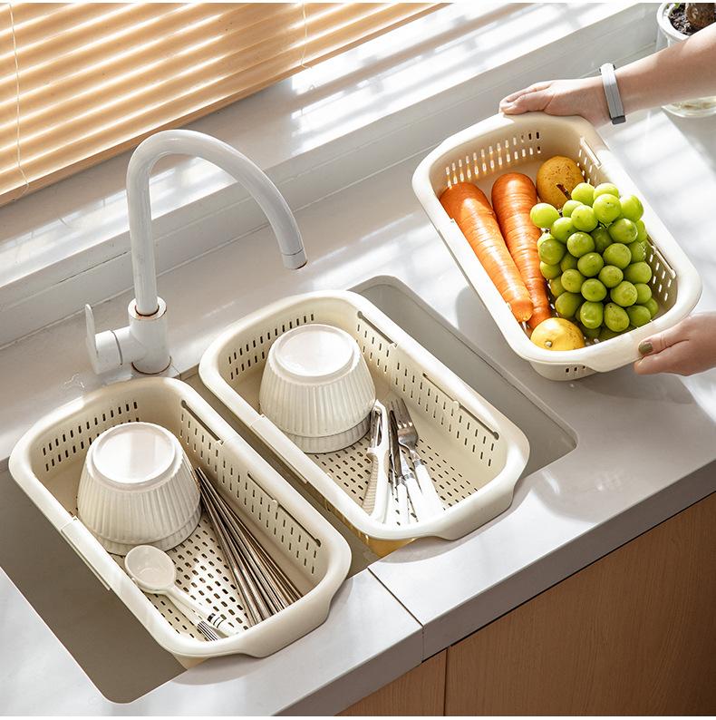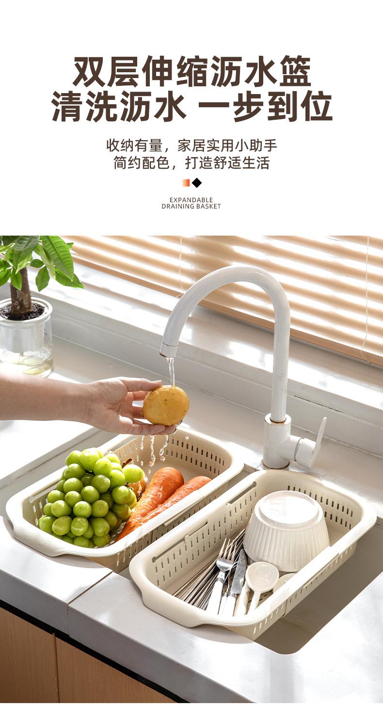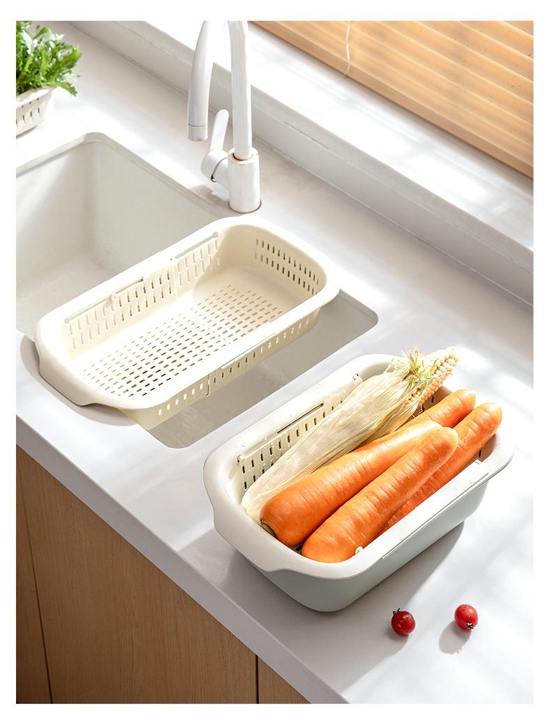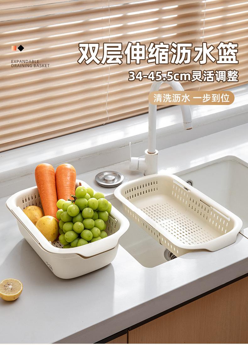 Cesta de drenaje retráctil de doble capa cesta de verduras de cocina escurridor de lavabo plato de frutas para sala de estar doméstica cesta de drenaje para fregadero