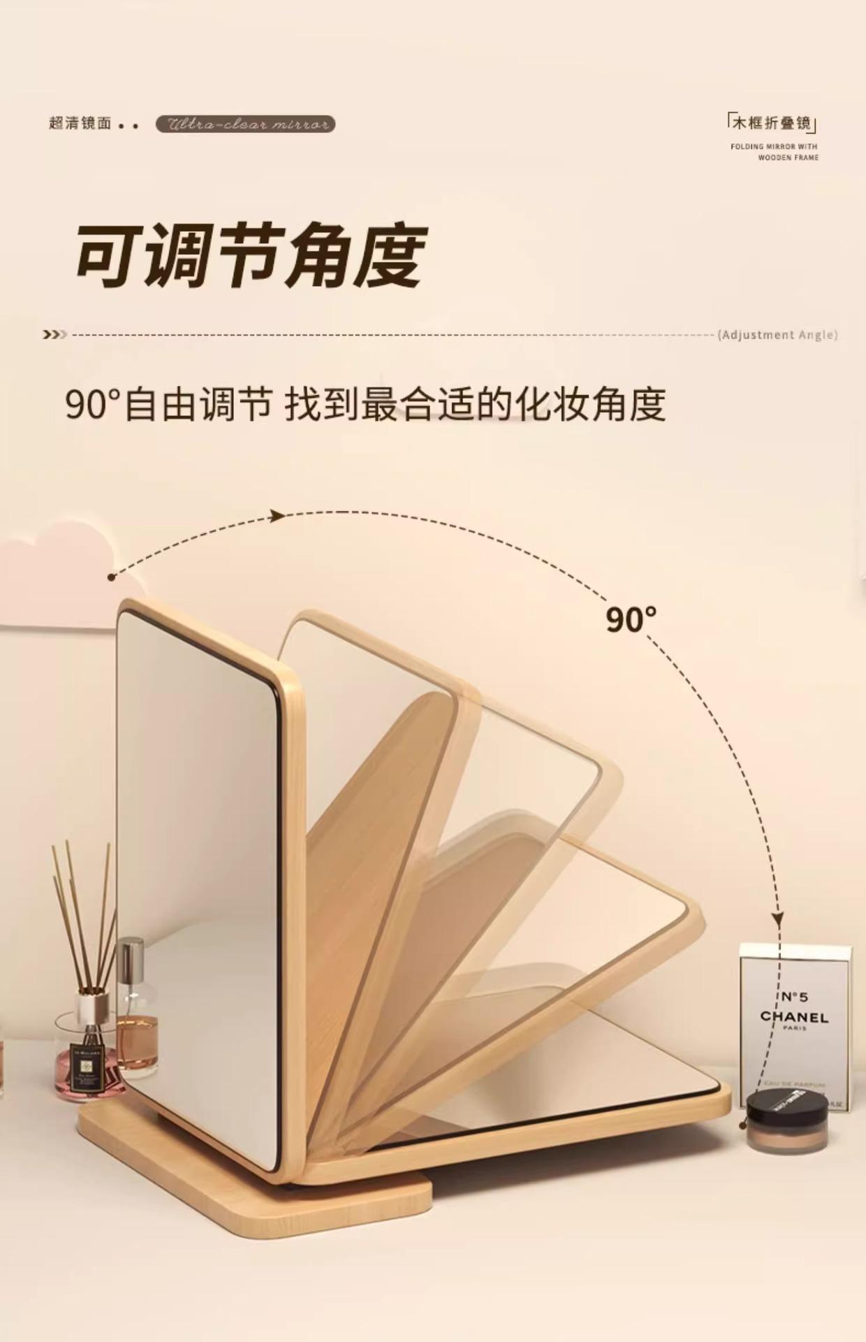 Espejo Espejo de Maquillaje Hogar Escritorio de Escritorio Espejo de Maquillaje de Madera de Alta Gama Tocador Espejo Grande Dormitorio Plegable