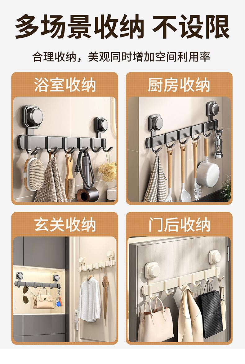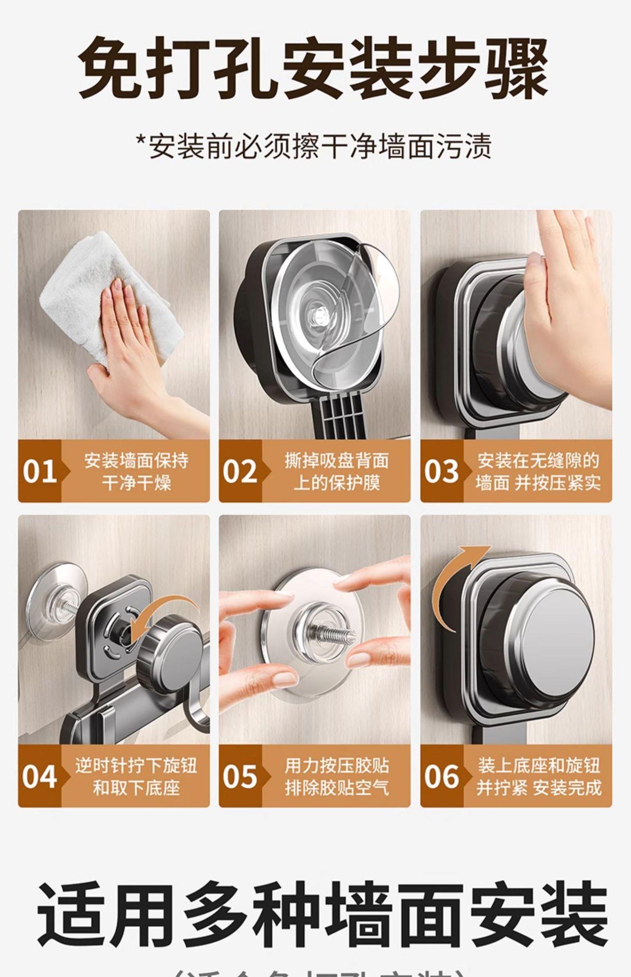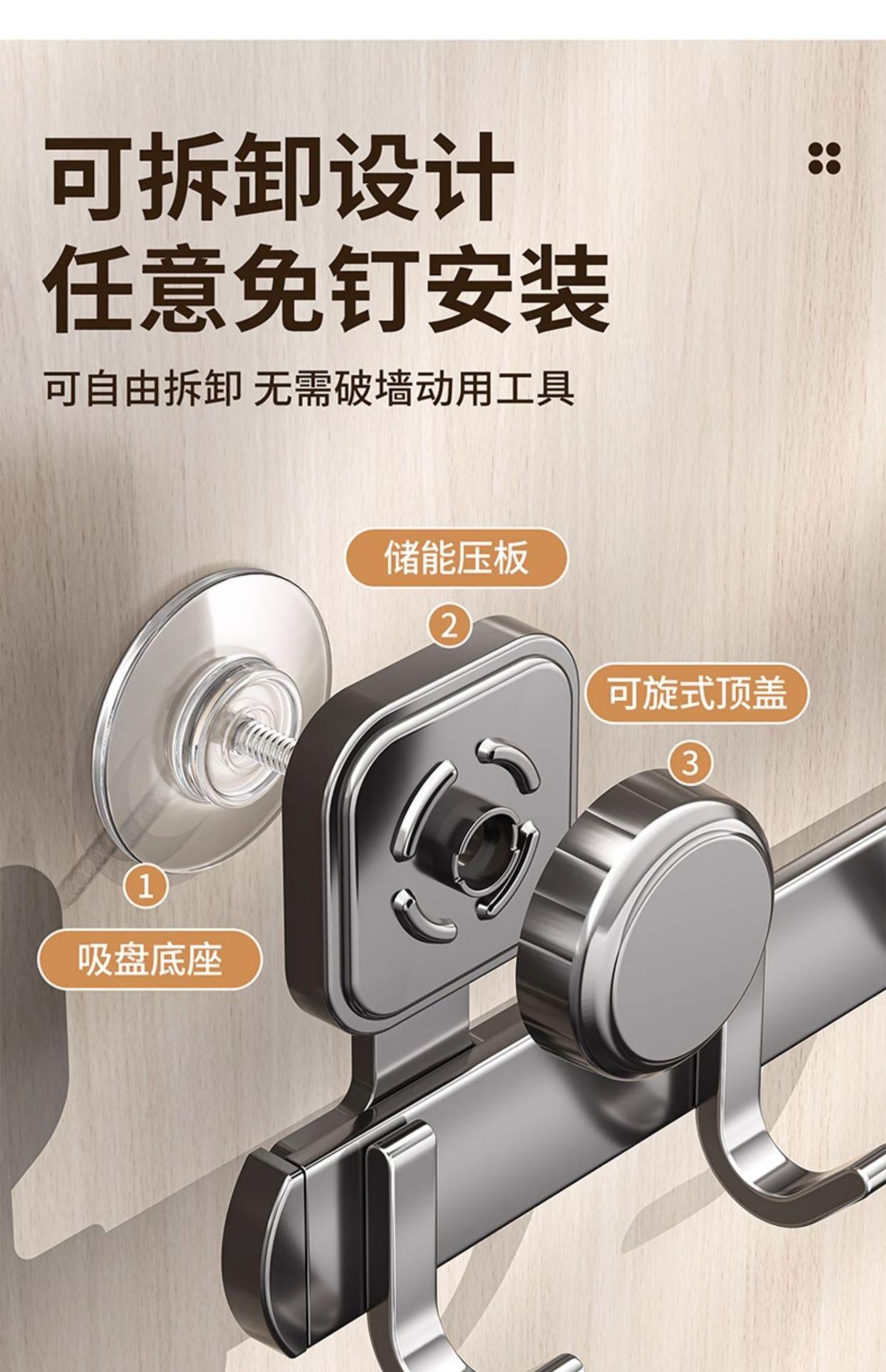Gunmetal-Suction Cup 3 Hooks [Strong Adsorption/Won't Fall Off After Long Use], Gunmetal Gray-Suction Cup 4 Ho...