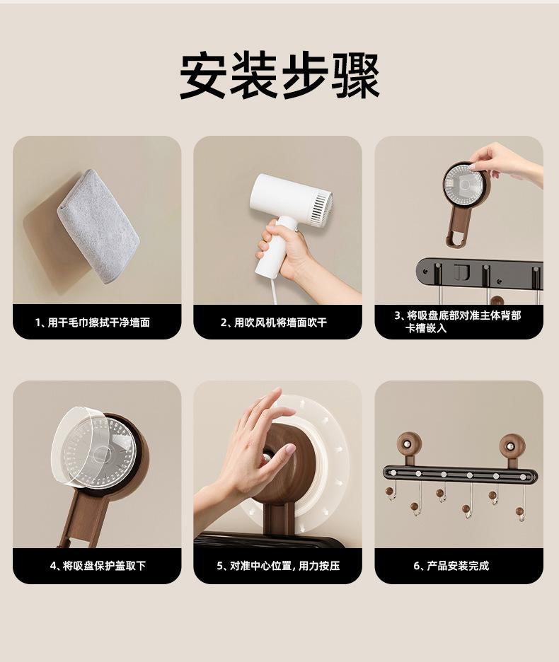Walnut grain suction cup hook 5 hooks, Walnut grain suction cup hook 6 hooks, Walnut grain suction cup hook 7 hooks