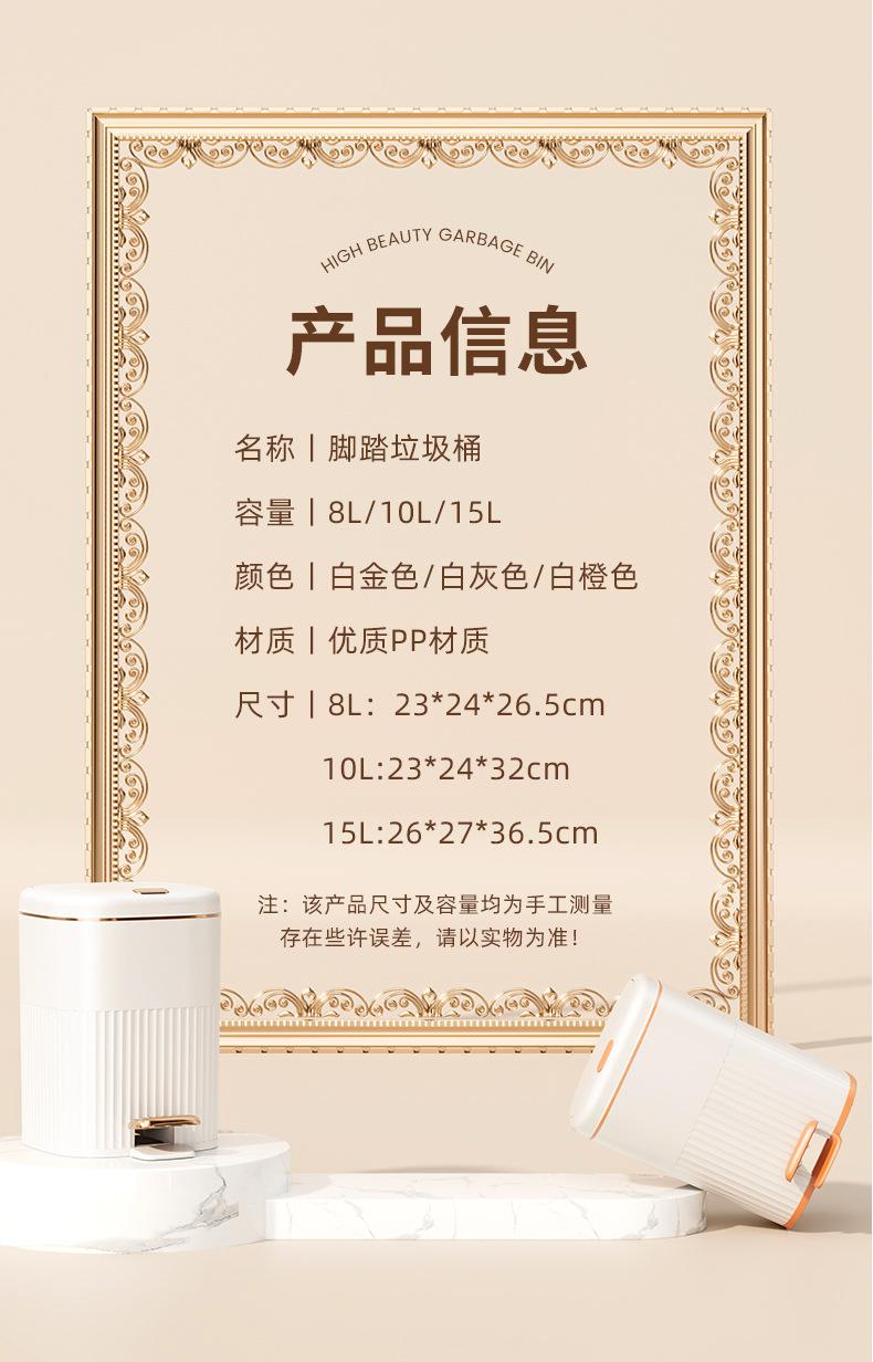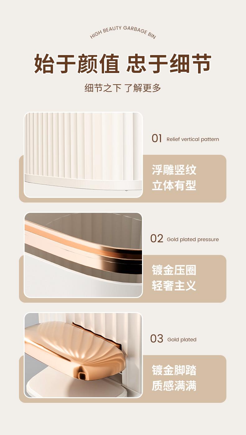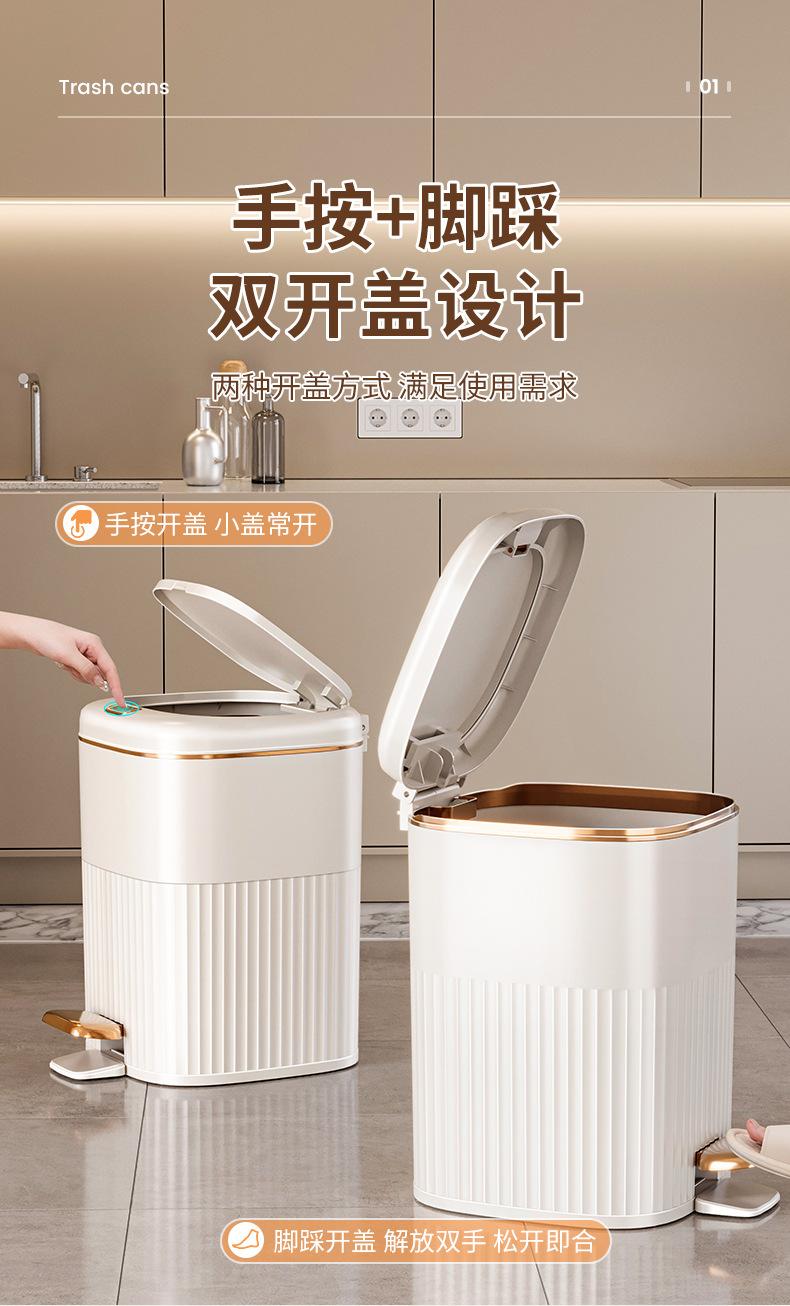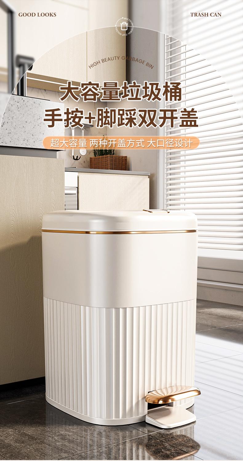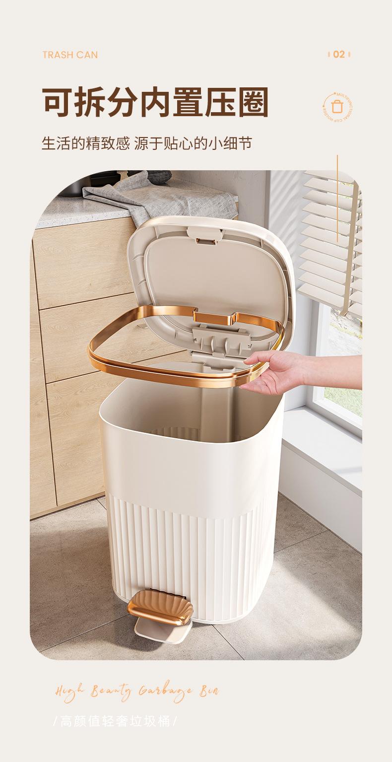 Bote de Basura para Baño de Casa con Tapa, Estilo Nuevo, Lujo Ligero, Adecuado para Dormitorio y Sala de Estar, Bote de Basura Presionable, Se Puede Pisar
