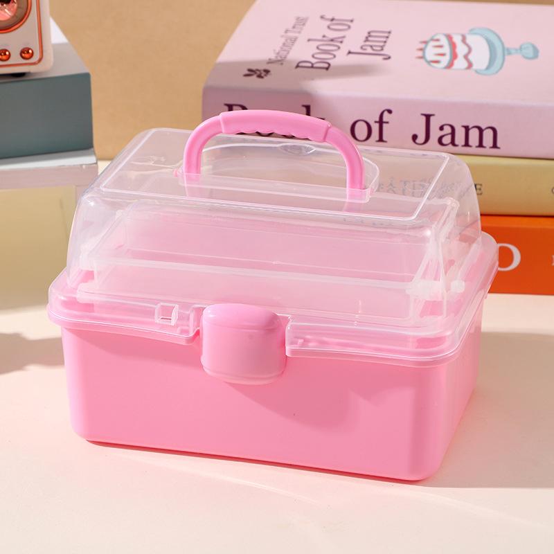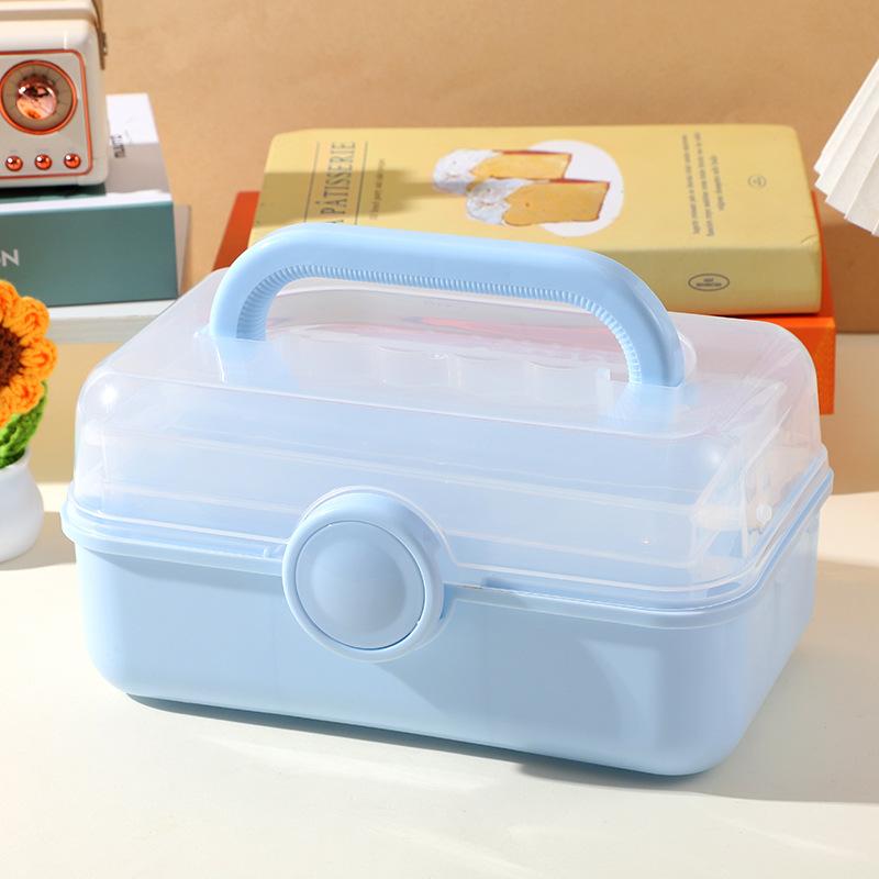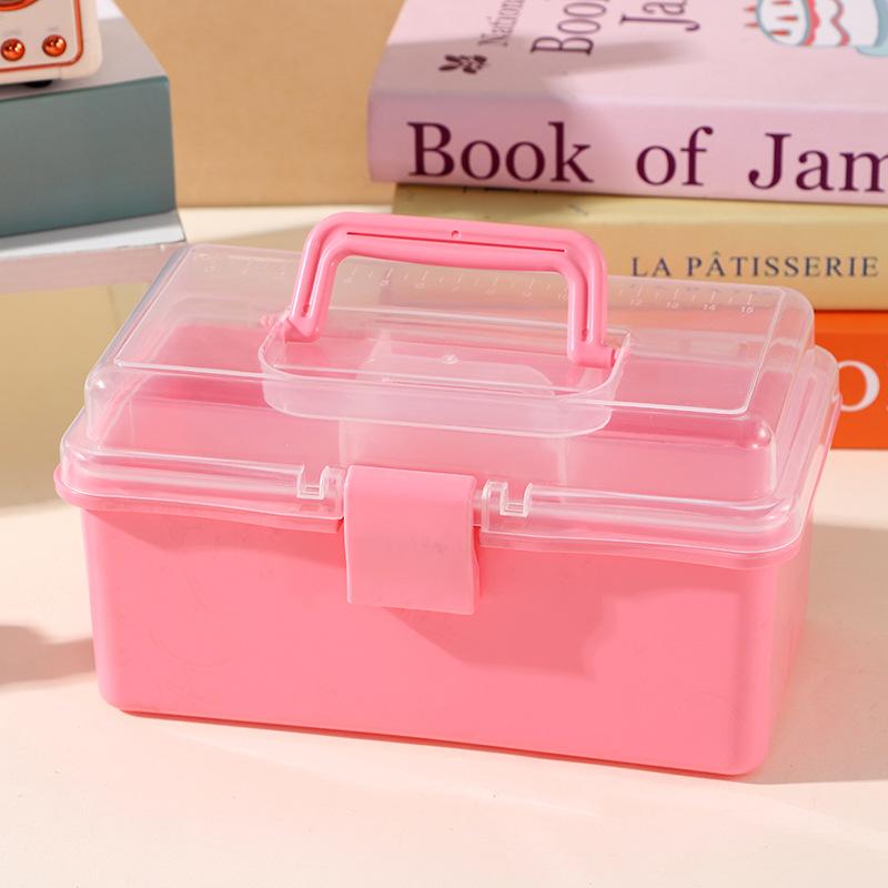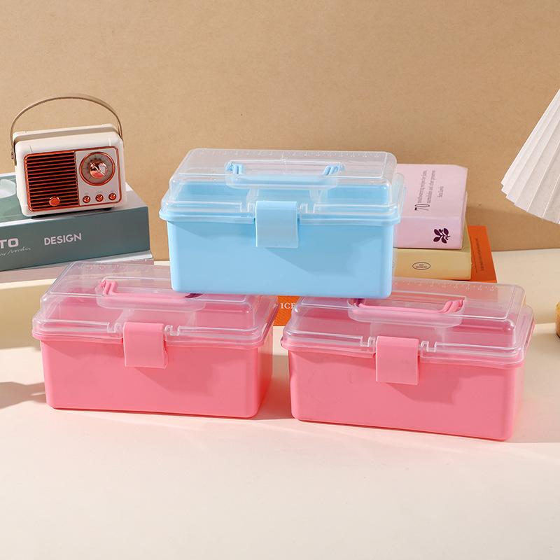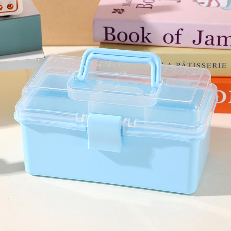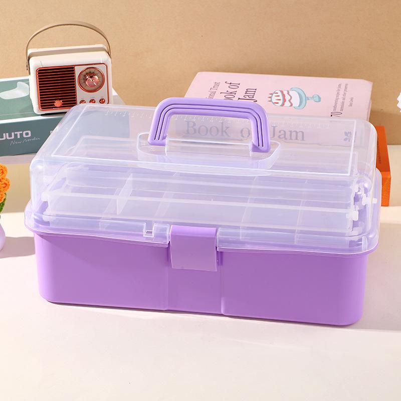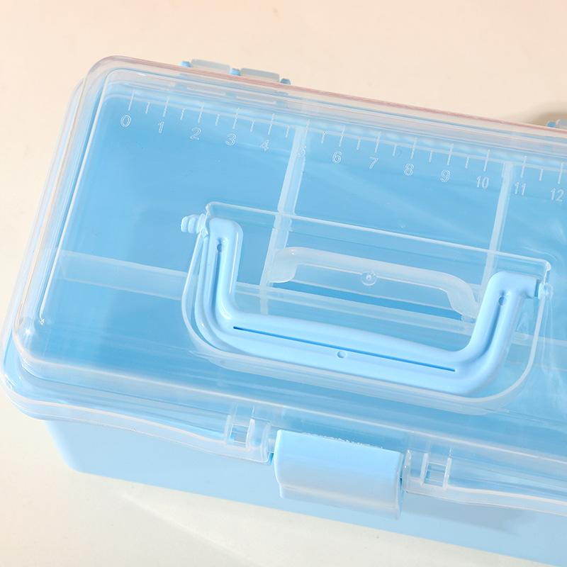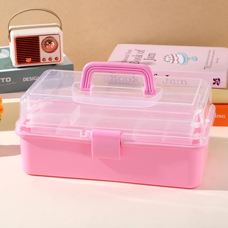Nueva Caja de Almacenamiento Transparente de Mano Caja de Papelería para Herramientas de Arte de Estudiante Plegable de Tres Capas Caja de Herramientas de Gran Capacidad