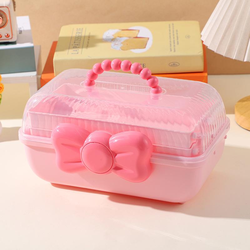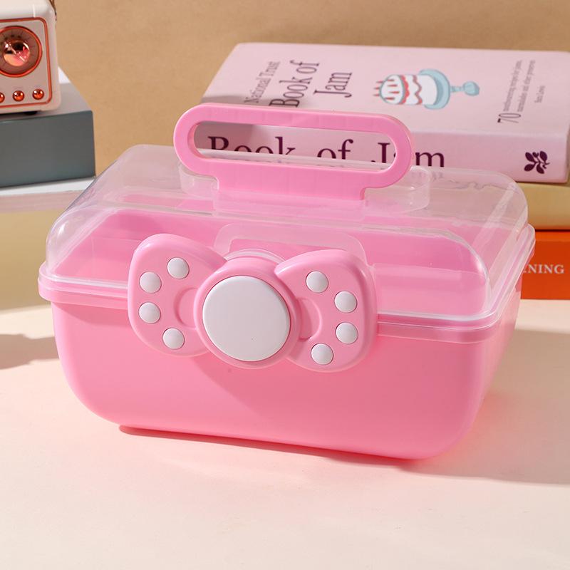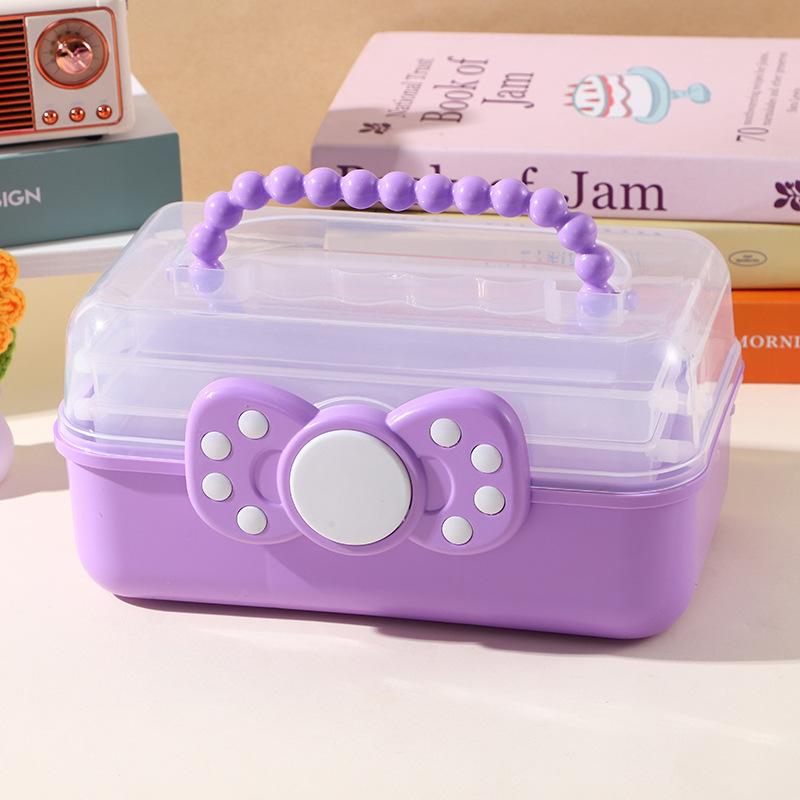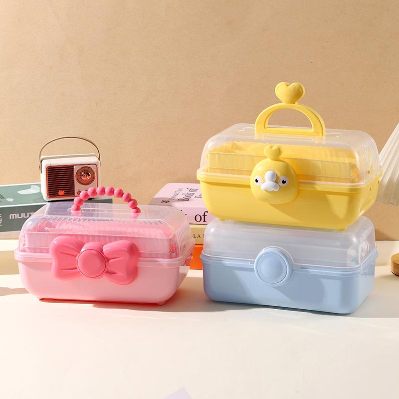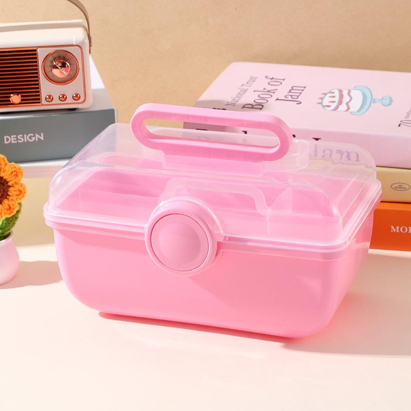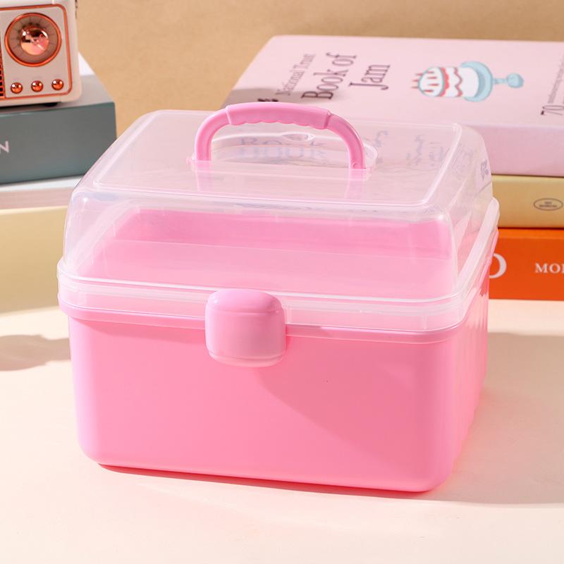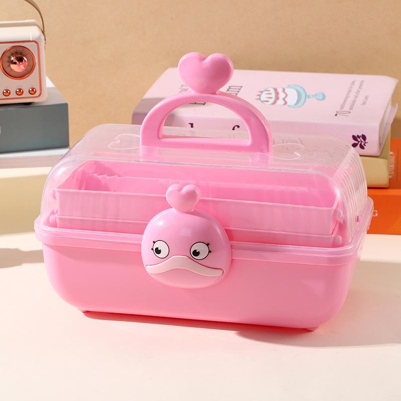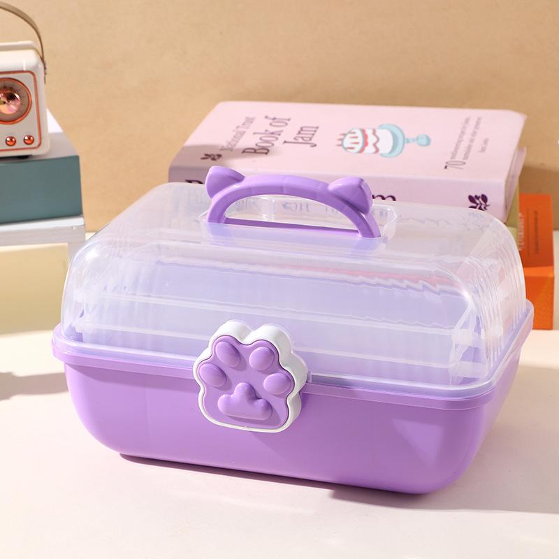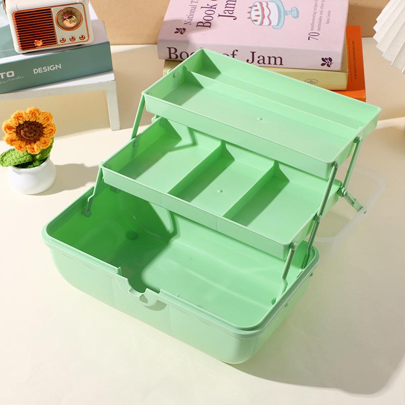 Nueva Caja de Almacenamiento Transparente de Mano Caja de Papelería para Herramientas de Arte de Estudiante Plegable de Tres Capas Caja de Herramientas de Gran Capacidad