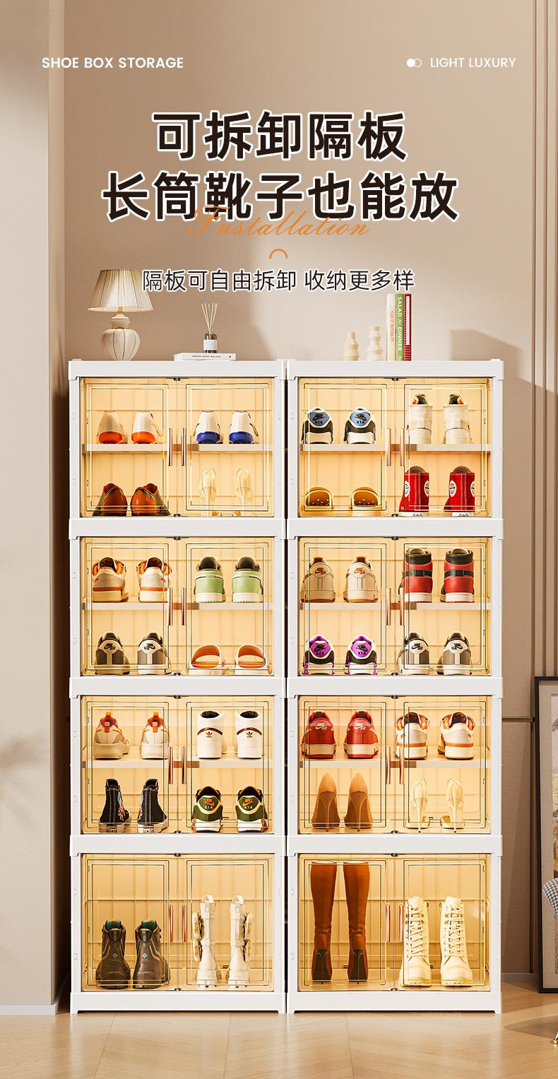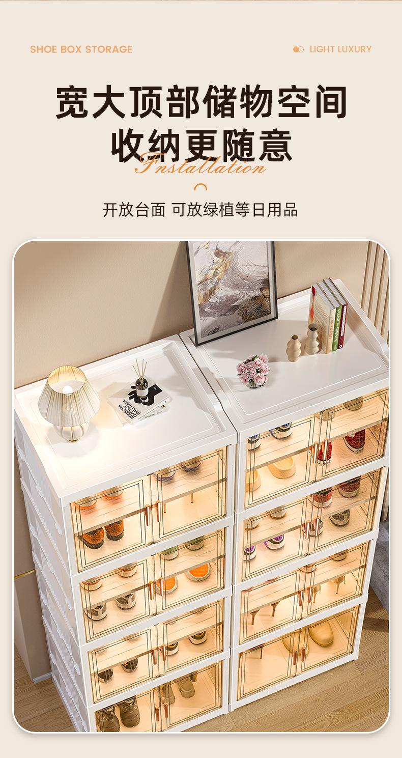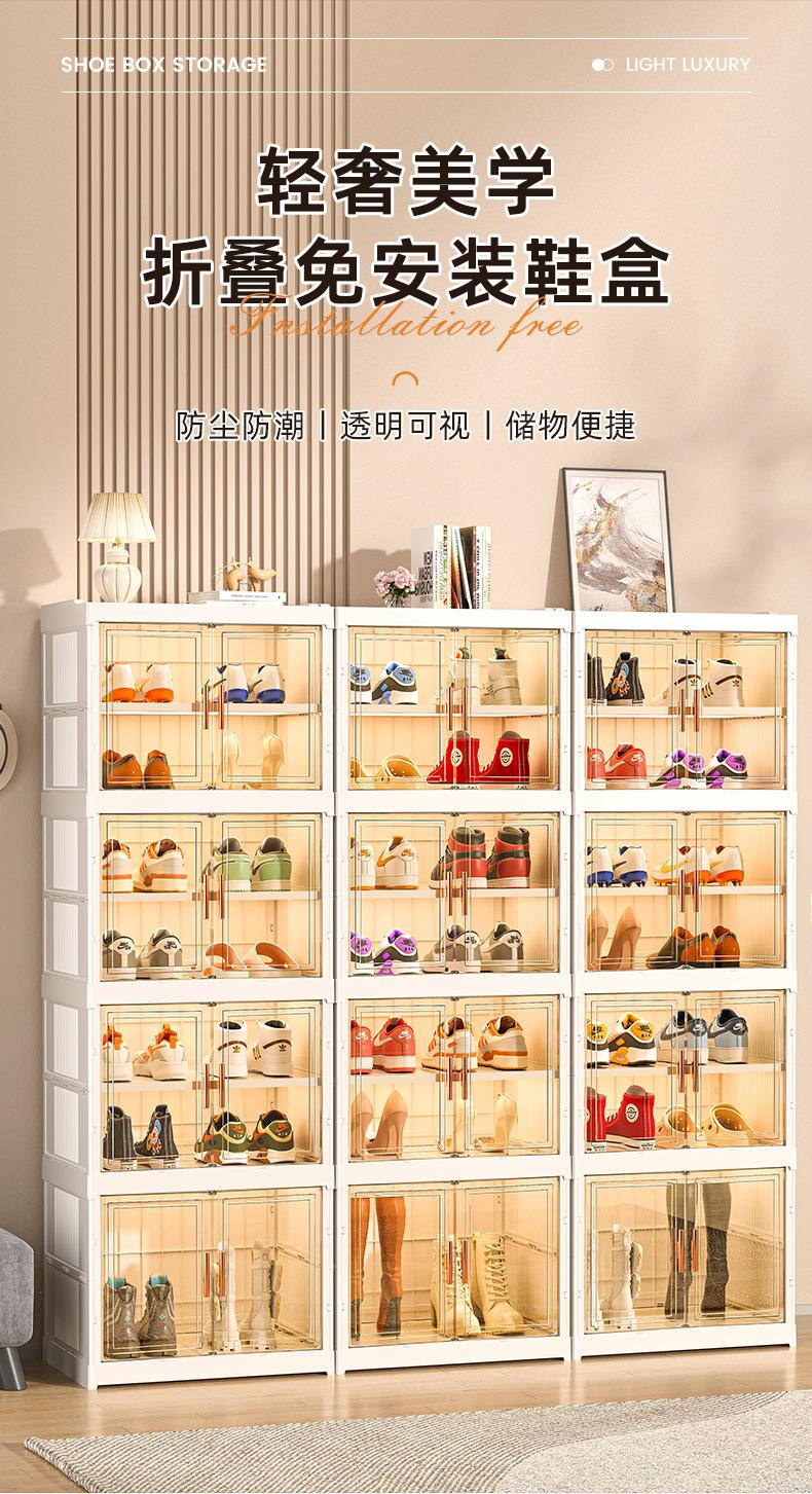 Zapatero sin instalación para puerta de casa, caja de zapatos simple, botas, caja de almacenamiento de zapatos, plástico, transparente, a prueba de polvo, mueble zapatero plegable