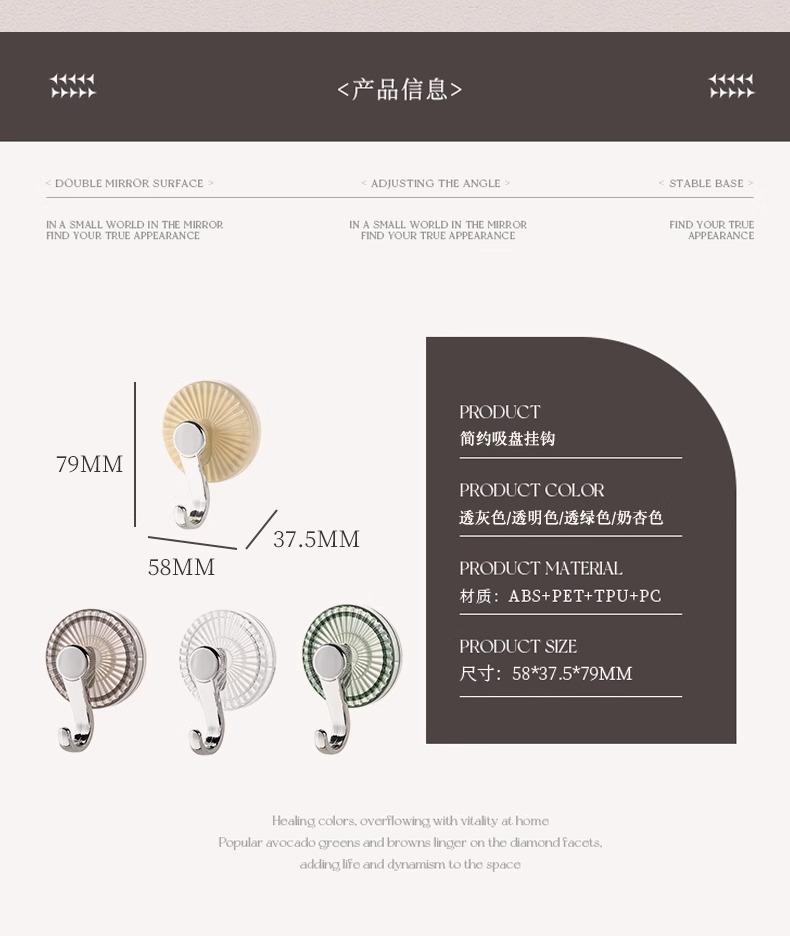 No-punch suction cup hook [transparent], No-punch suction cup hook [transparent gray], No-punch suction cup hook [cream white]