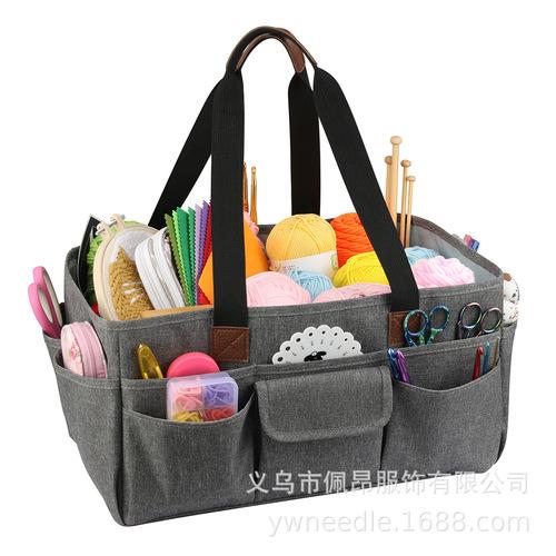 【Producto】Bolsa de Lujo Gris Denim Herramientas de Crochet Bolsa para Almacenamiento de Hilo Bolsa de Viaje para Exterior
