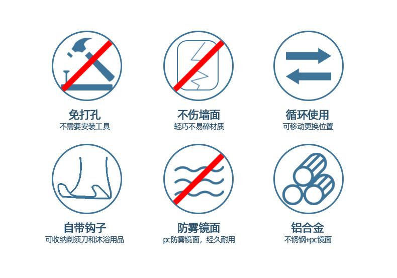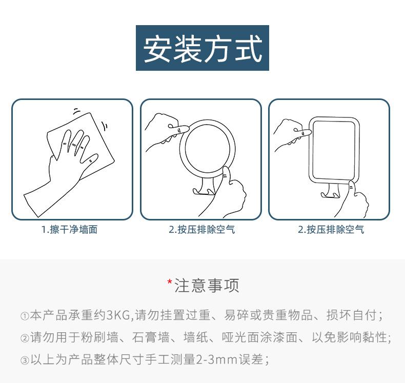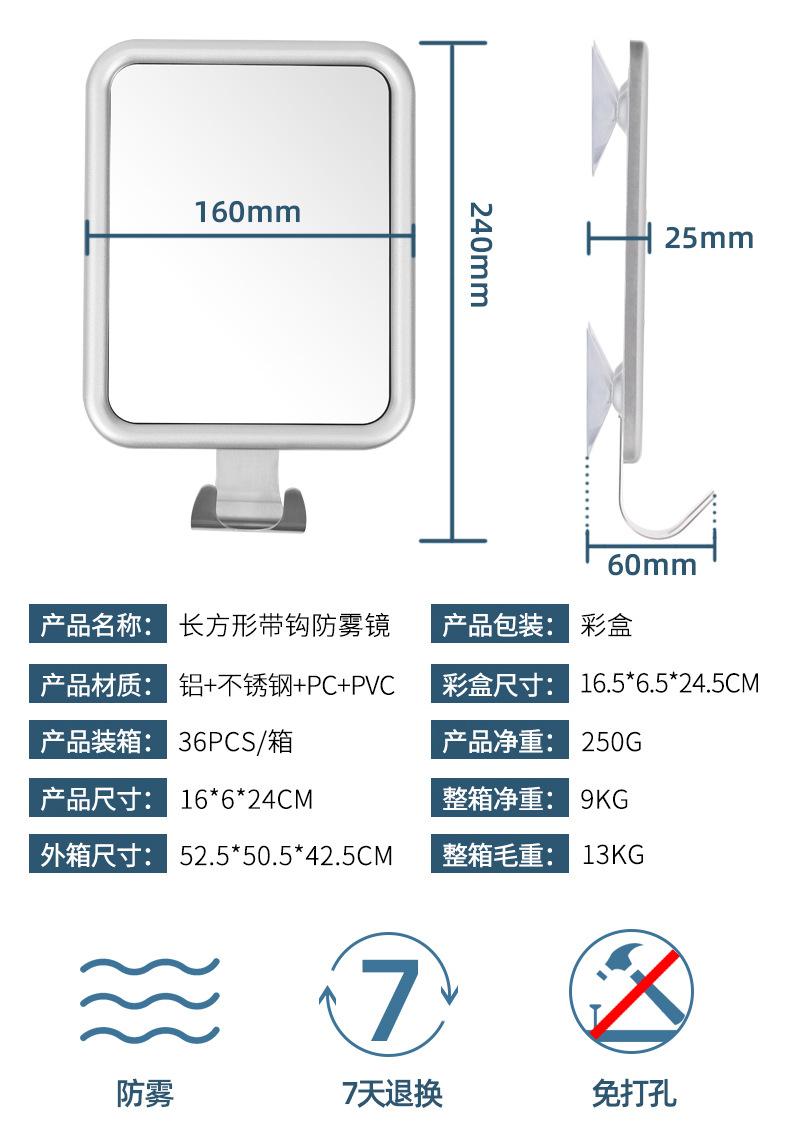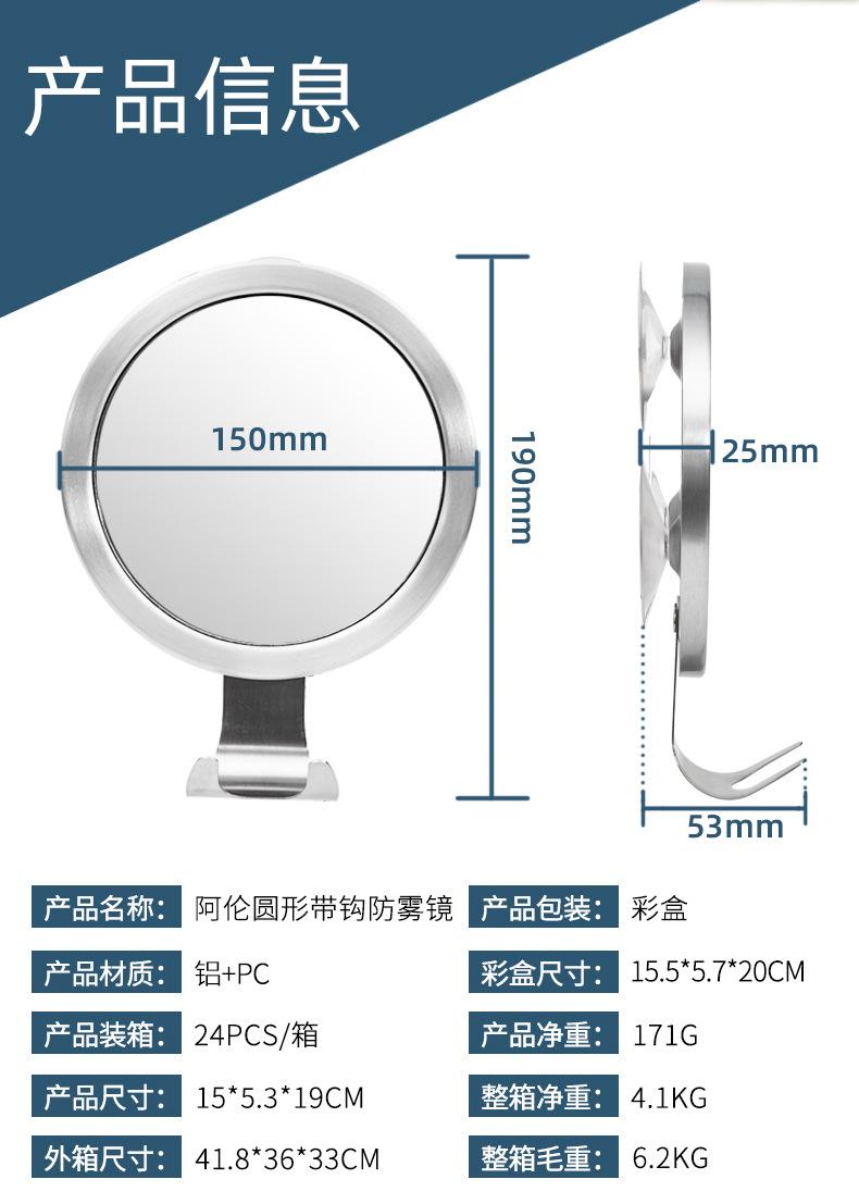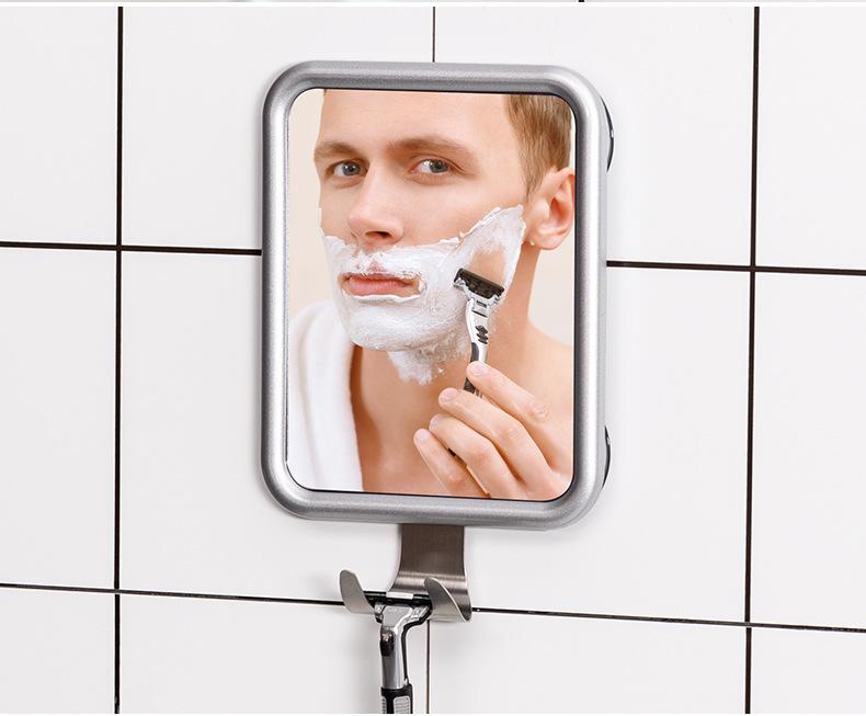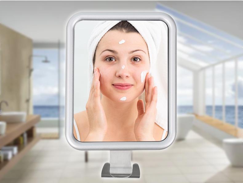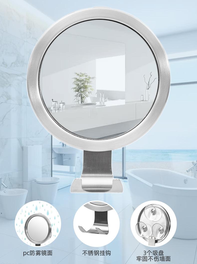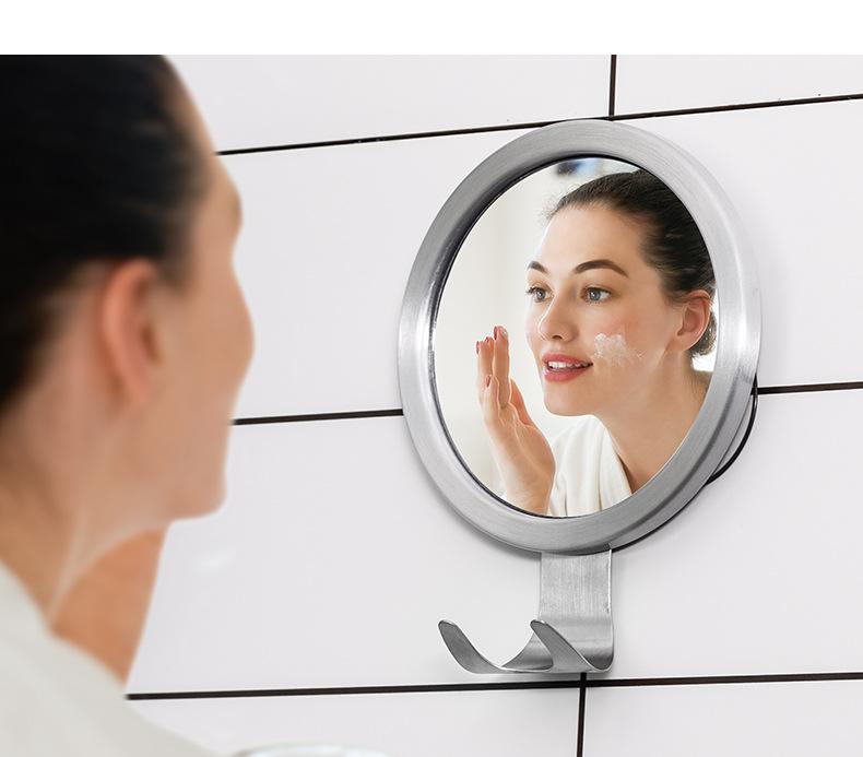 Suministro directo de fábrica ventosa antivaho espejo de tocador aleación de aluminio personalizada con gancho redondo sin perforaciones espejo de maquillaje para baño personalizado
