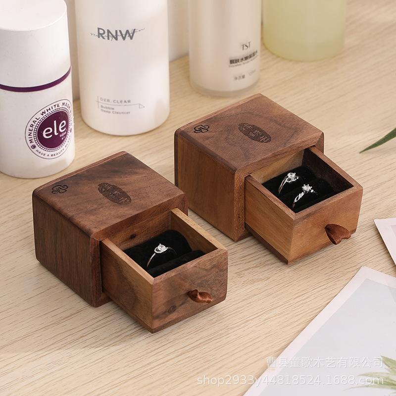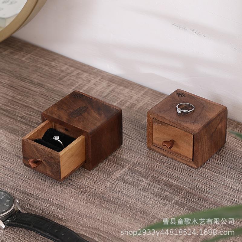 Caja para Anillos de Nogal Negro Retro Caja para Aretes Collar Caja de Almacenamiento Deslizante Organizador de Joyería Portátil a Prueba de Polvo Caja de Madera