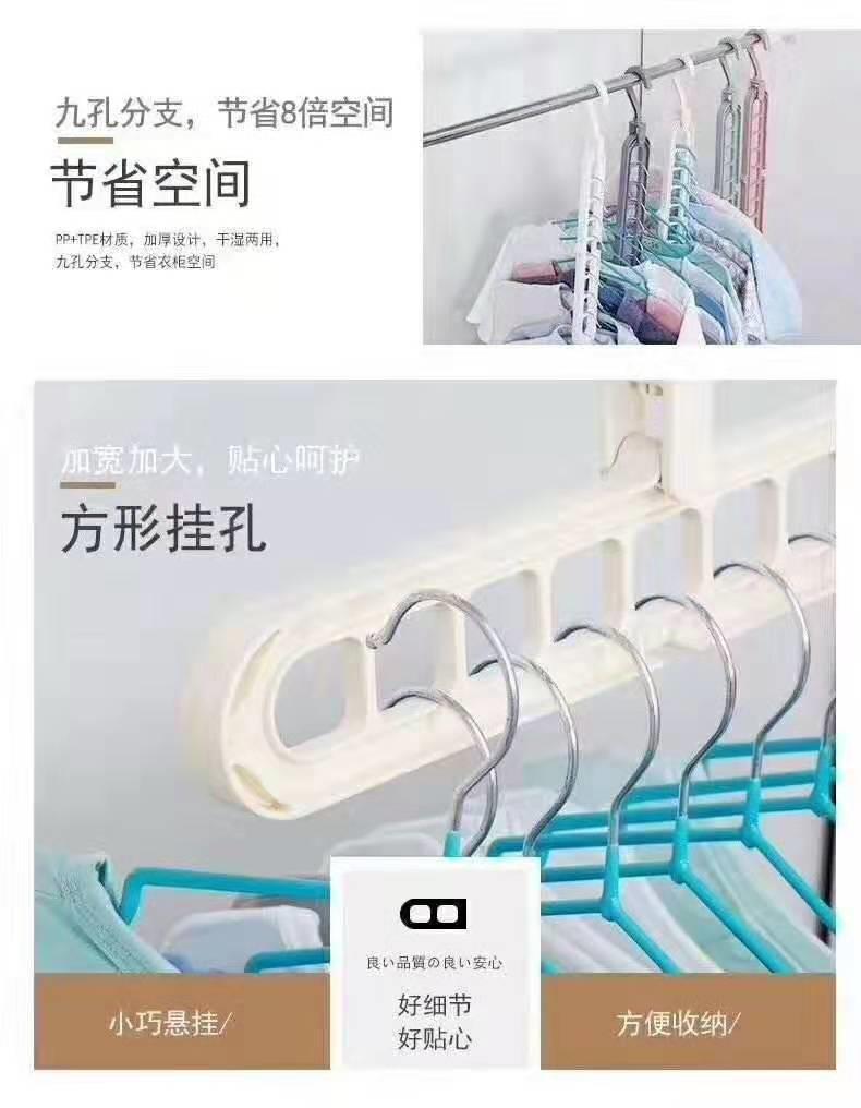 Estante promocional plegable para almacenamiento de ropa, colgador de ropa, tendedero doméstico, mágico colgador de ropa de plástico de nueve agujeros, fabricante